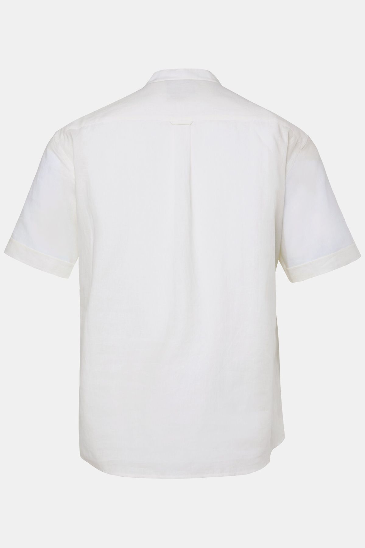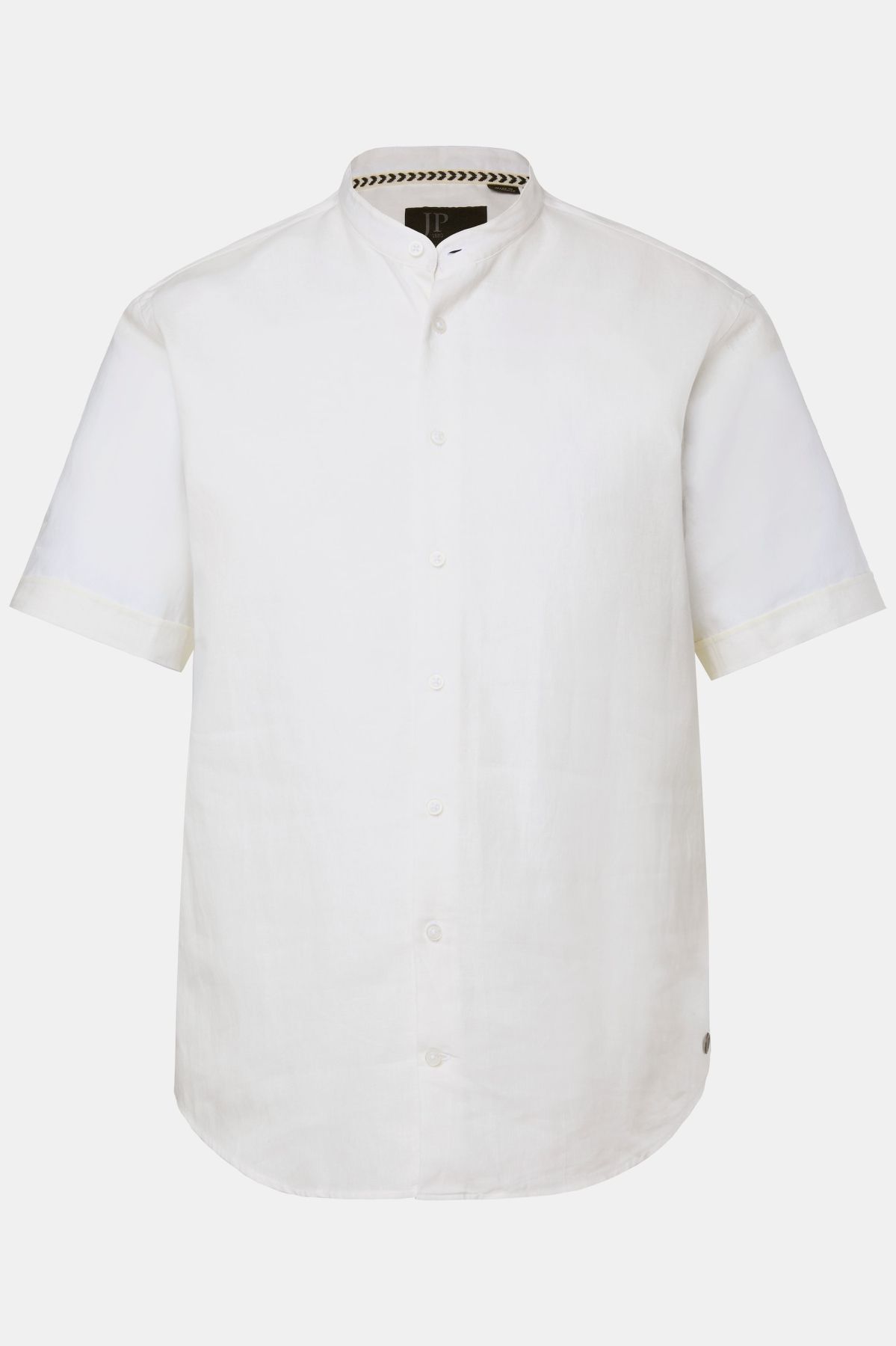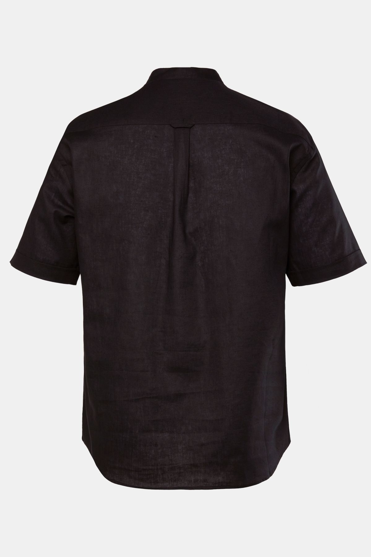 Ленена риза с къси ръкави с модерна изправена яка. С подходяща кройка за всеки панталон. За оптимално удобство е добавено копче след размер 4XL
