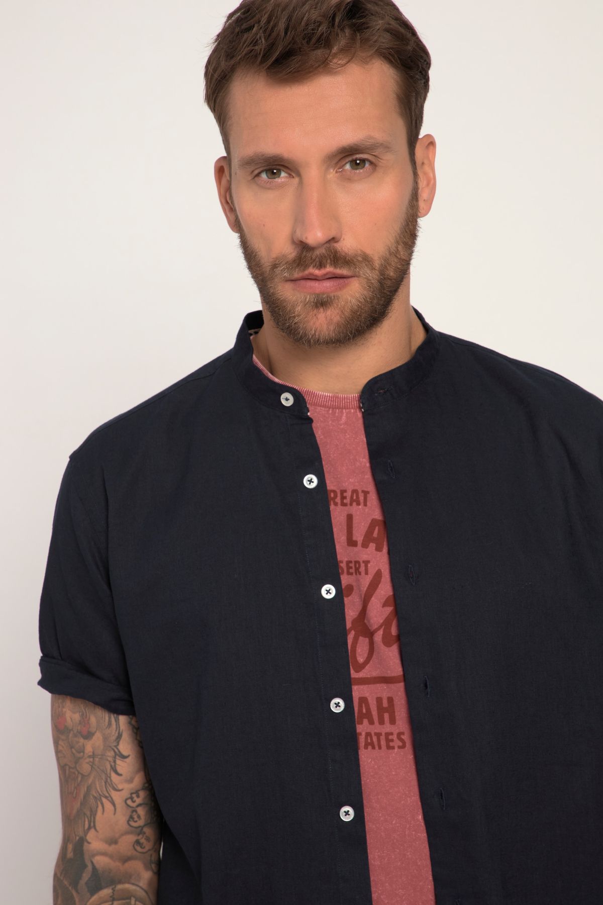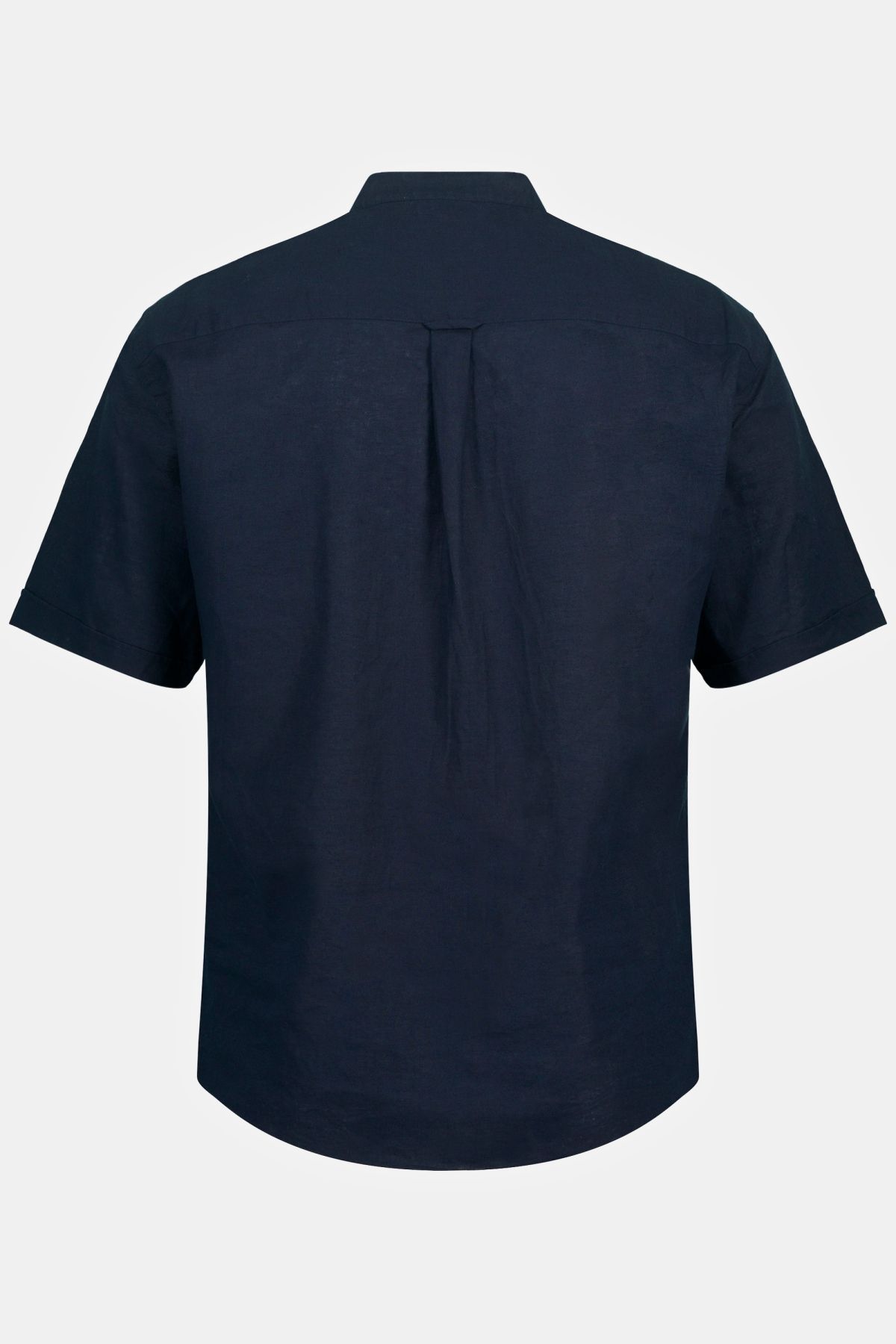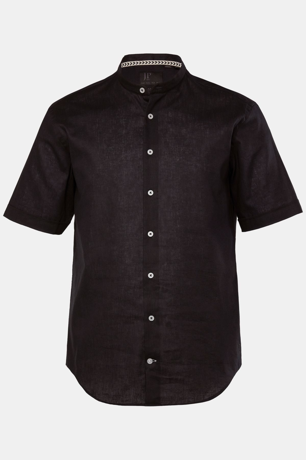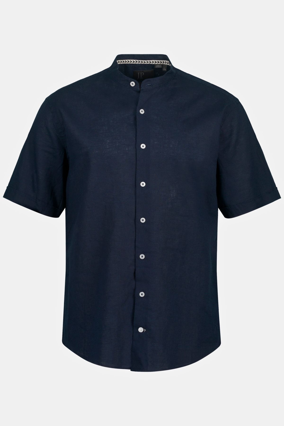 Ленена риза с къси ръкави с модерна изправена яка. С подходяща кройка за всеки панталон. За оптимално удобство е добавено копче след размер 4XL