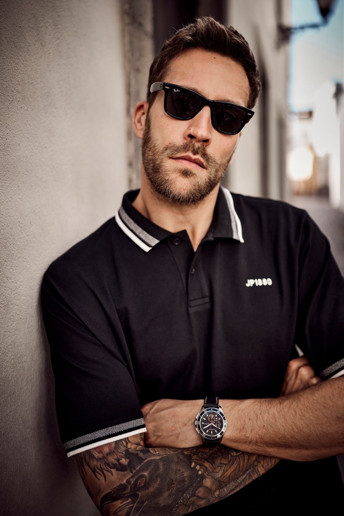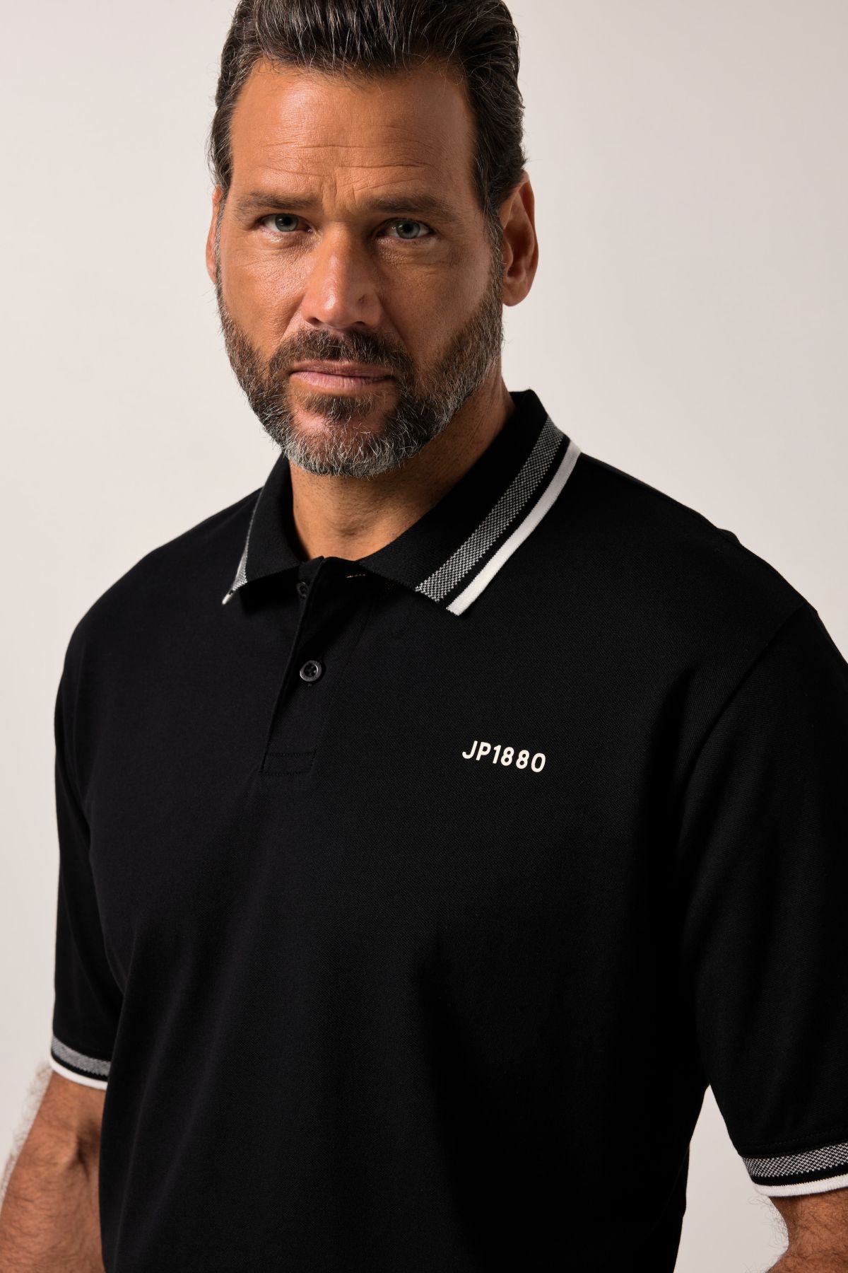 Тениска с яка с копчета на деколтето. С бродирани акценти на гърдите. С къси ръкави и контрастни детайли.