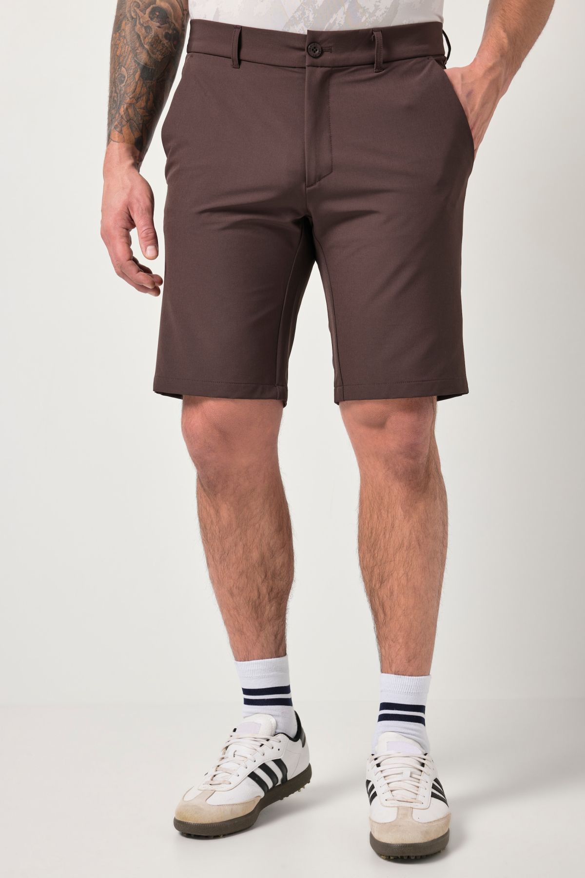 Бермуди с елегантен стил тип Голф панталони. С 4 джоба, талия с гайки и частичен ластик на гърба. Закопчаване с копче и цип. Изработени от водоустойчива бързосъхнеща материя.