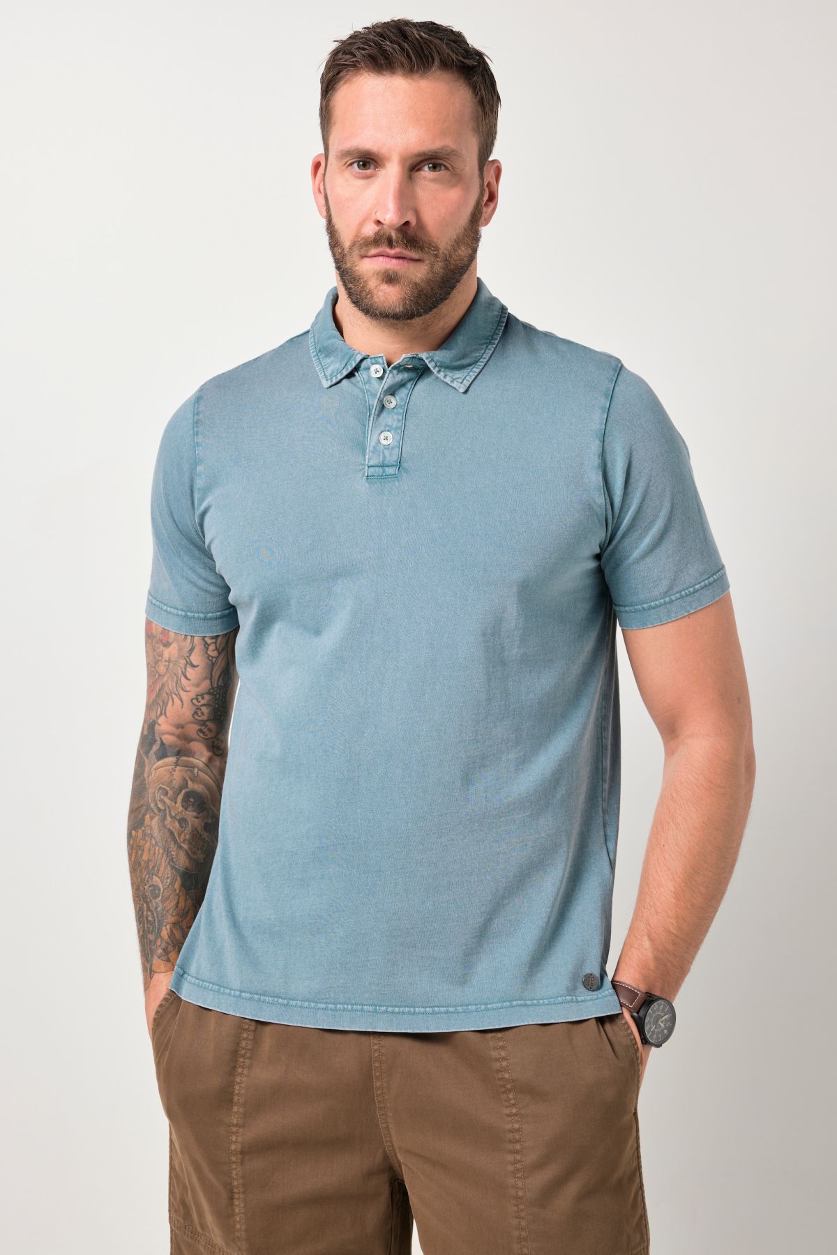 Специална кройка до размер 8XL, меко трико с деним вид, винтидж вид - киселинно пране, половин ръкав, дължина, регулирана по размер, приблизително 74-86 см.