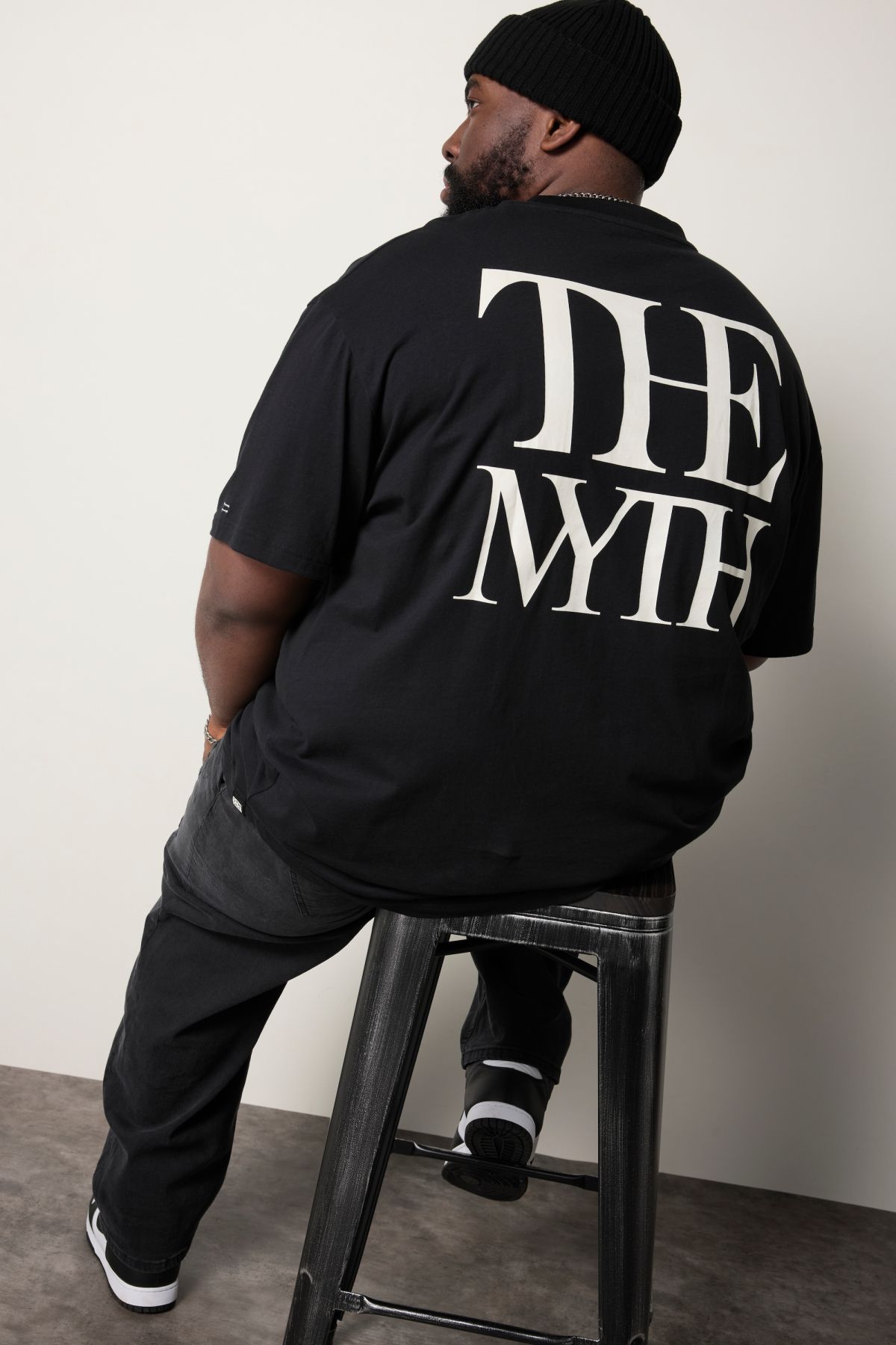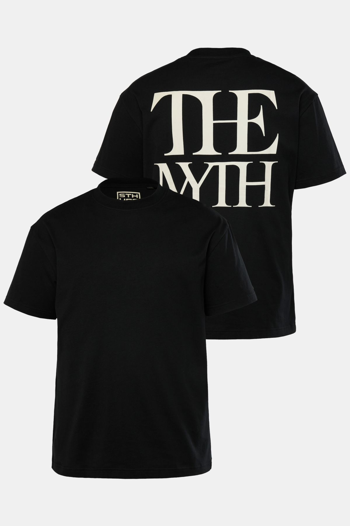 Гр. L - 8XL, голяма кройка, щампа на гърба The Myth, чист памук, нашият модел е висок 190 см и носи размер 4 XL, коригирана дължина приблизително 76-88 см.