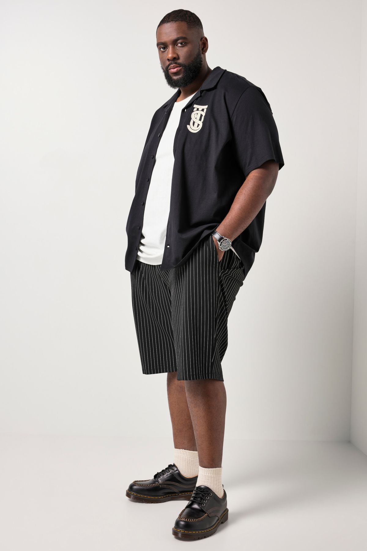 Бермуди с раиран принт от мека, трикотажна материя. С еластична талия и странични джобове. Със свободен силует.