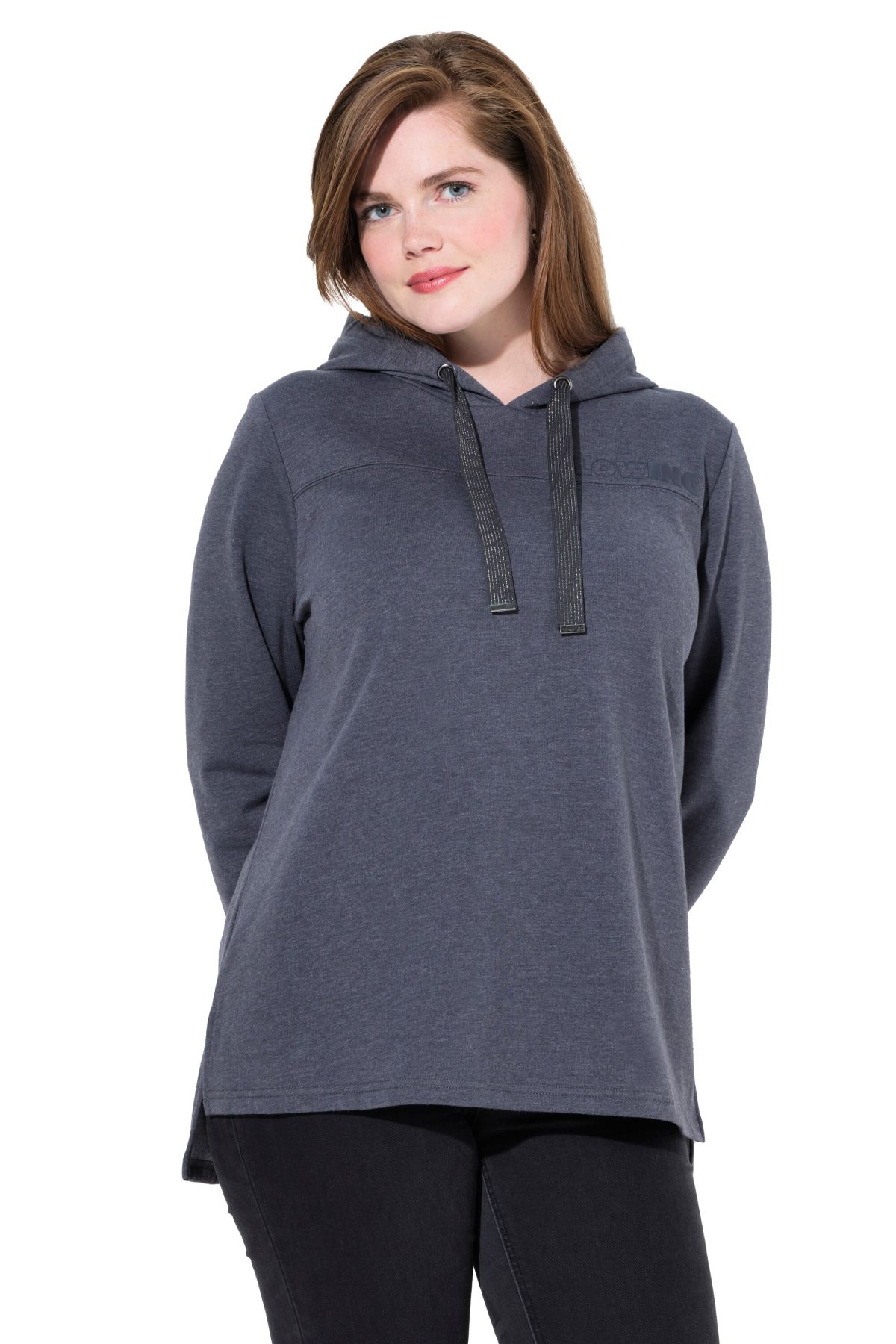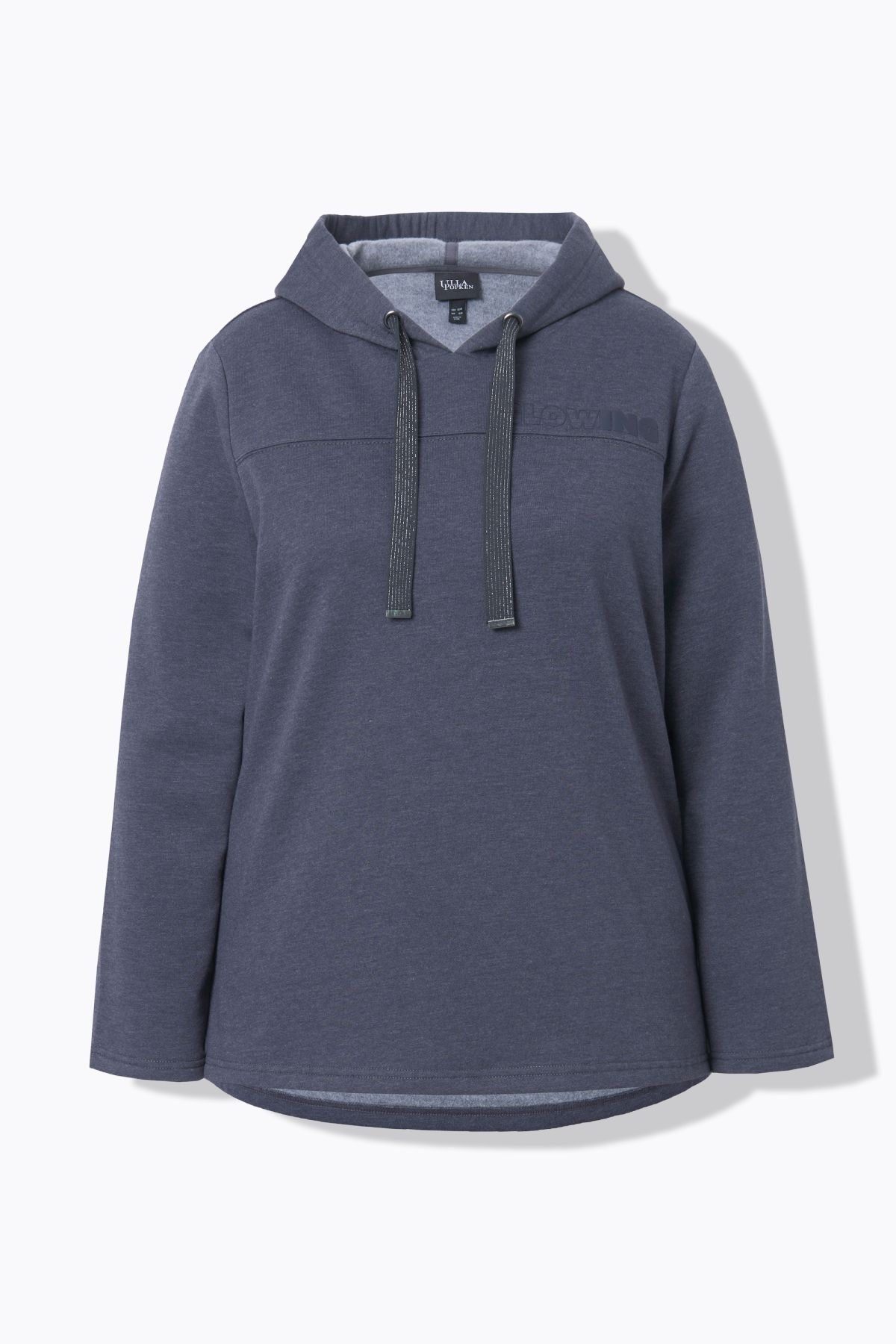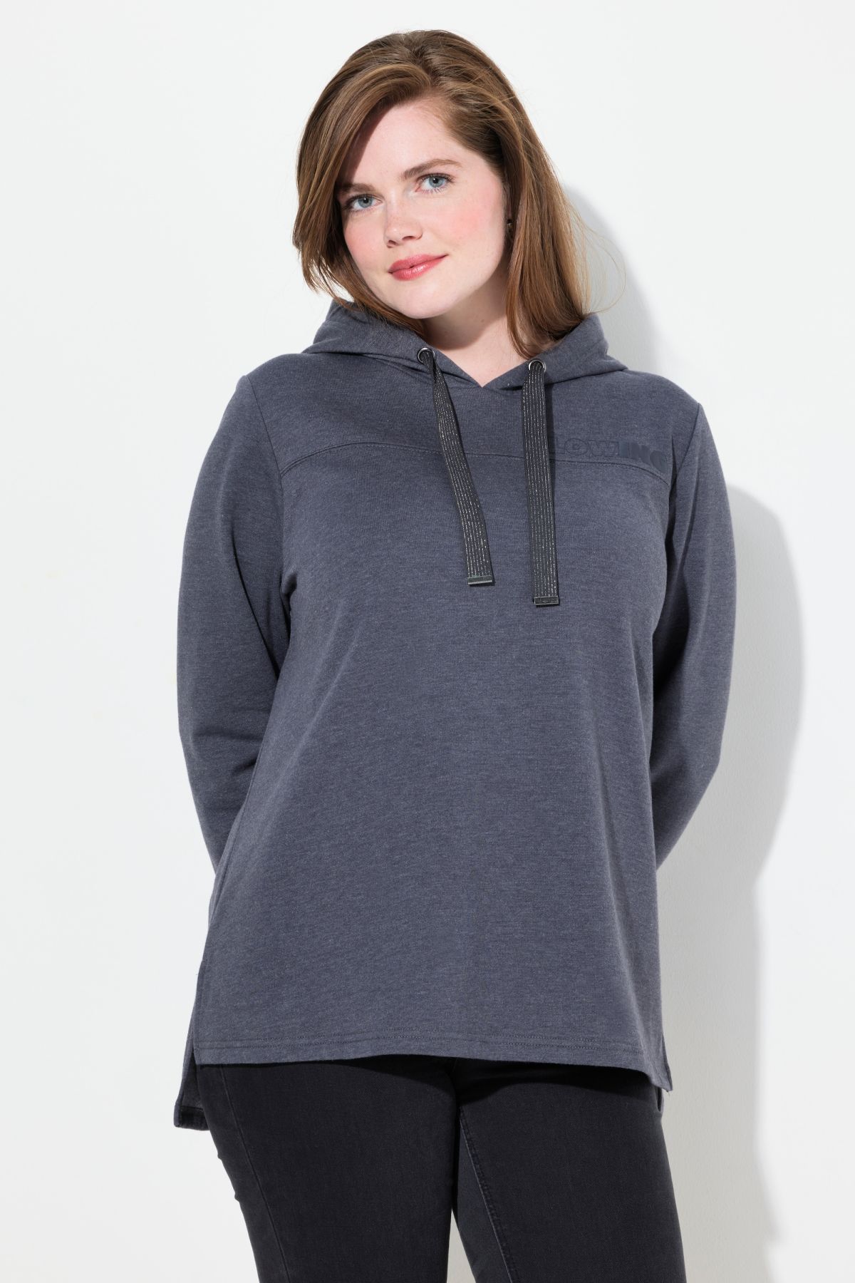 Суитчър с надписи с декоративен кръстосан шев с малко лого 'GLOWING'. С качулка с връзки и дълги ръкави с рипсени маншети.