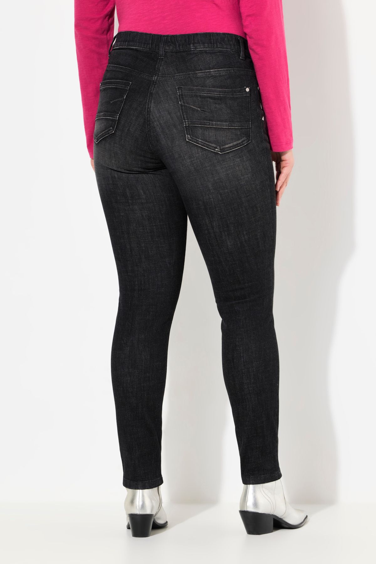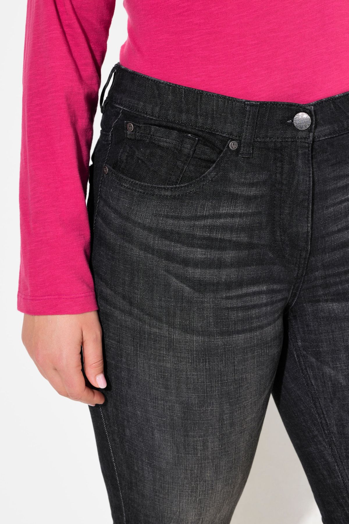 Дънки с прани акценти и тесен силует. Дизайн с 5 джоба, гайки за колан, копче и цип отпред. Меки и еластични.