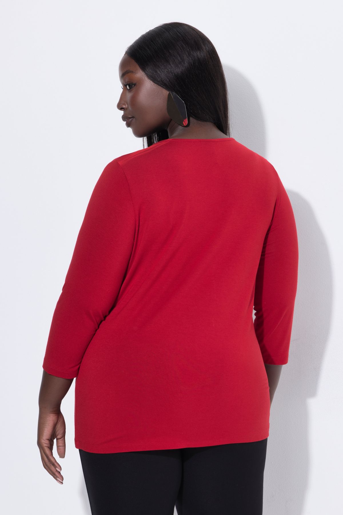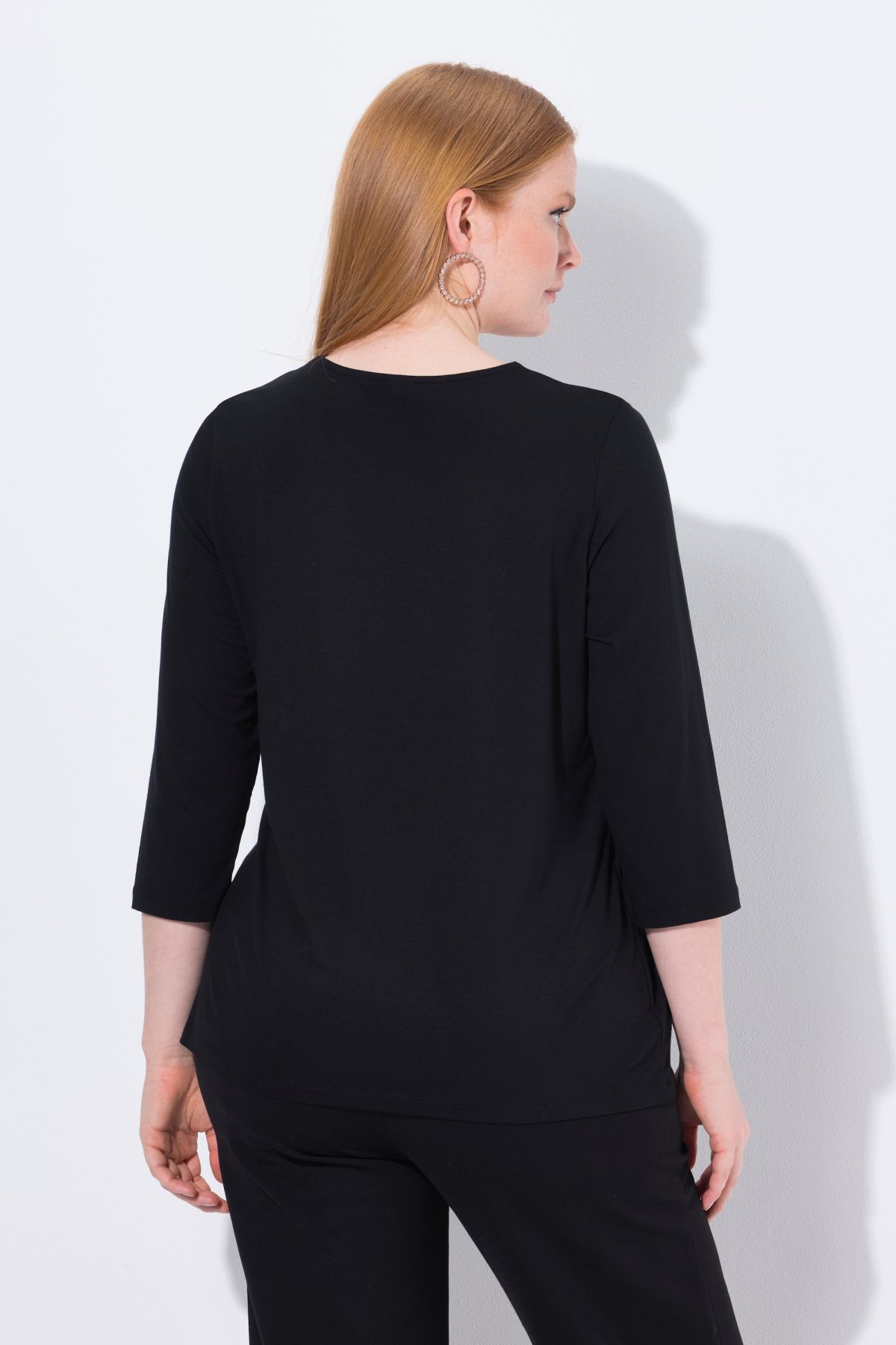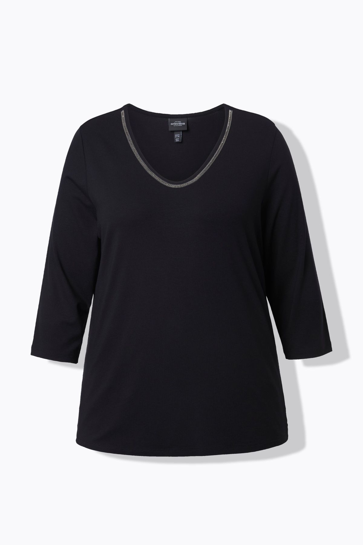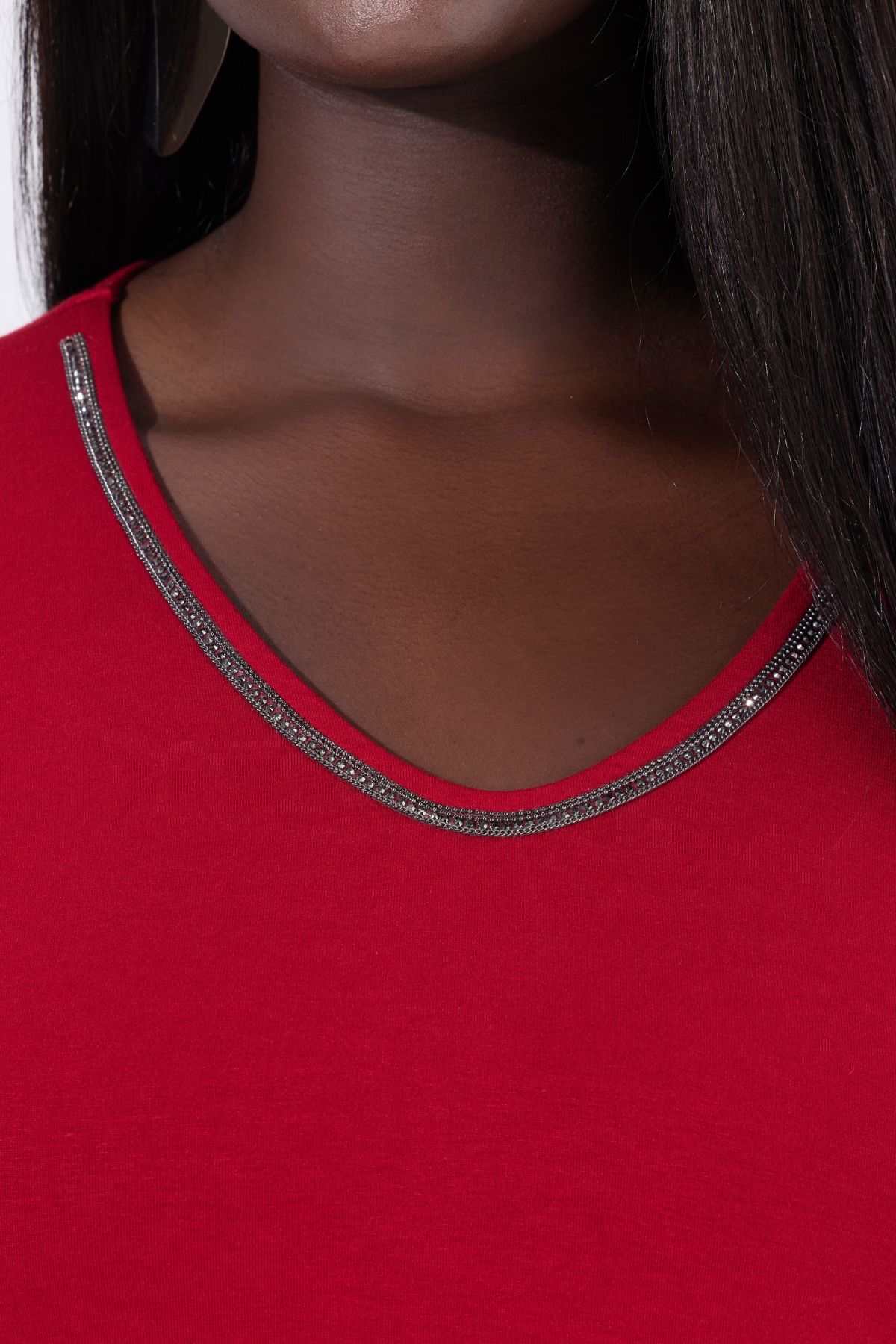 Тениска с камъчета на кръглото деколте с класически силует. С 3/4 ръкави. Перфектният избор за всеки повод