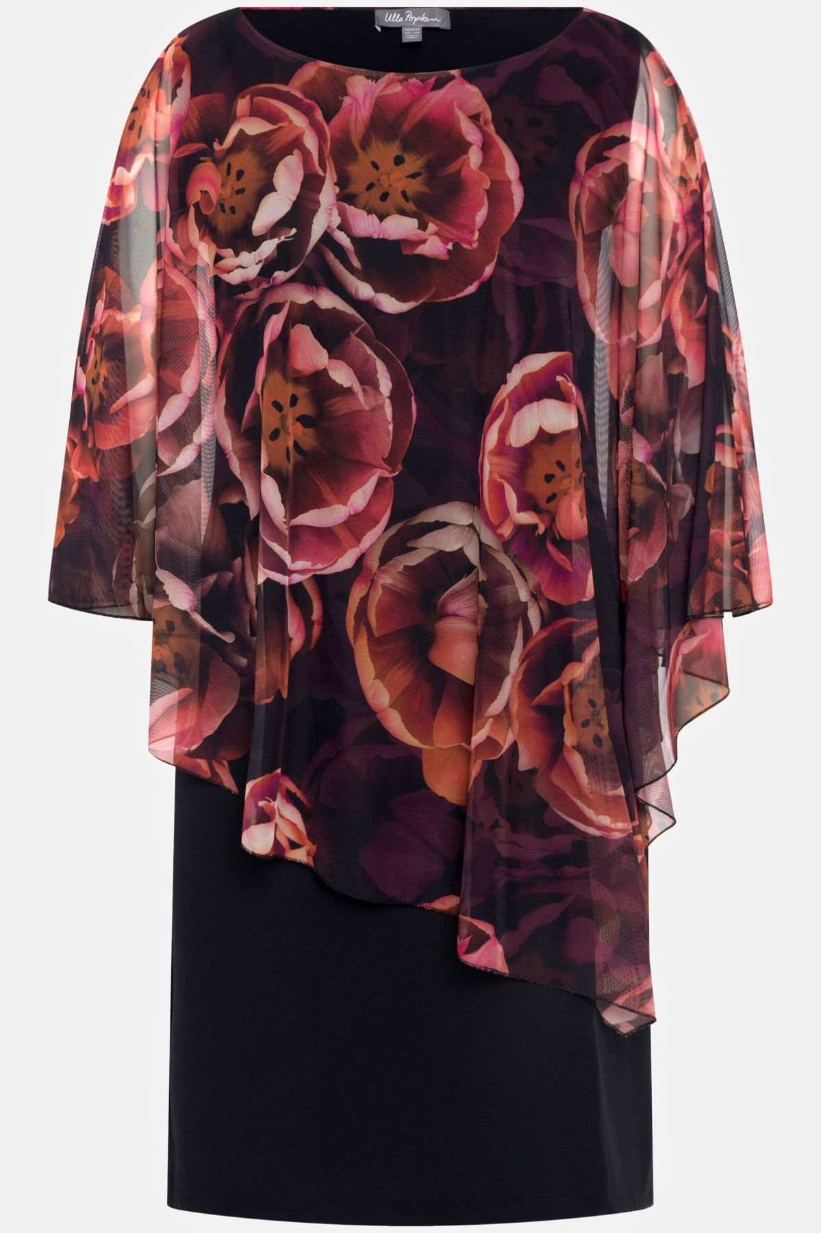 Рокля с абстрактен принт на шифон с драпирани ръкави. С V - образно деколте, широки ръкави, трикотажна подплата и едноцветна права пола.