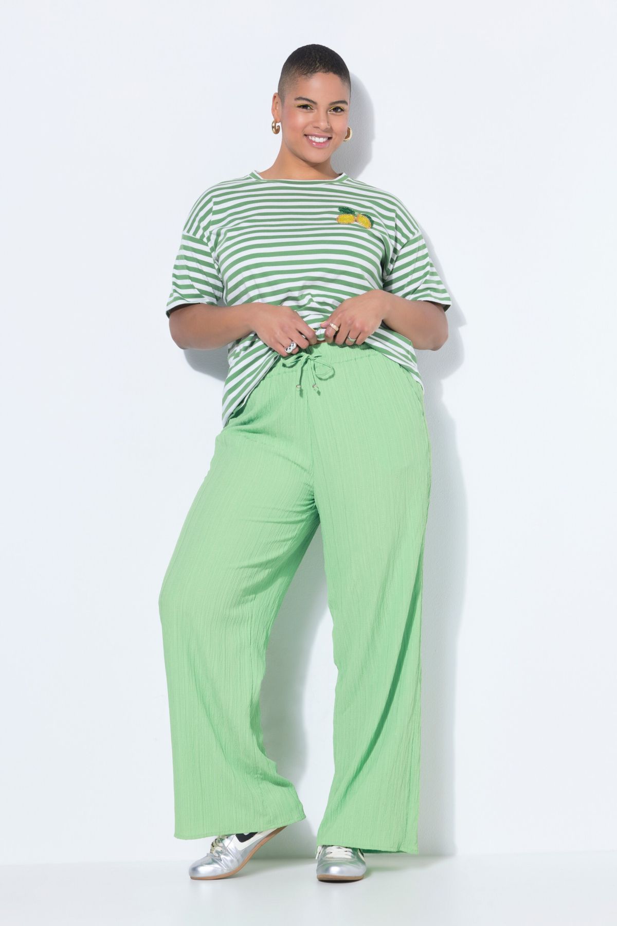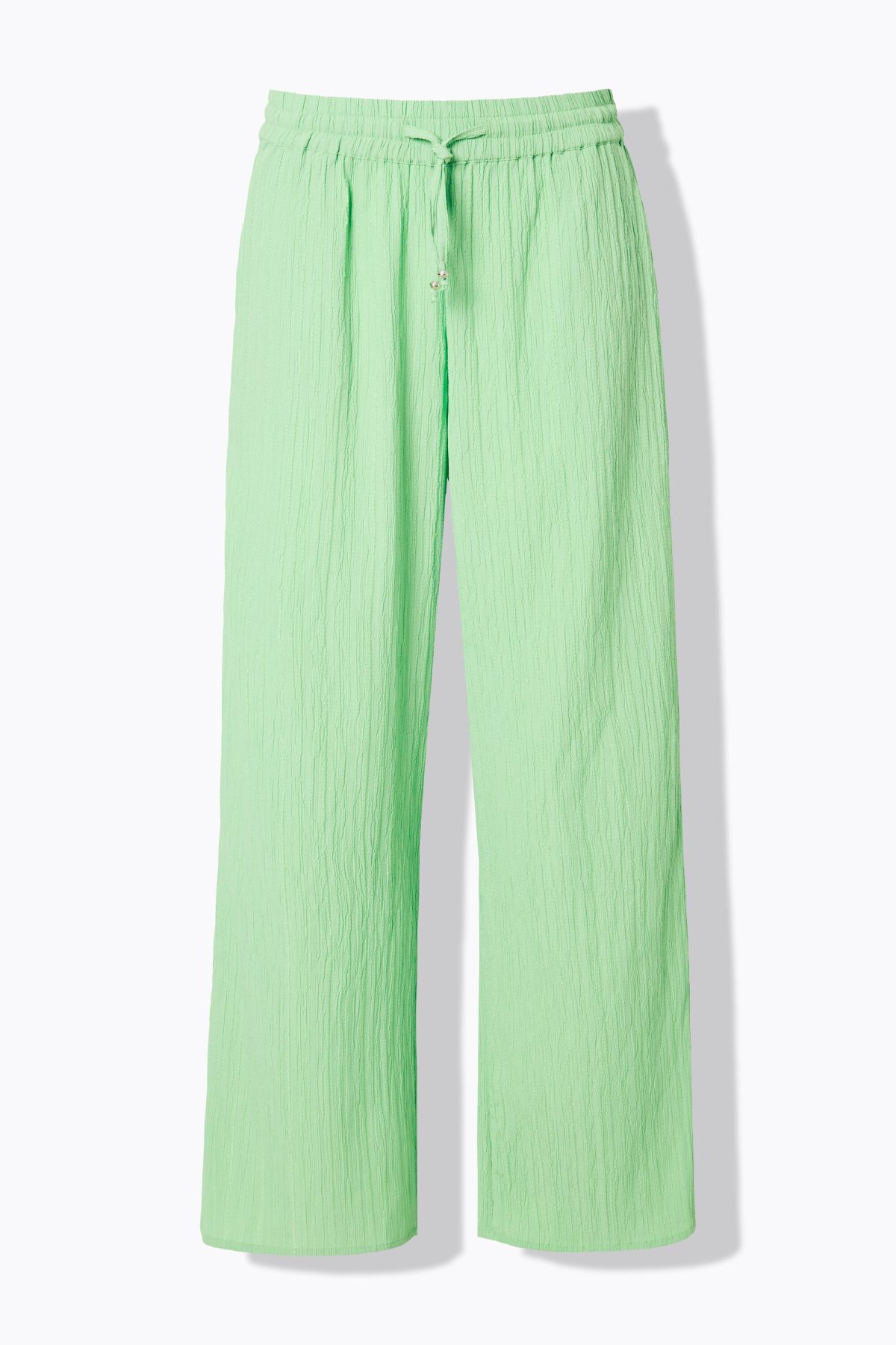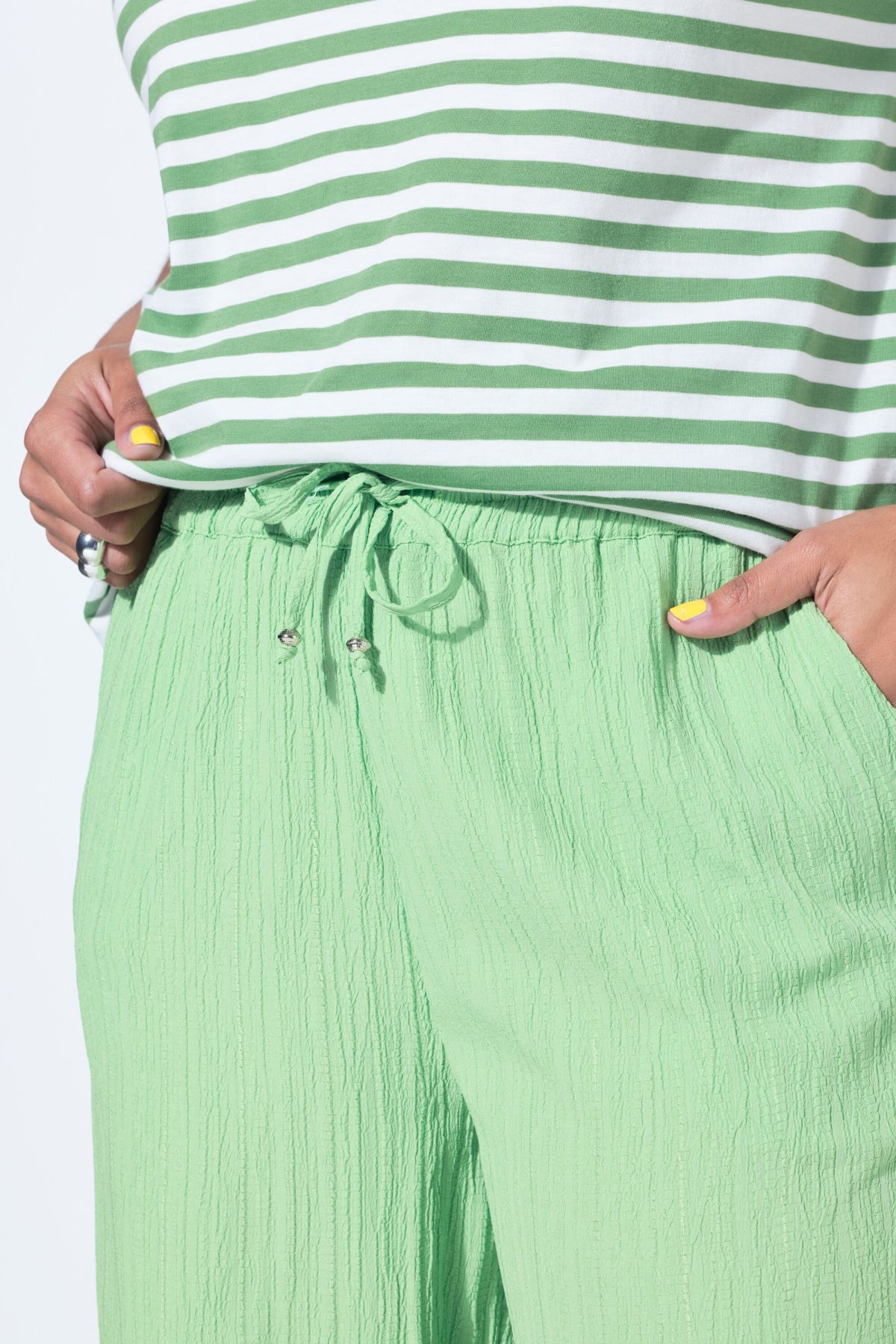 Панталон от креп с комфортни широки крачоли и еластична талия с връзка. Със странични джобове.