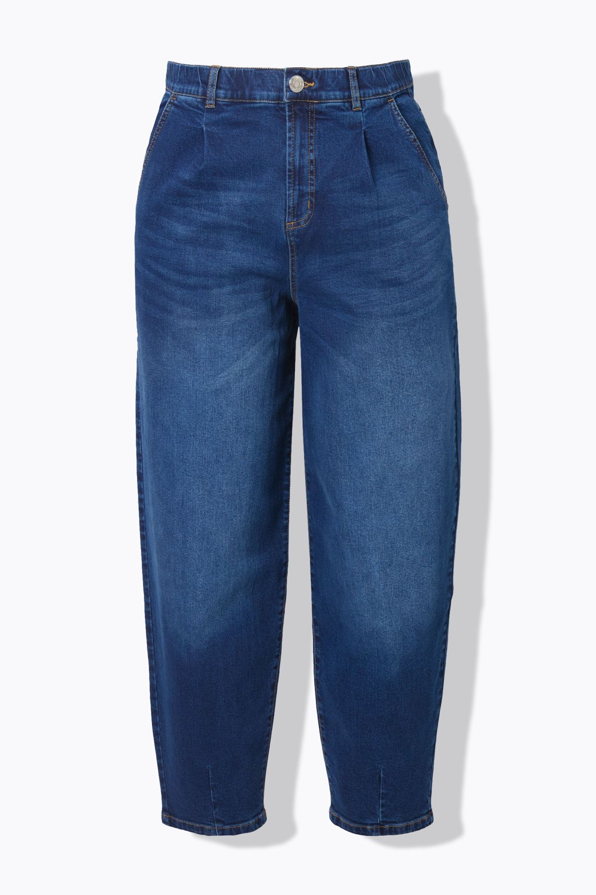 Дънки тип балон. Дизайн с висока талия с 5 джоба. С широки крачоли. В тъмносин деним.