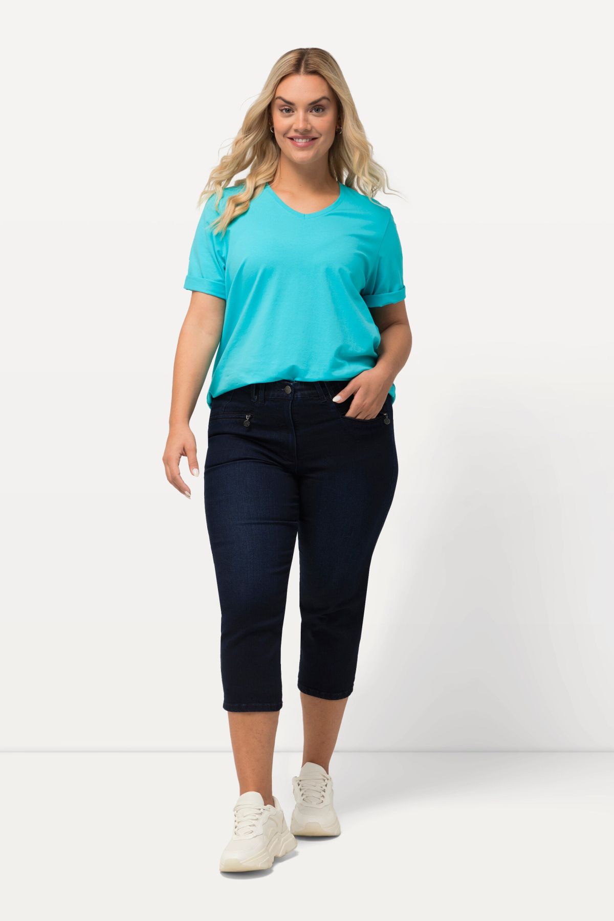 Еластични дънки тип Mony със 7/8 дължина с гайки за колан, джобове с ципове и комфортна талия.