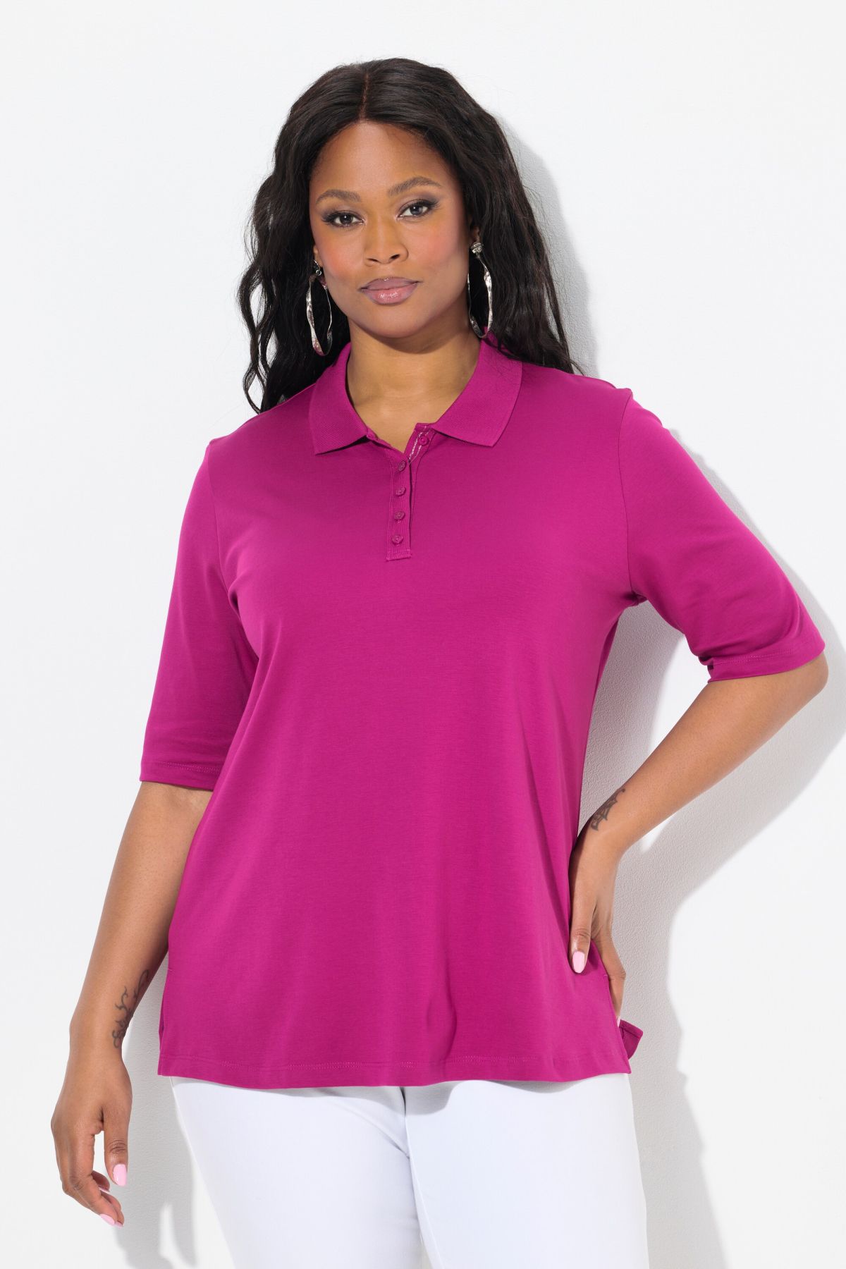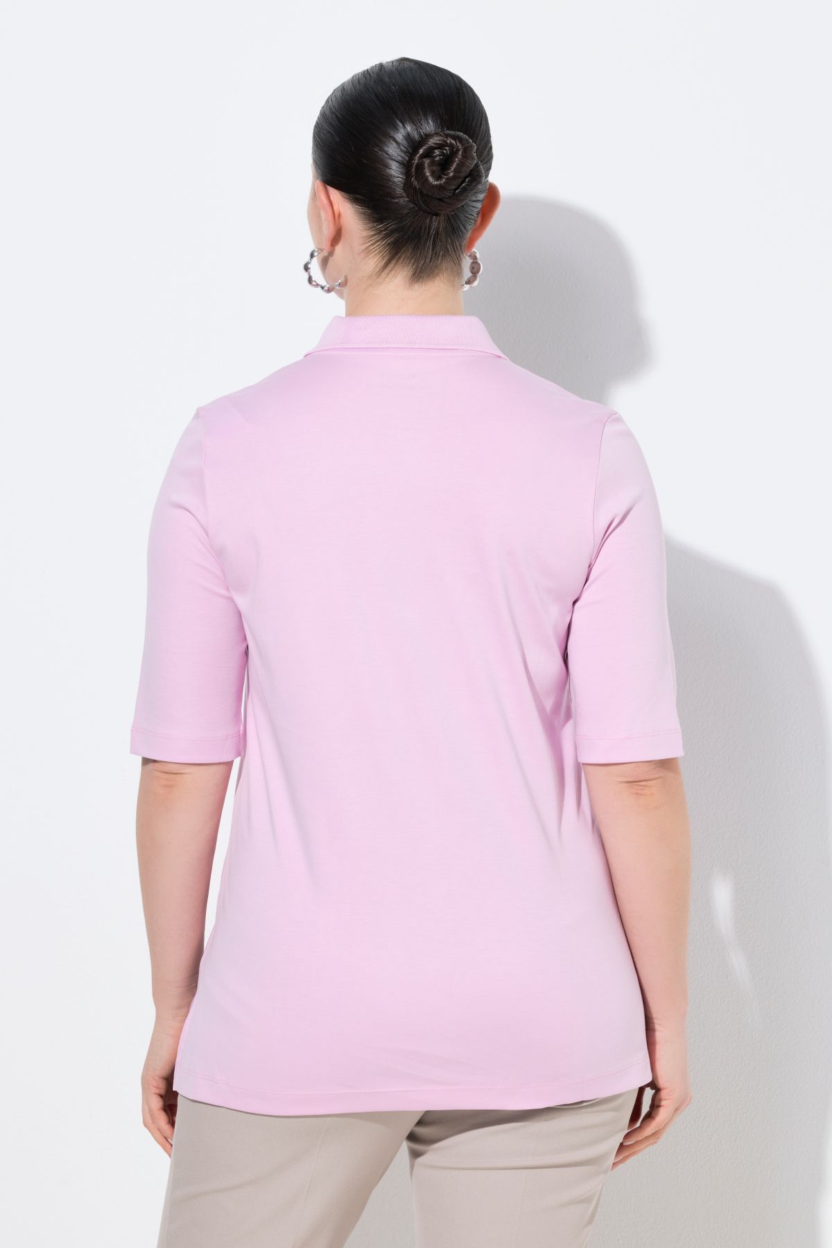 Класическа тениска с яка от памучна материя. Дизайн с 5 копчета и къси ръкави