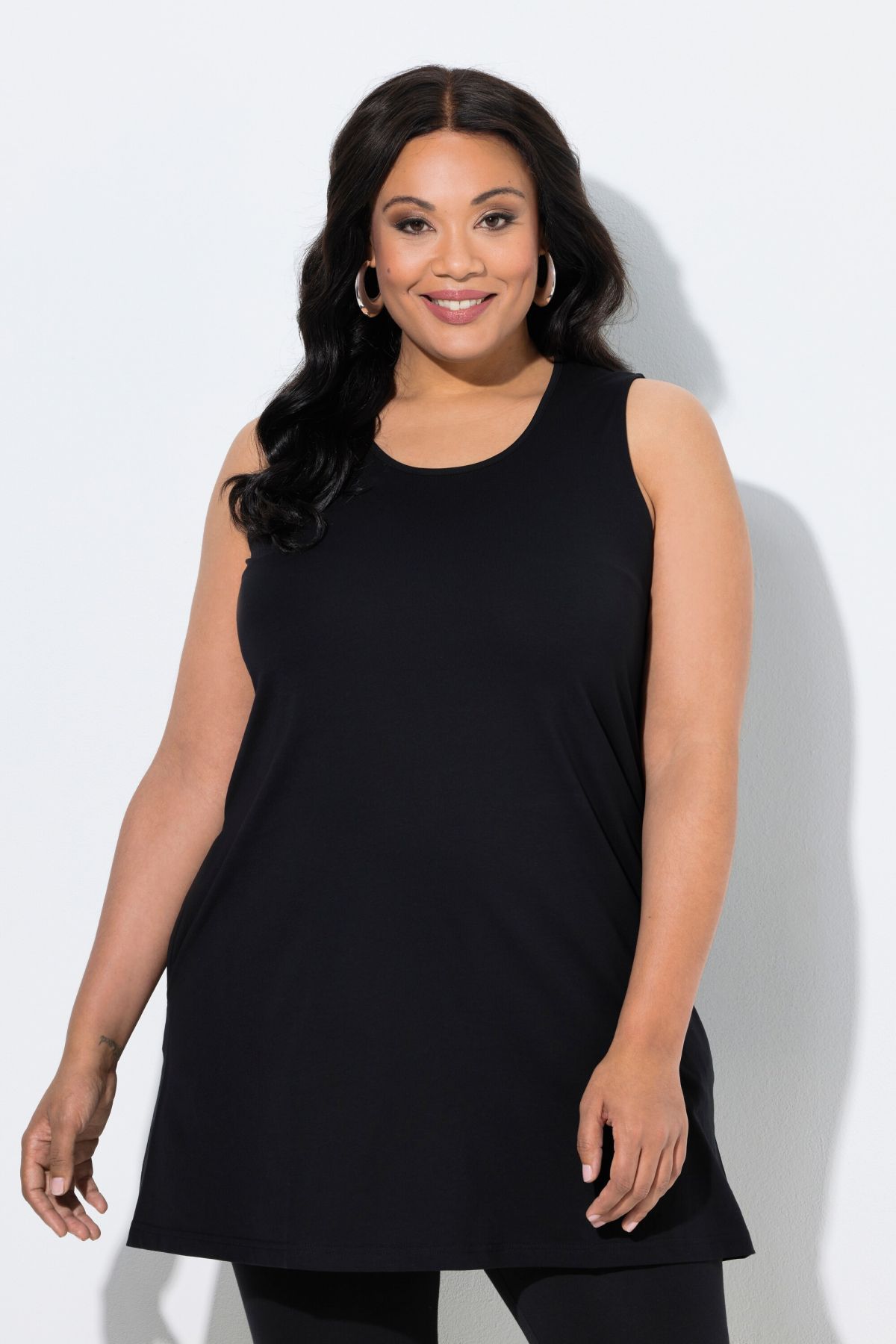 Туника тип потник с лек и комфортен силует. Дизайн с широки презрамки без ръкави. С джобове.
