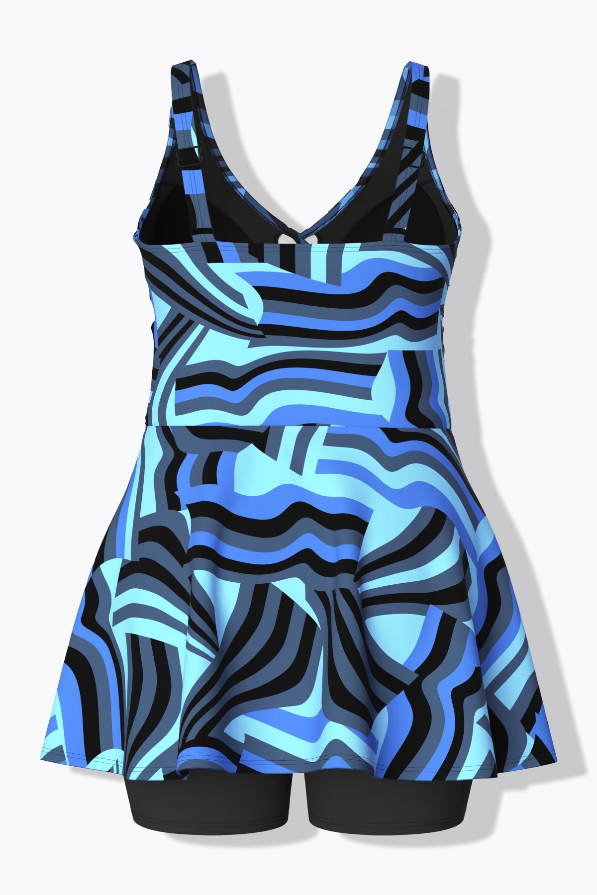 Бански тип рокля с ретро принт. Дизайн с А - линия на силуета на полата. С V - образно деколте и широки презрамки.