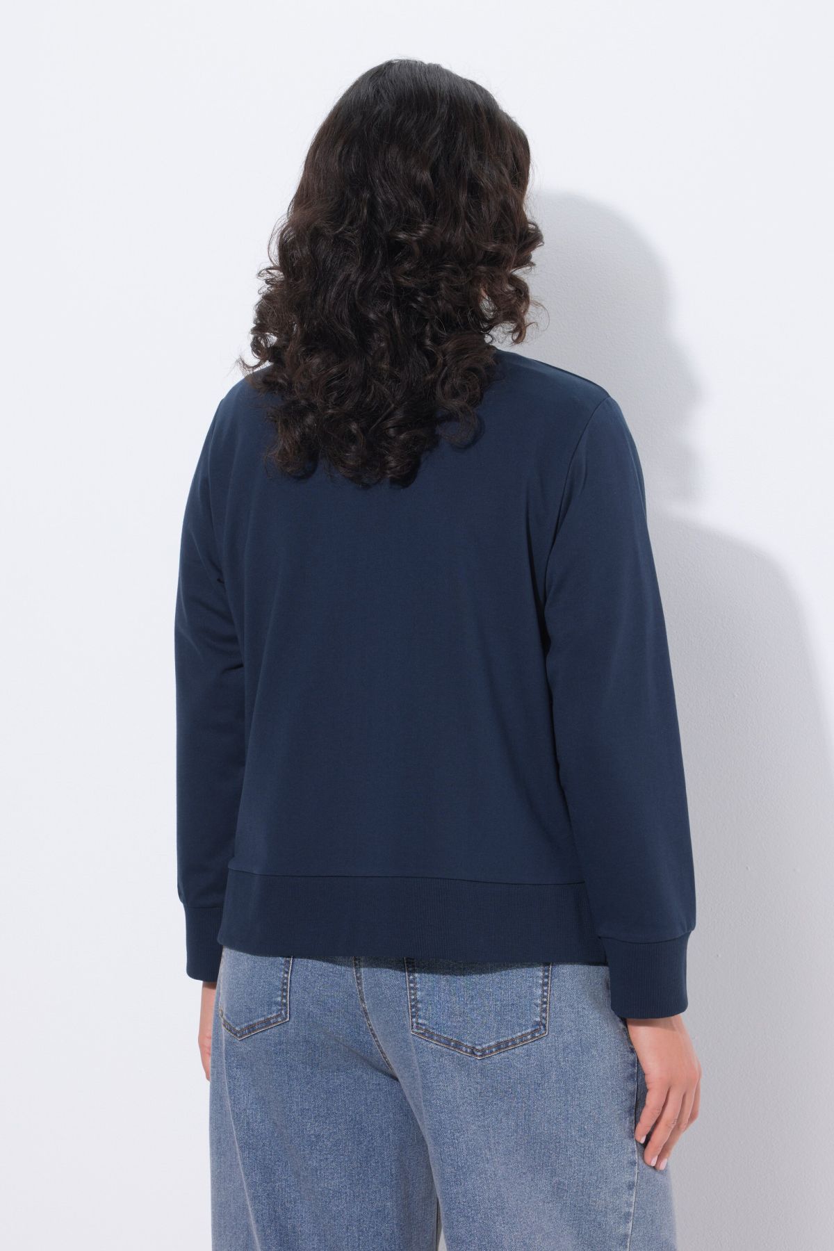 Мека материя за суитшърт, типична колежанска яка, къса свободна кройка, оребрени маншети, странични цепки за още по-голям комфорт, дължина приблизително 62-72 см (коригирана по размер).
