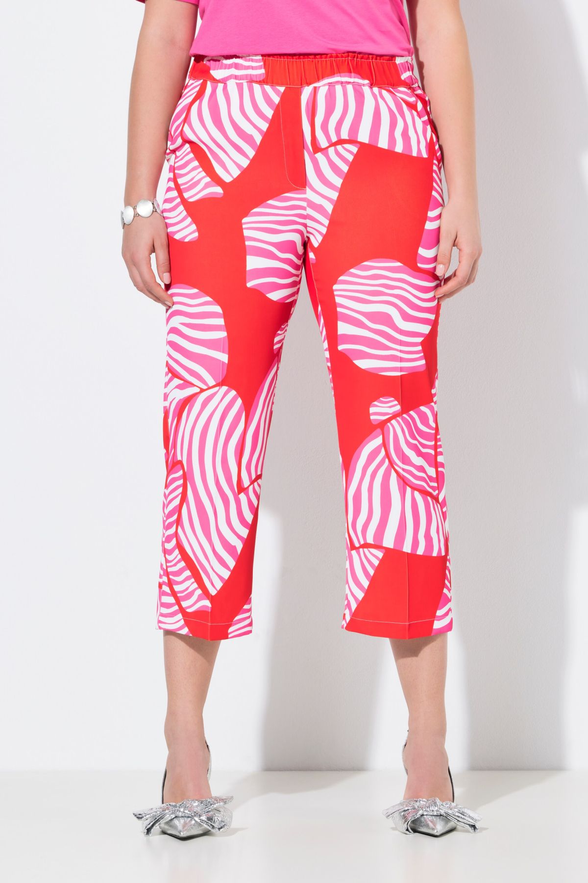 Панталон тип Ruby със 7/8 дължина и геометричен принт. С комфортни прави крачоли, еластична талия и странични джобове. Комфортен и стилен.
