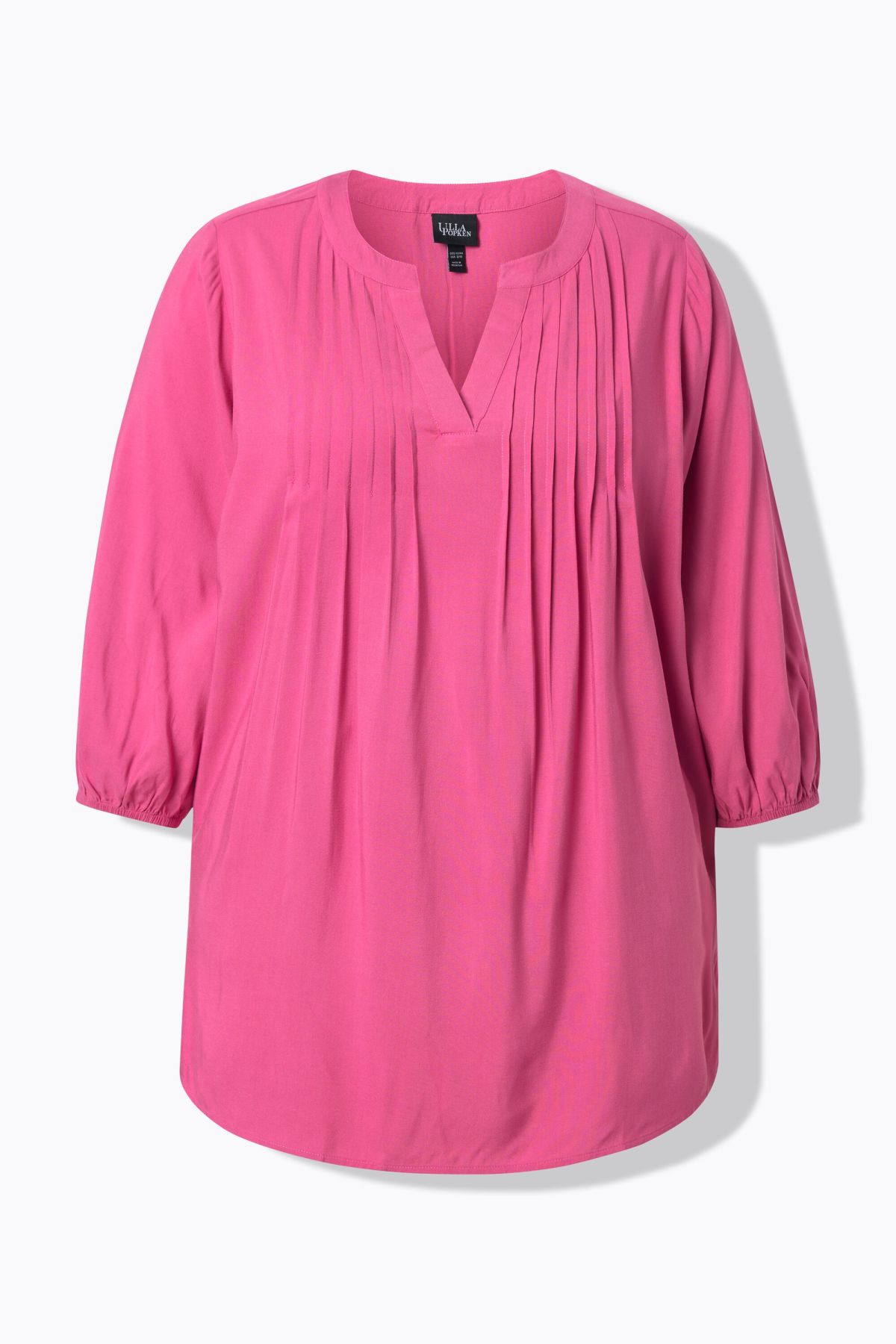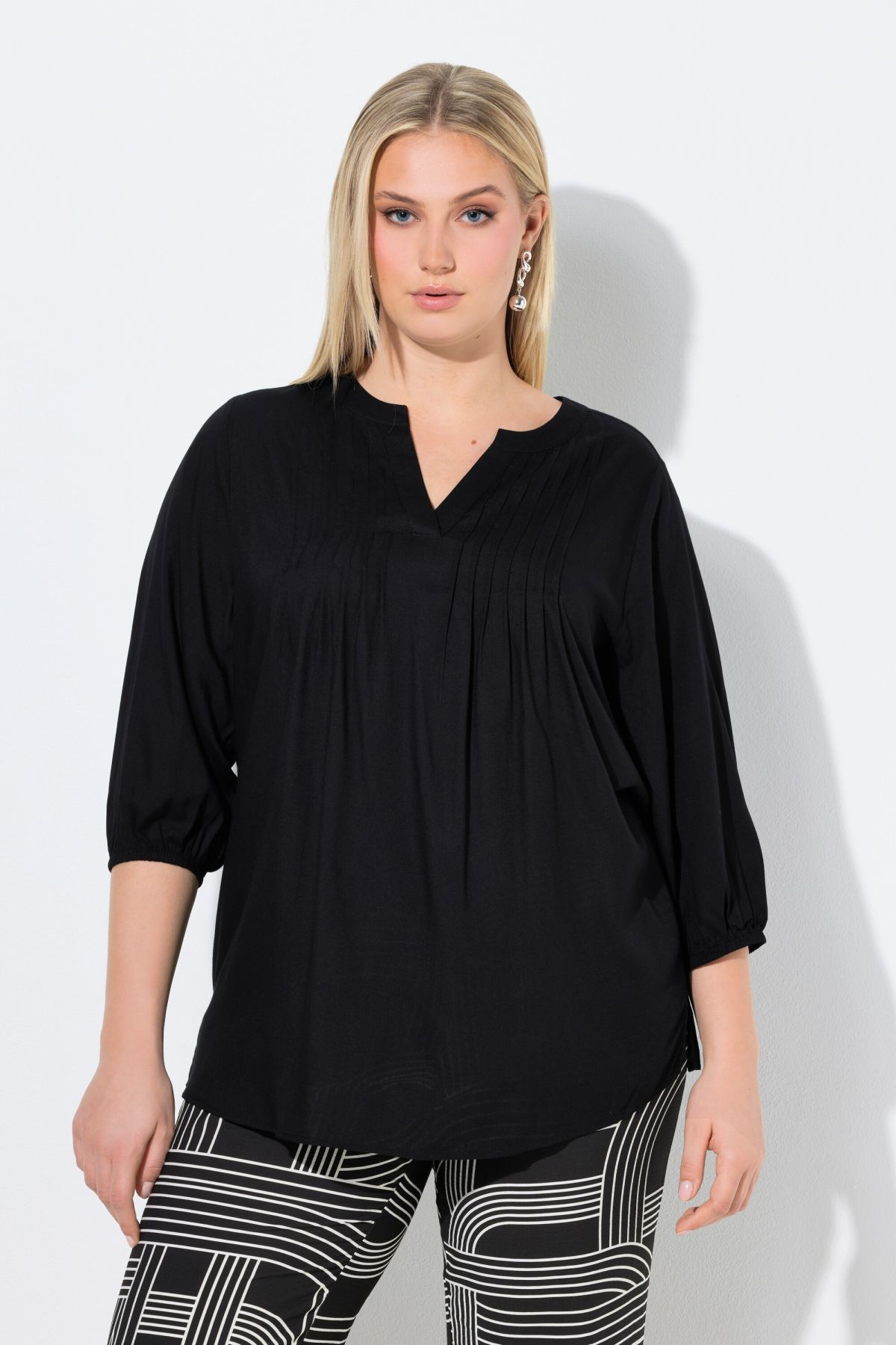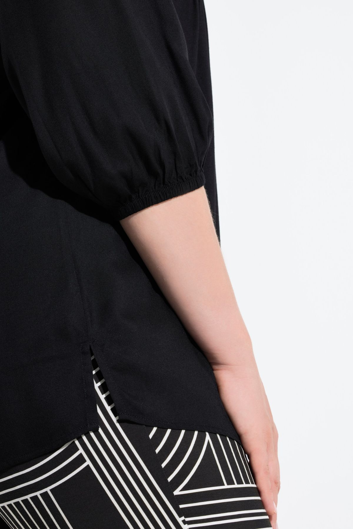 Блуза с удобна класическа кройка, изработена от мека вискоза. С V - образно деколте с плисета и широки 3/4 ръкави тип балон с ластични маншети.