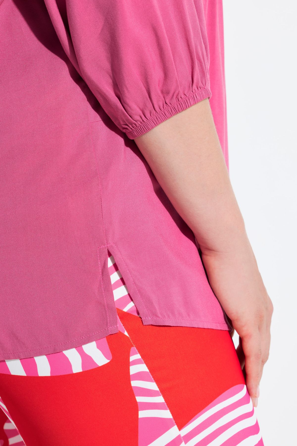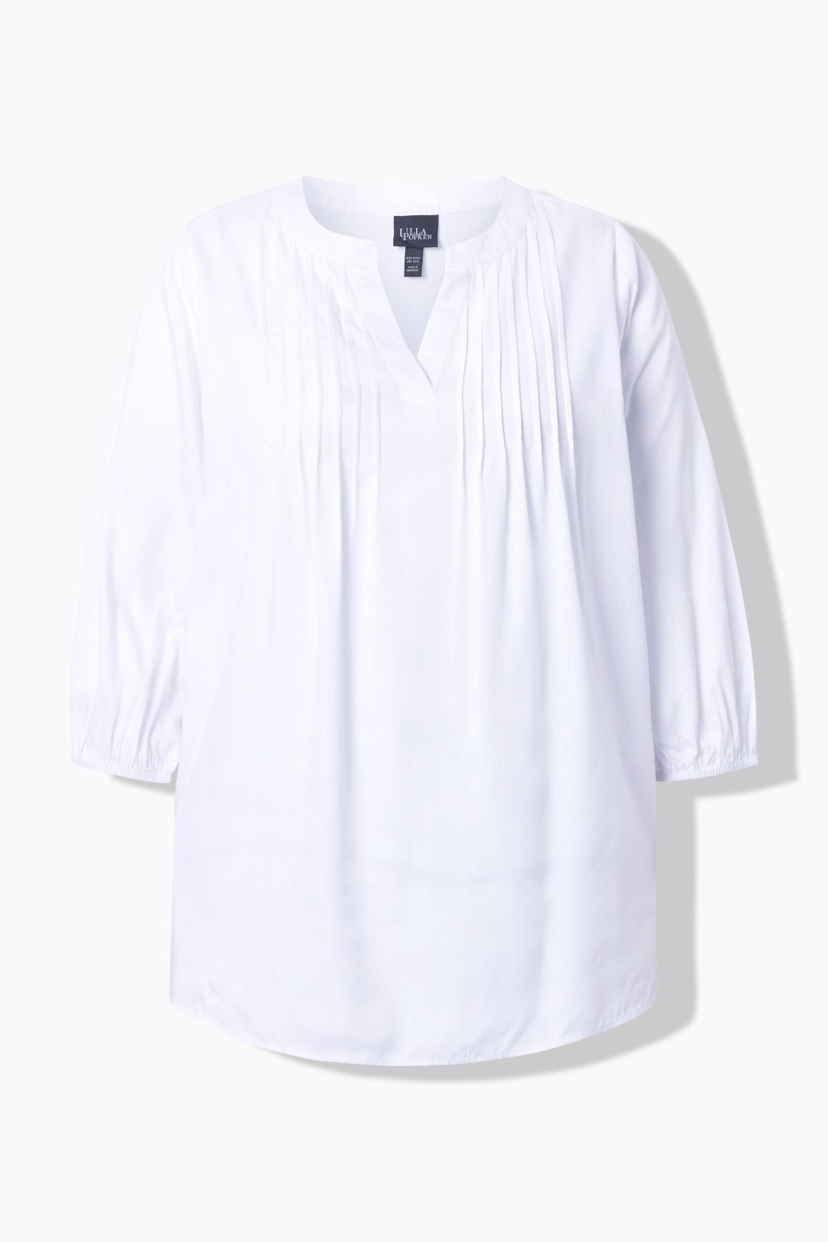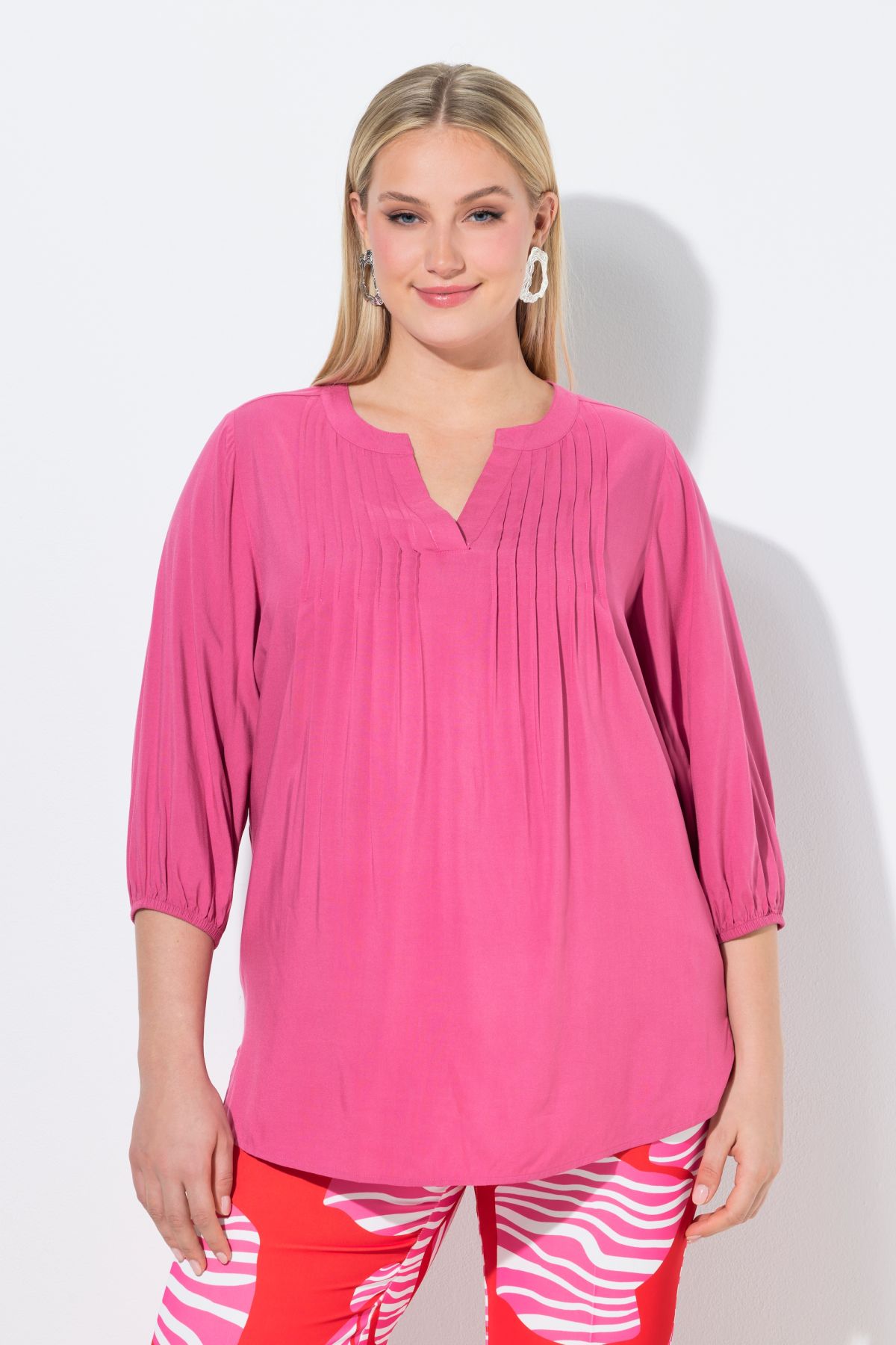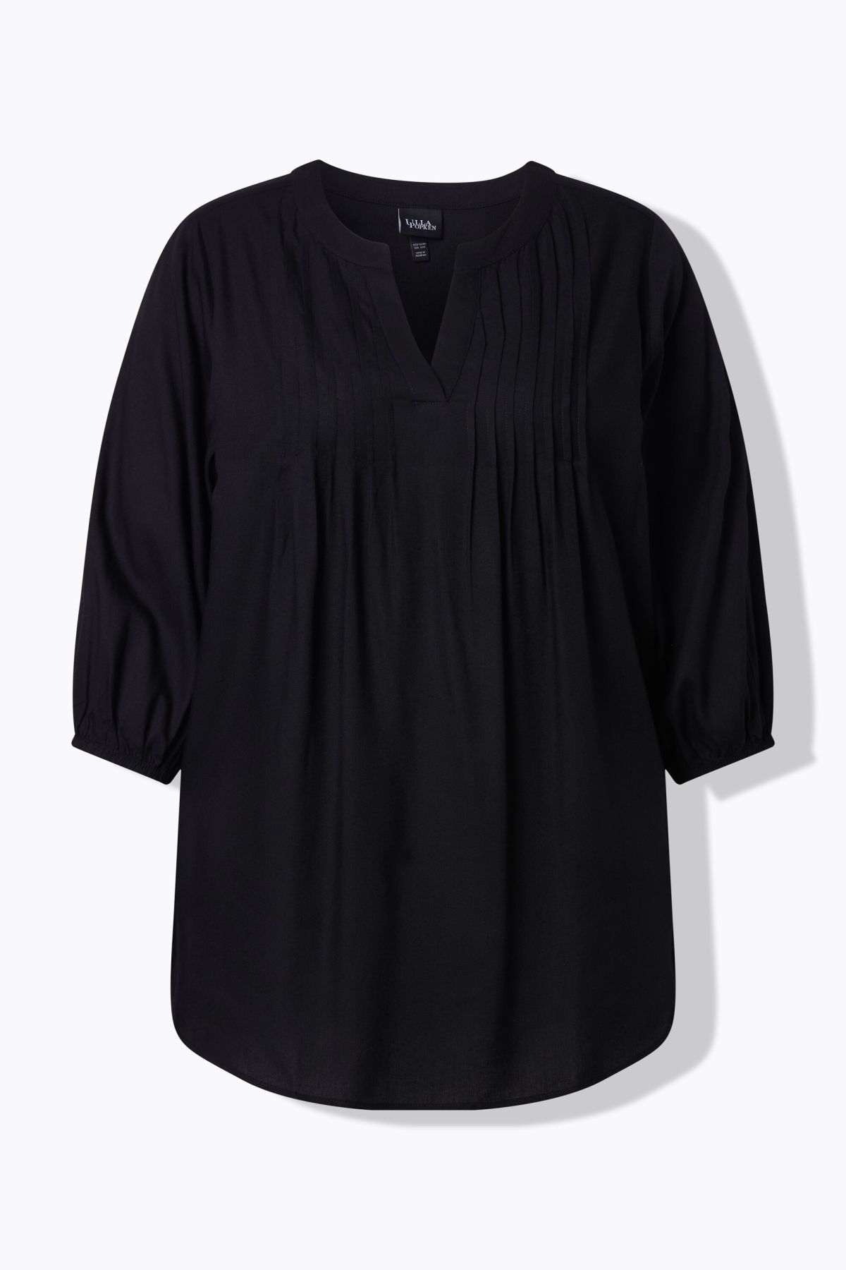 Блуза с удобна класическа кройка, изработена от мека вискоза. С V - образно деколте с плисета и широки 3/4 ръкави тип балон с ластични маншети.