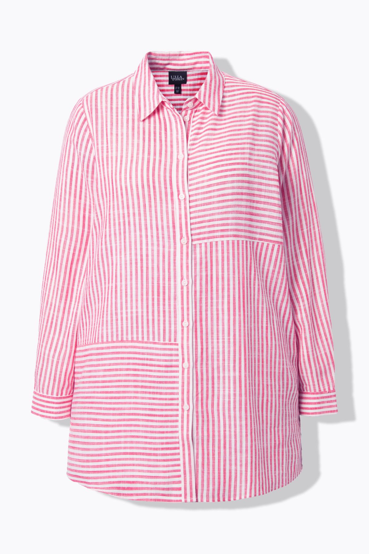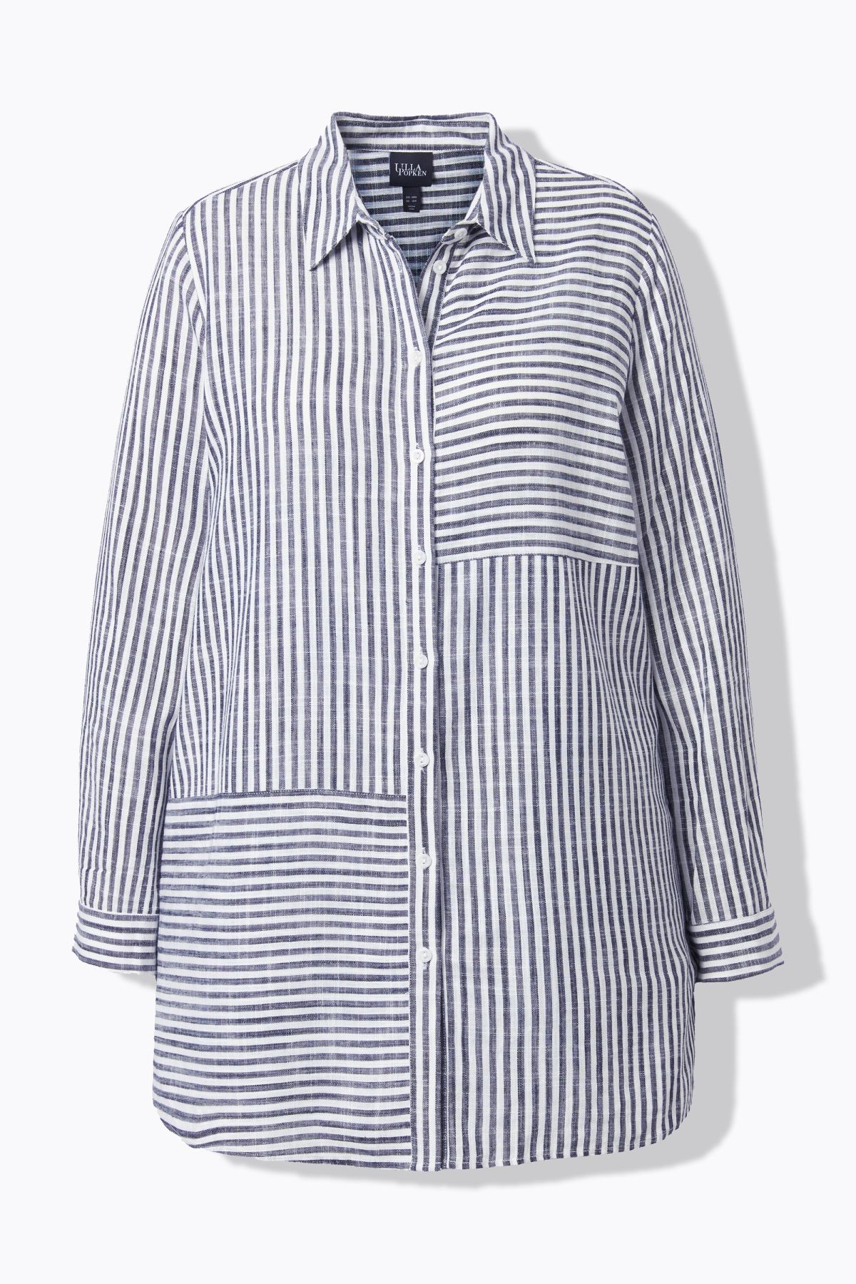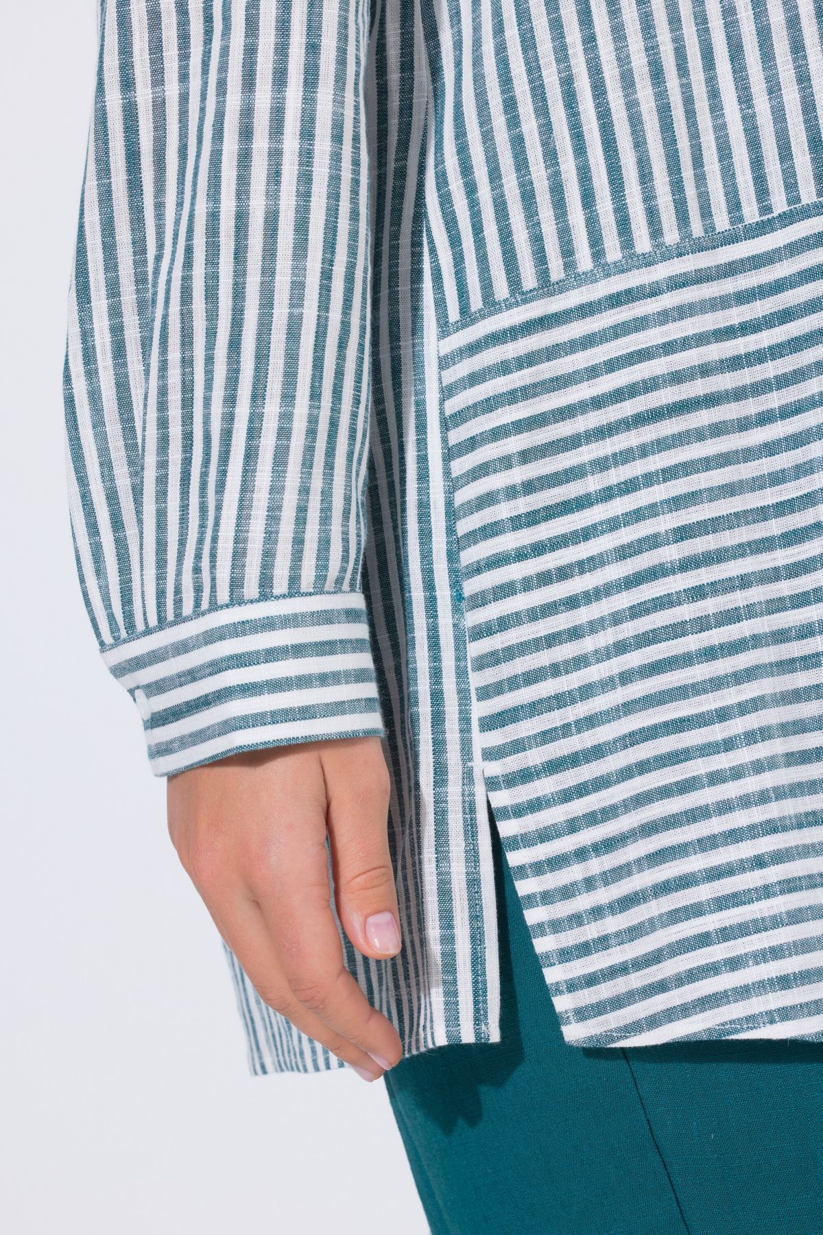 Ленена риза с микс от райета с класическа визия. С яка, копчета отпред, дълги ръкави с маншети. Със заоблен подгъв със странични цепки на подгъва.