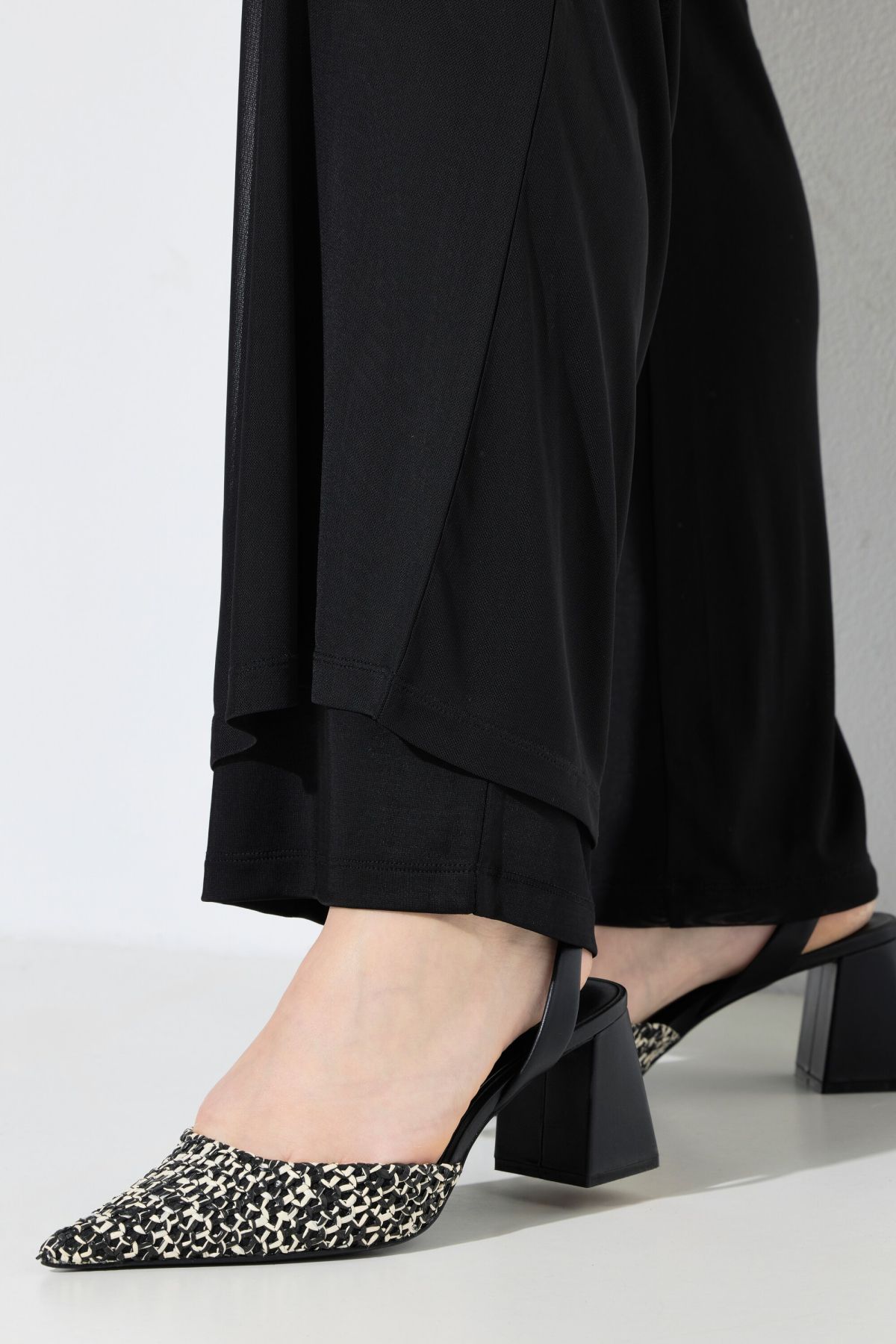 Панталон двупластов с мрежеста горна част и непрозрачна трикотажна подплата. С комфортна права кройка и еластична талия. Идеалният избор за всеки повод.