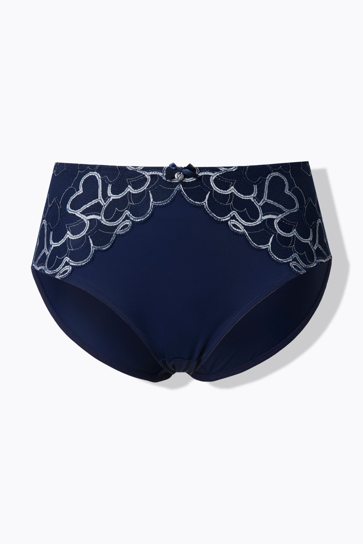 Бикини от микрофибър със сребърни акценти на сърца. С комфортна кройка, еластична талия, панделка отпред и памучна подплата.