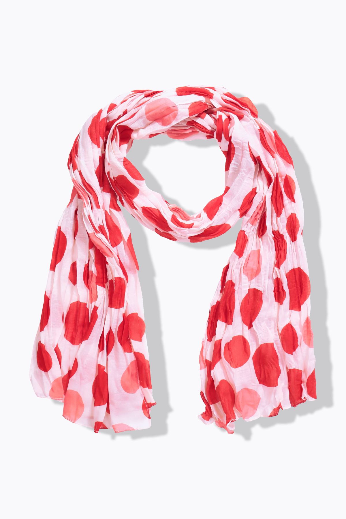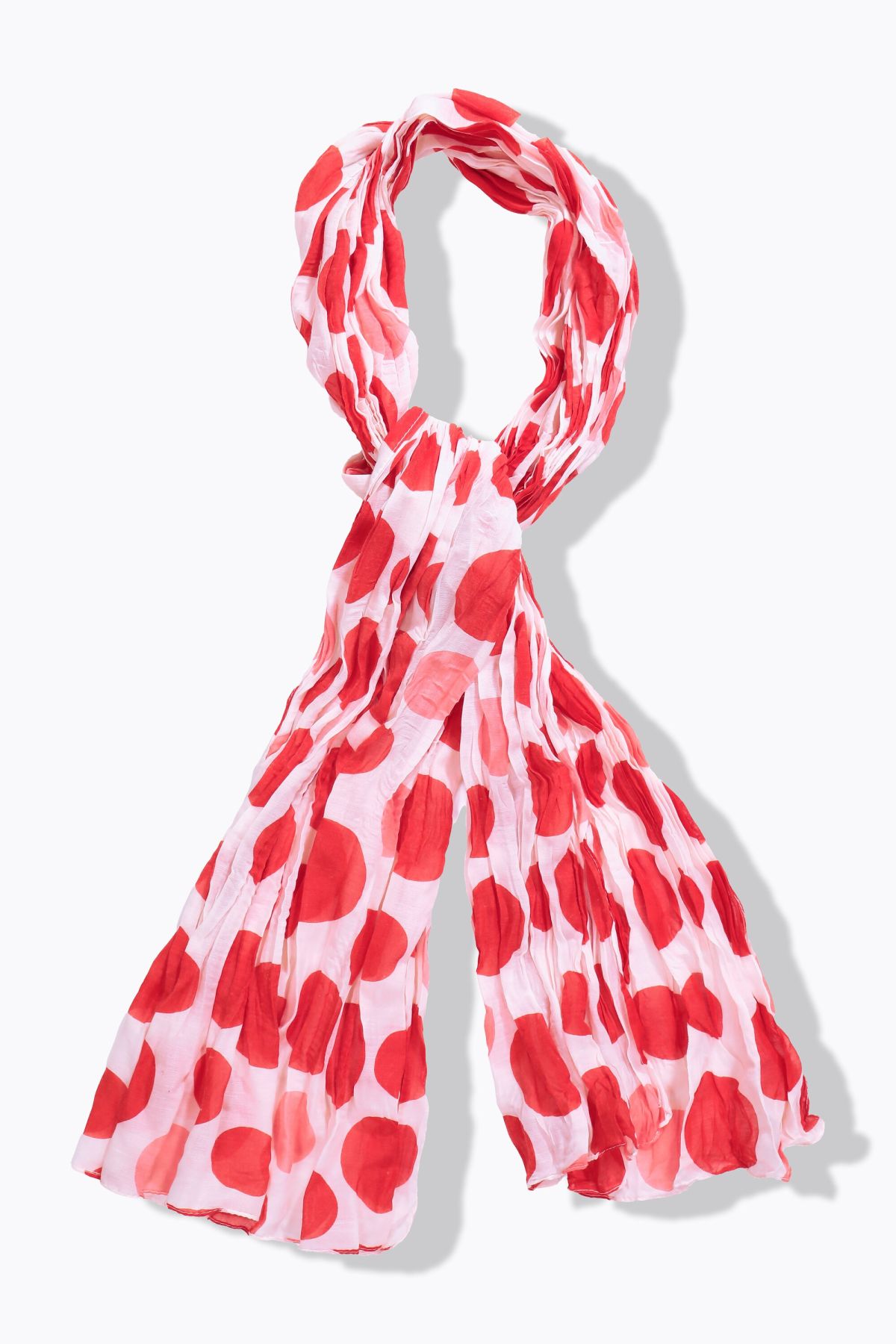 Шал с намачкан ефект с принт на точки. Изключително лек и комфортен от мека вискозна материя.