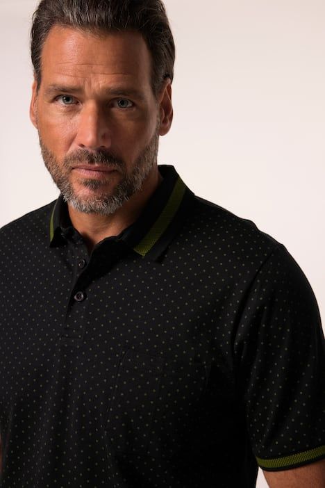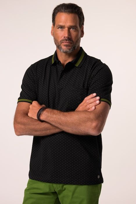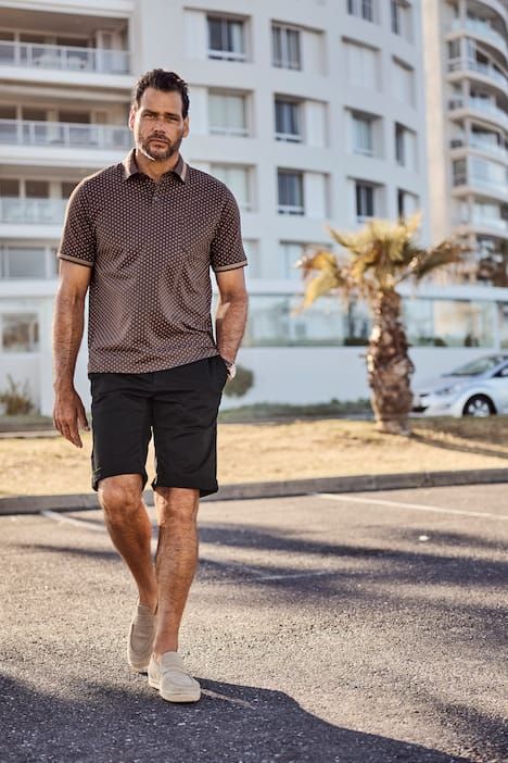 Тениска с яка и копчета на деколтето. От мека текстурирана материя. С къси ръкави.