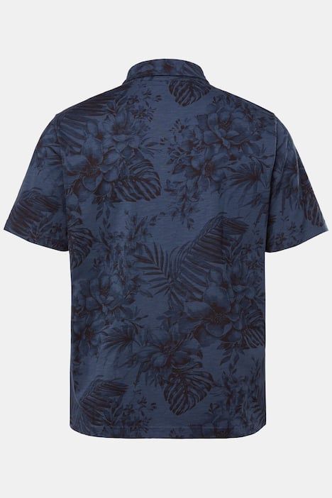 Блуза с яка с копчета на деколтето и принт на палми. С къси ръкави и класическа кройка. От мека, памучна материя.