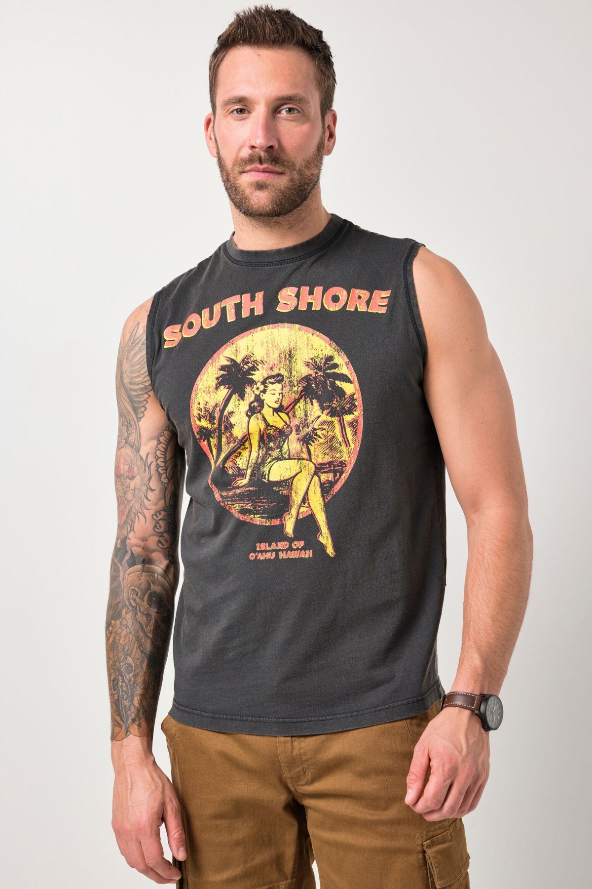 Потник с принт отпред и винтидж визия. С кръгло деколте и широки, комфортни презрамки. От мека, памучна материя.