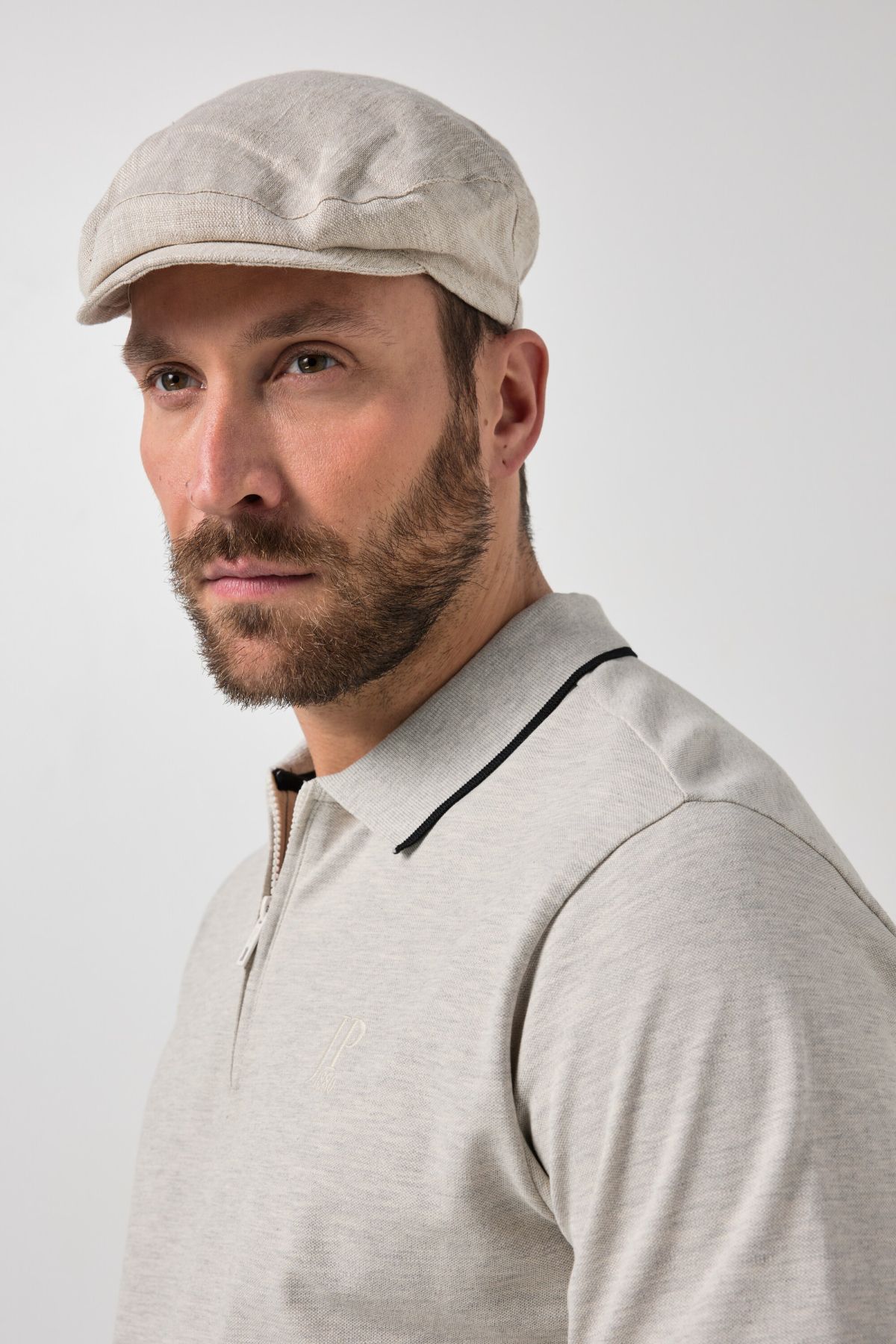 Шапка тип каскет от мека, ленена материя. Стил и елегантност в ежедневието.