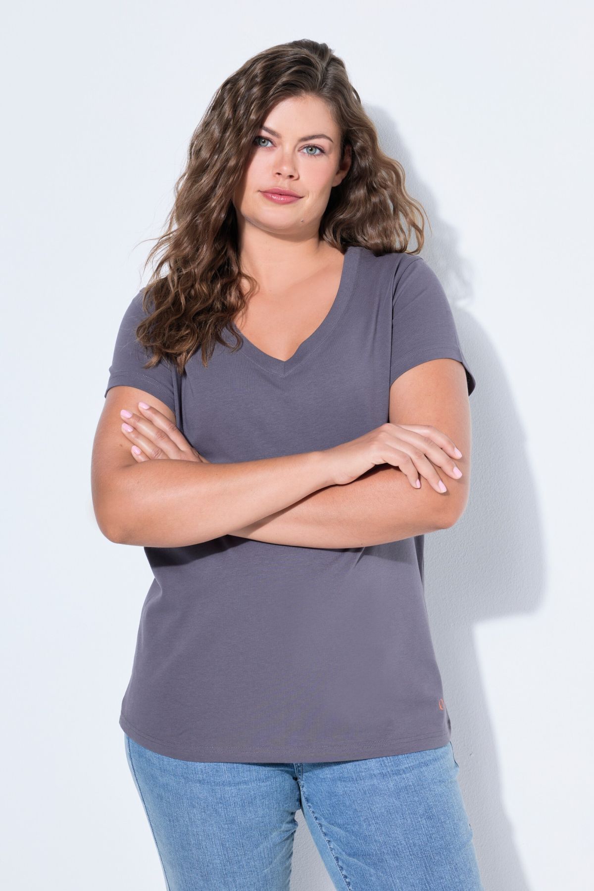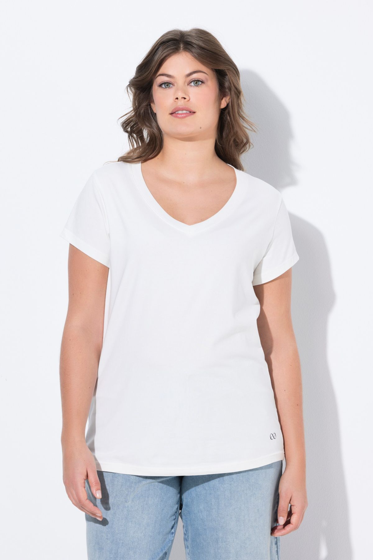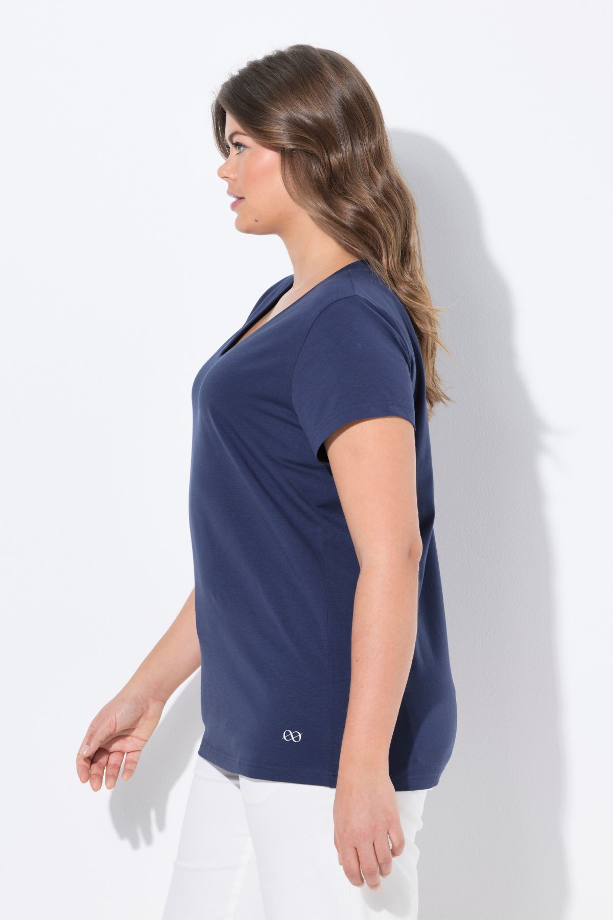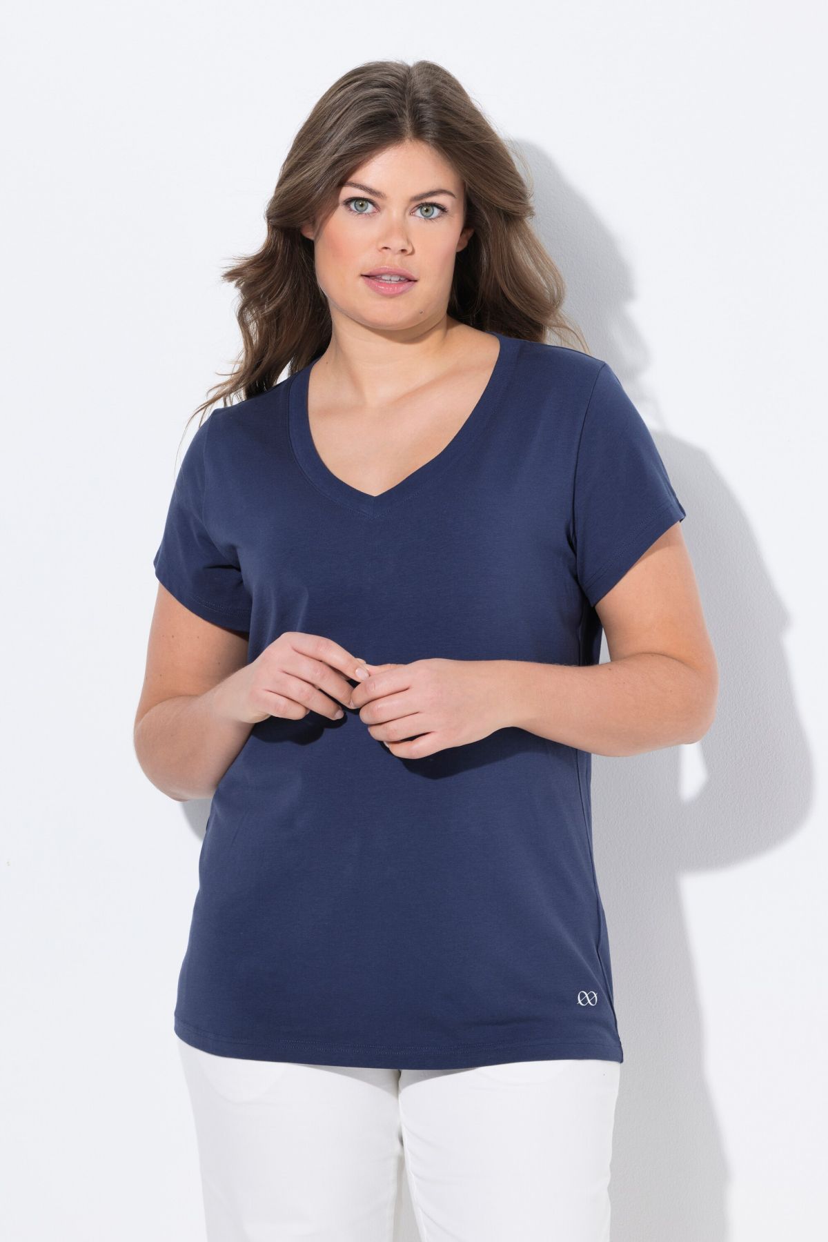 Тениска с V - образно деколте. С къси ръкави. С класическа, изчистена визия, подходяща за всяка комбинация.