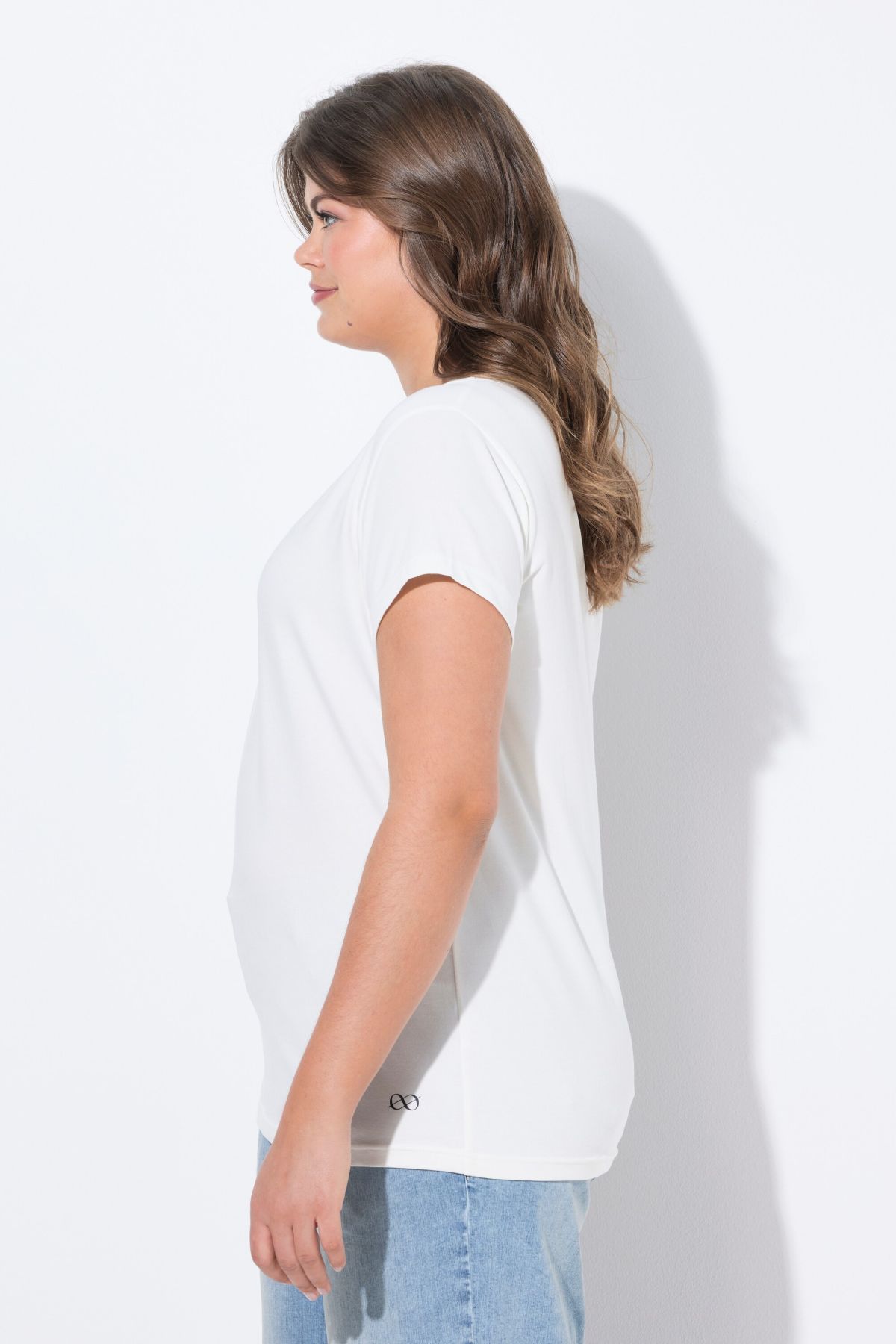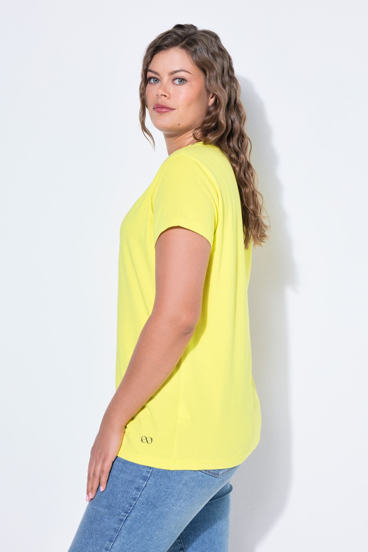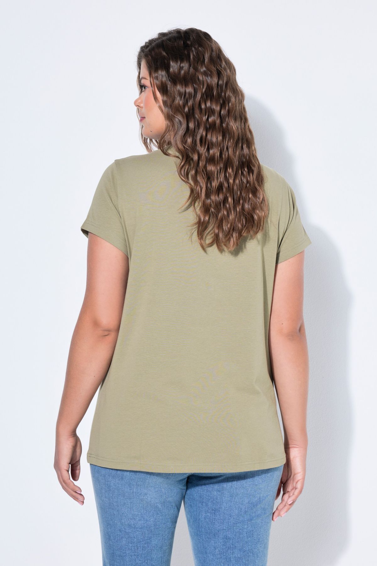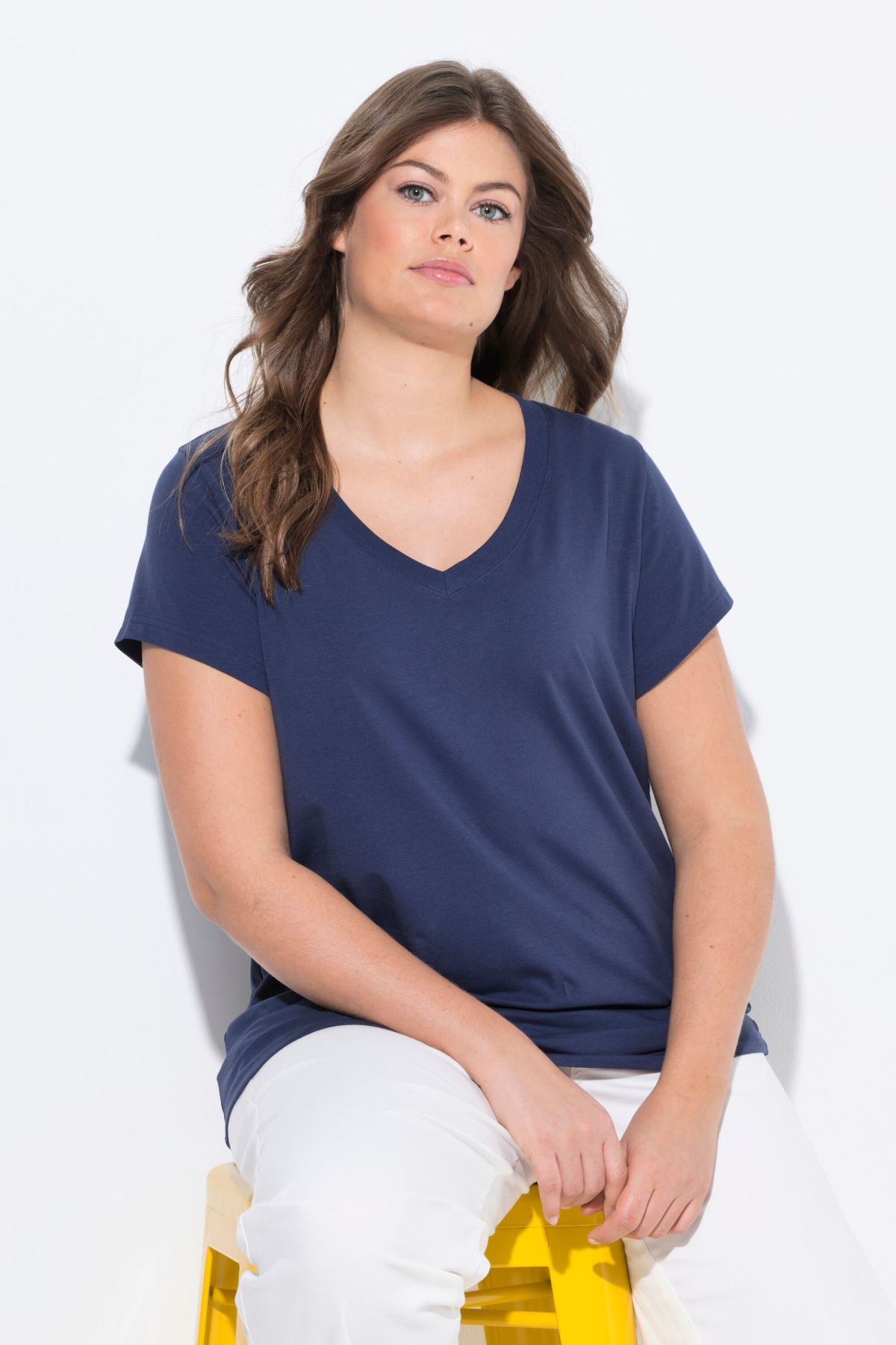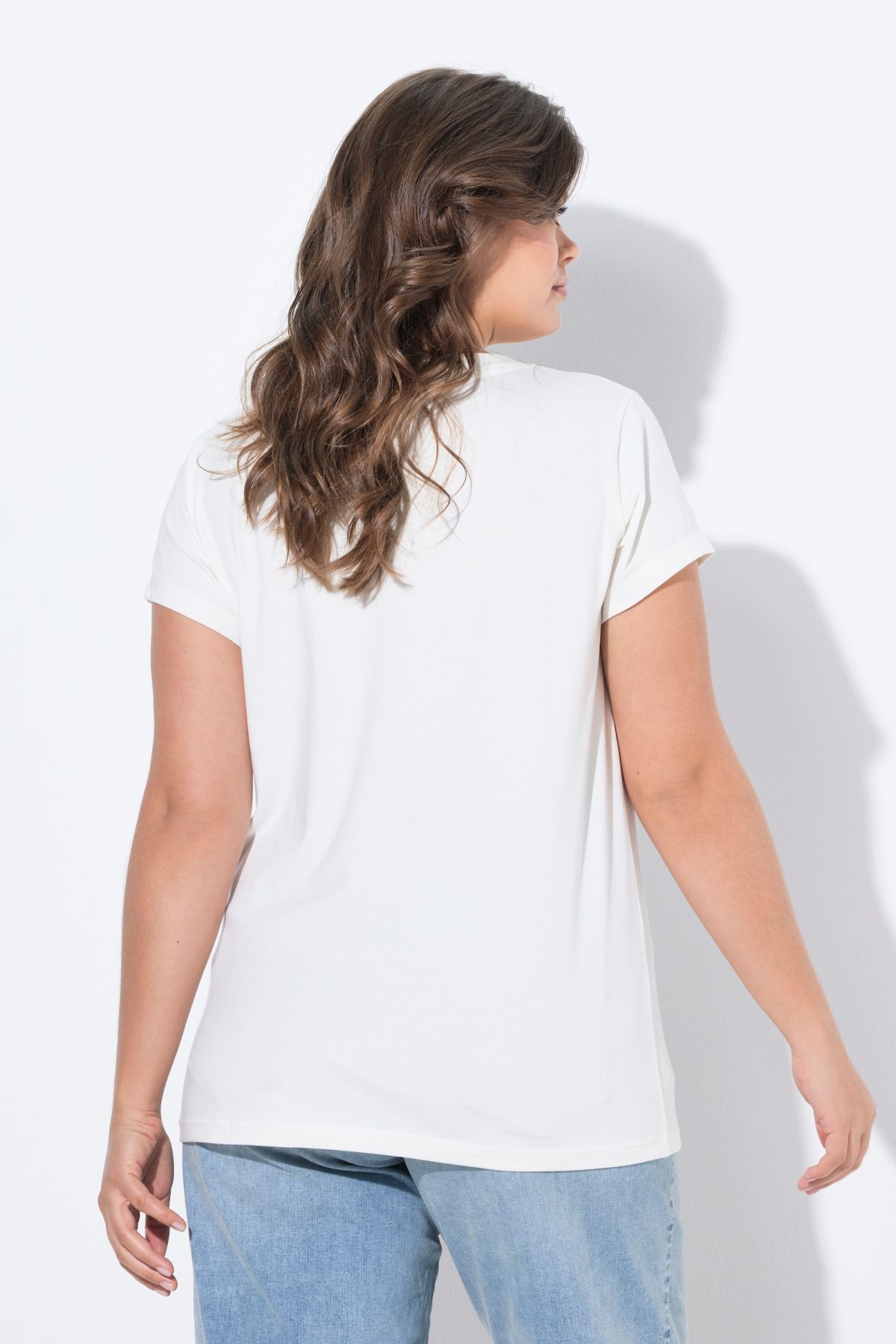 Тениска с V - образно деколте. С къси ръкави. С класическа, изчистена визия, подходяща за всяка комбинация.