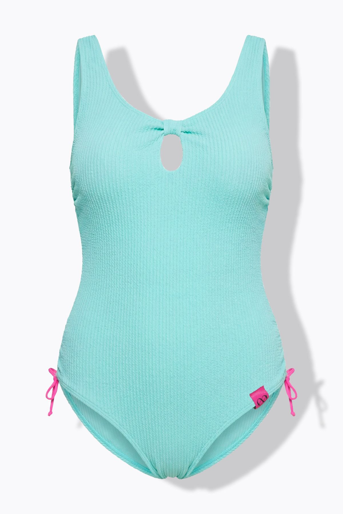 Бански от еластична рипсена материя с кръгло деколте с изрязан акцент. широки, комфортни презрамки, еластична лента под бюста, подплата отпред. Перфектен за комбиниране с плажна рокля.