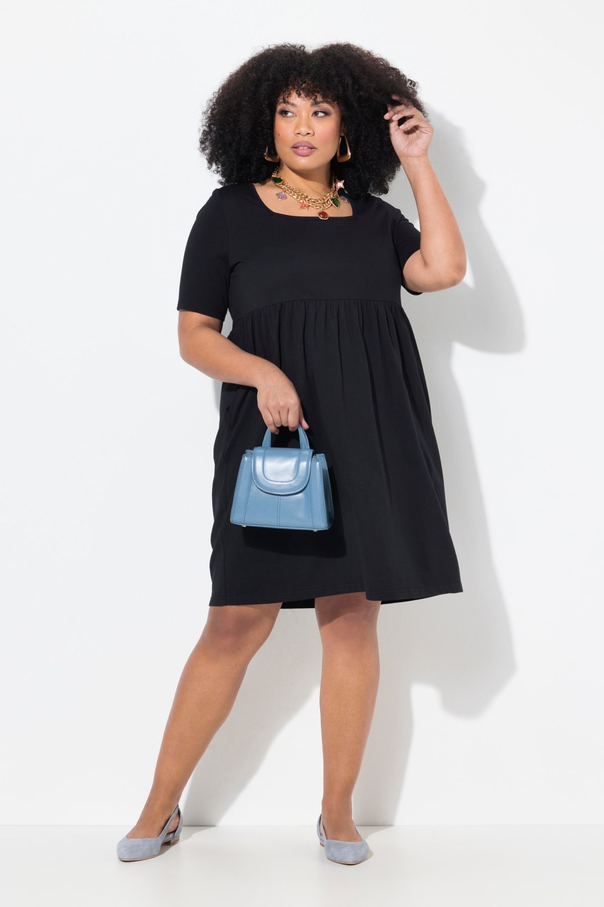 Рокля едноцветна с квадратно деколте