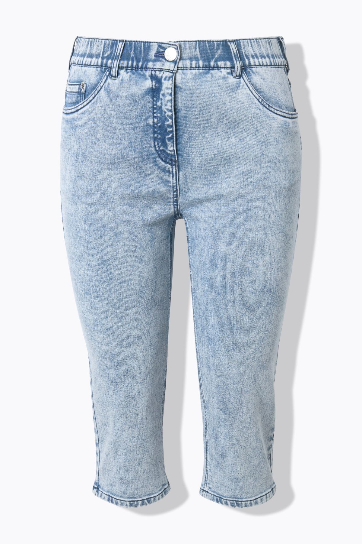 Панталон тип капри с дънкова визия, комфортни за ежедневието или път. С фиксирана талия с гайки за колан, копче и цип отпред. Дизайн с 5 джоба.
