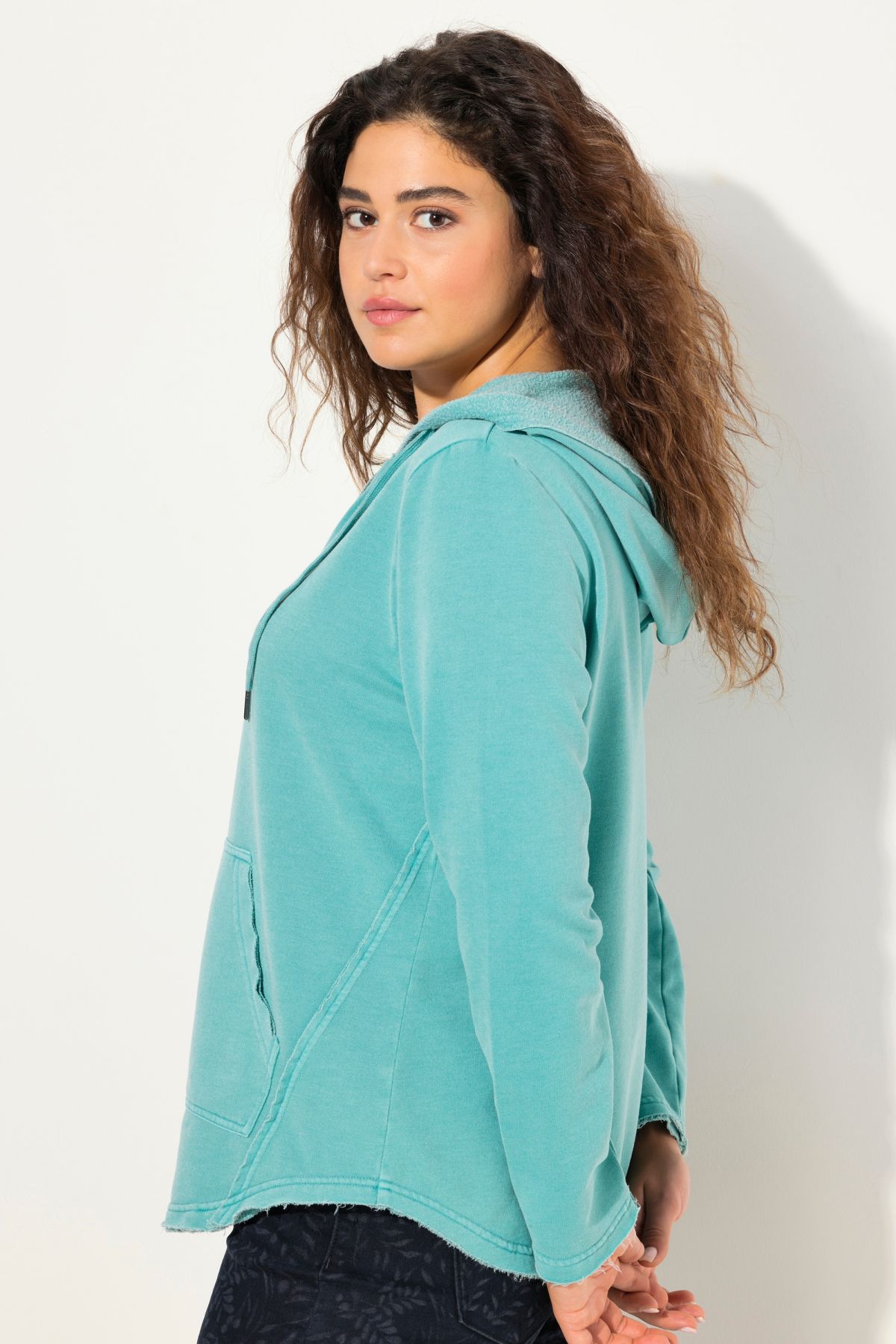 Суитчър отворен отпред с V - образно деколте със свободна кройка и модерен подгъв с ресни. С частични карго джобове, качулка с връзка и дълги ръкави.
