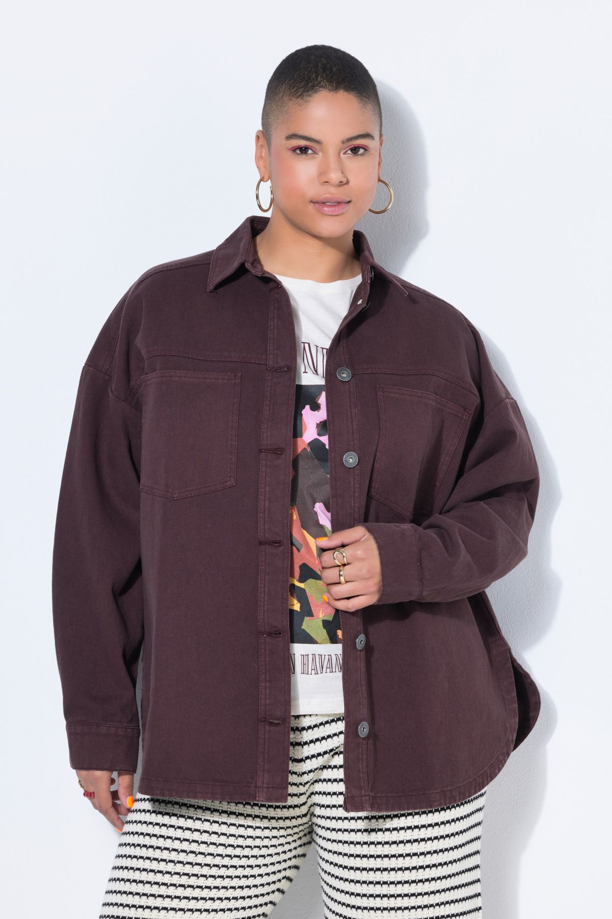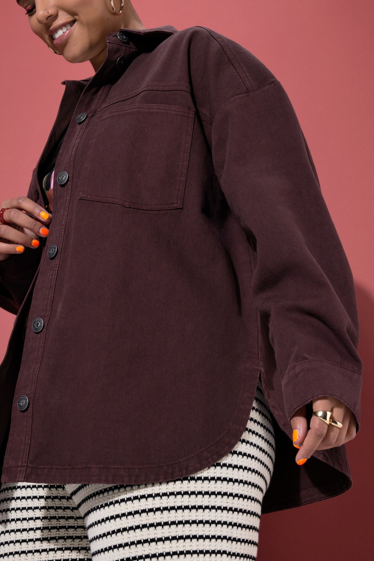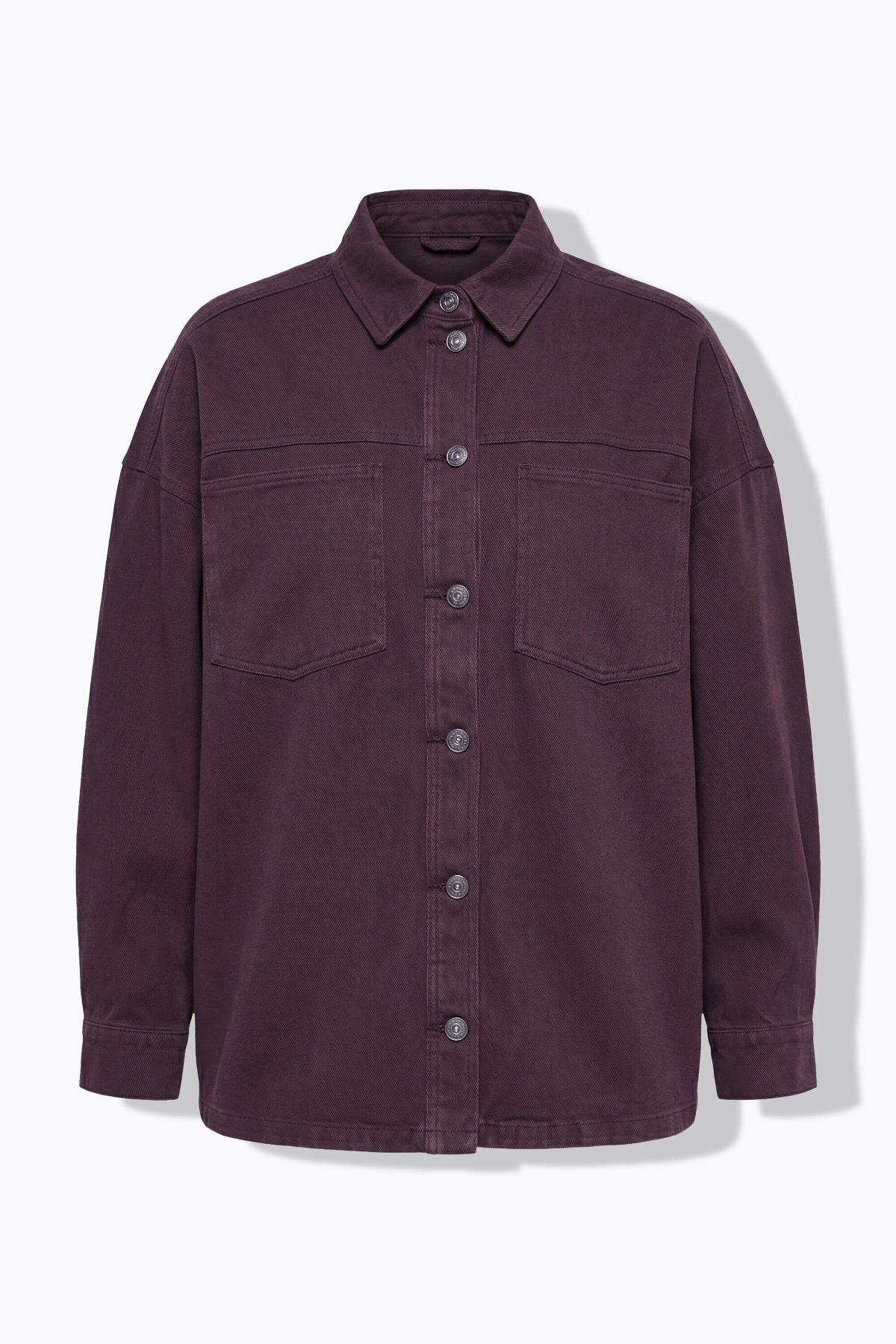 Дънково яке с разкроена овърсайз кройка с дълги ръкави с паднали рамене. С яка, метални копчета отпред и външни джобове. Комфорт и удобство в ежедневието.