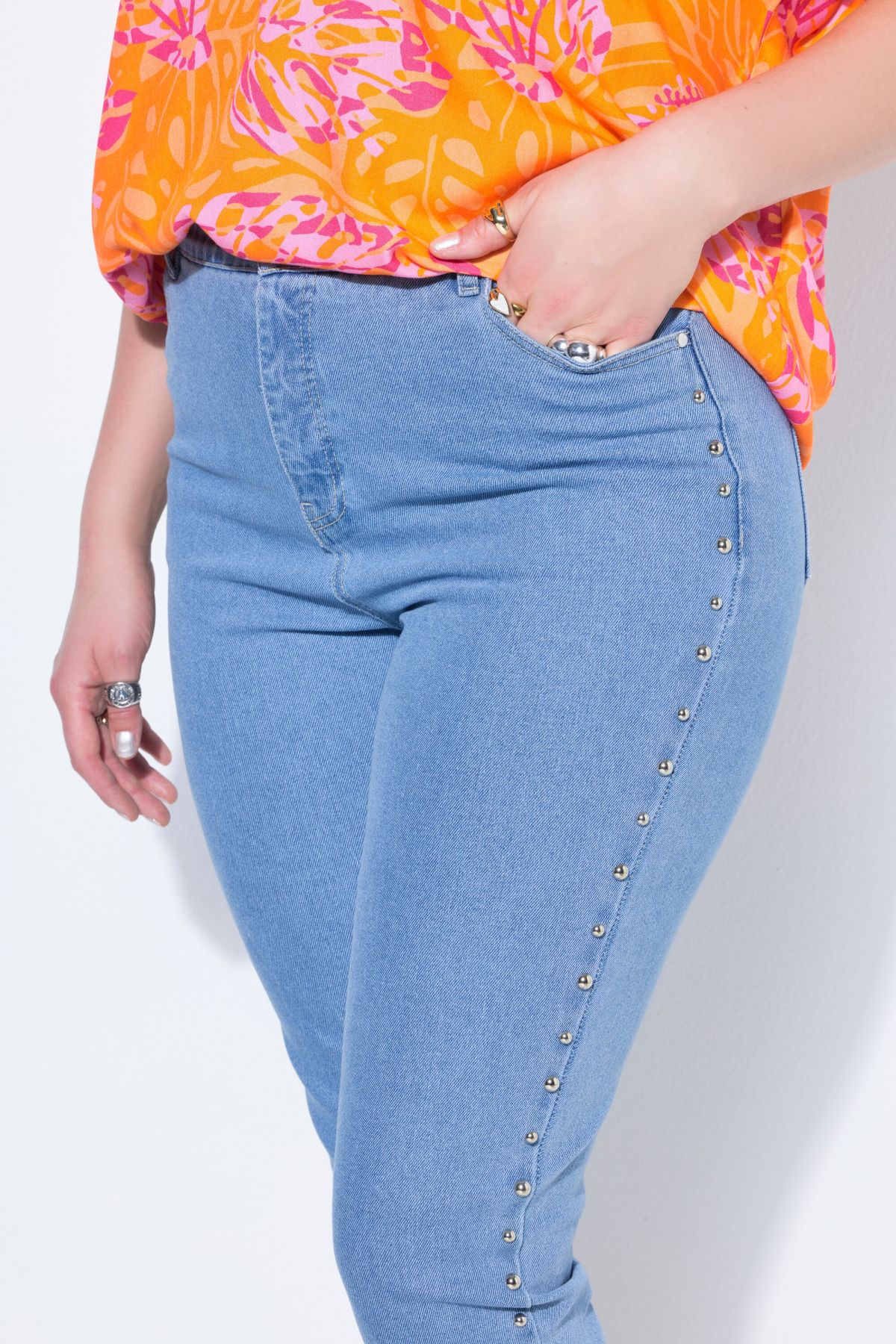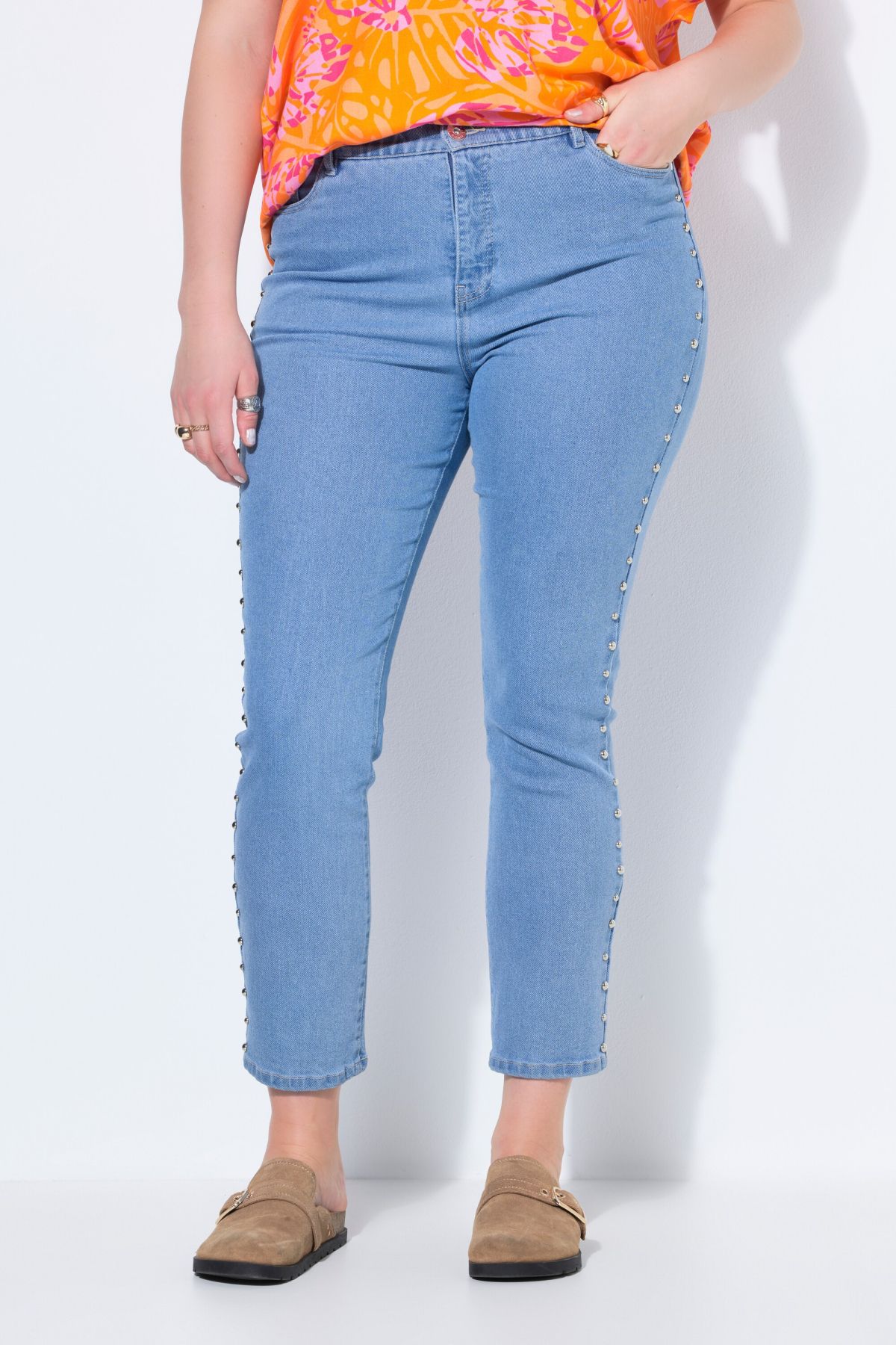 Дънки тип Mom с декоративен акцент