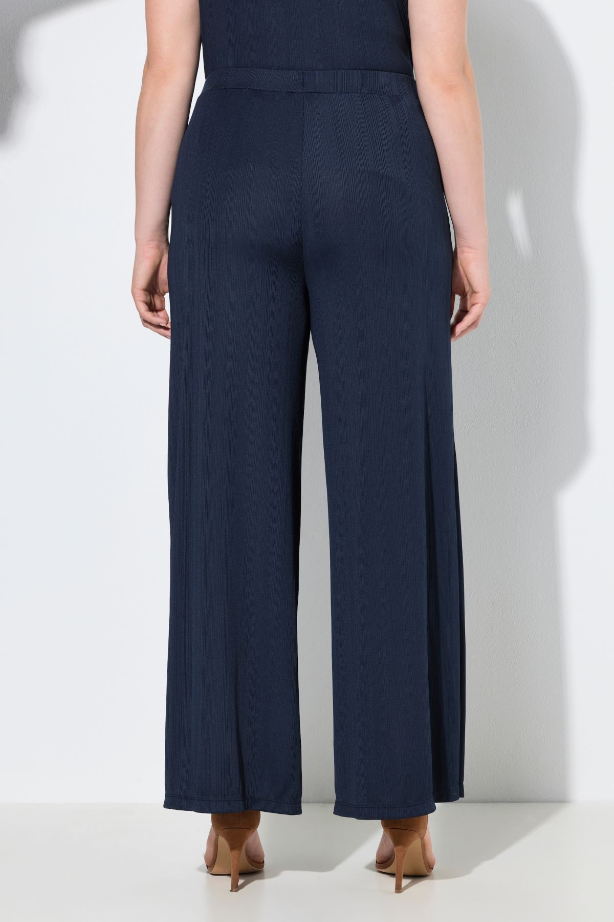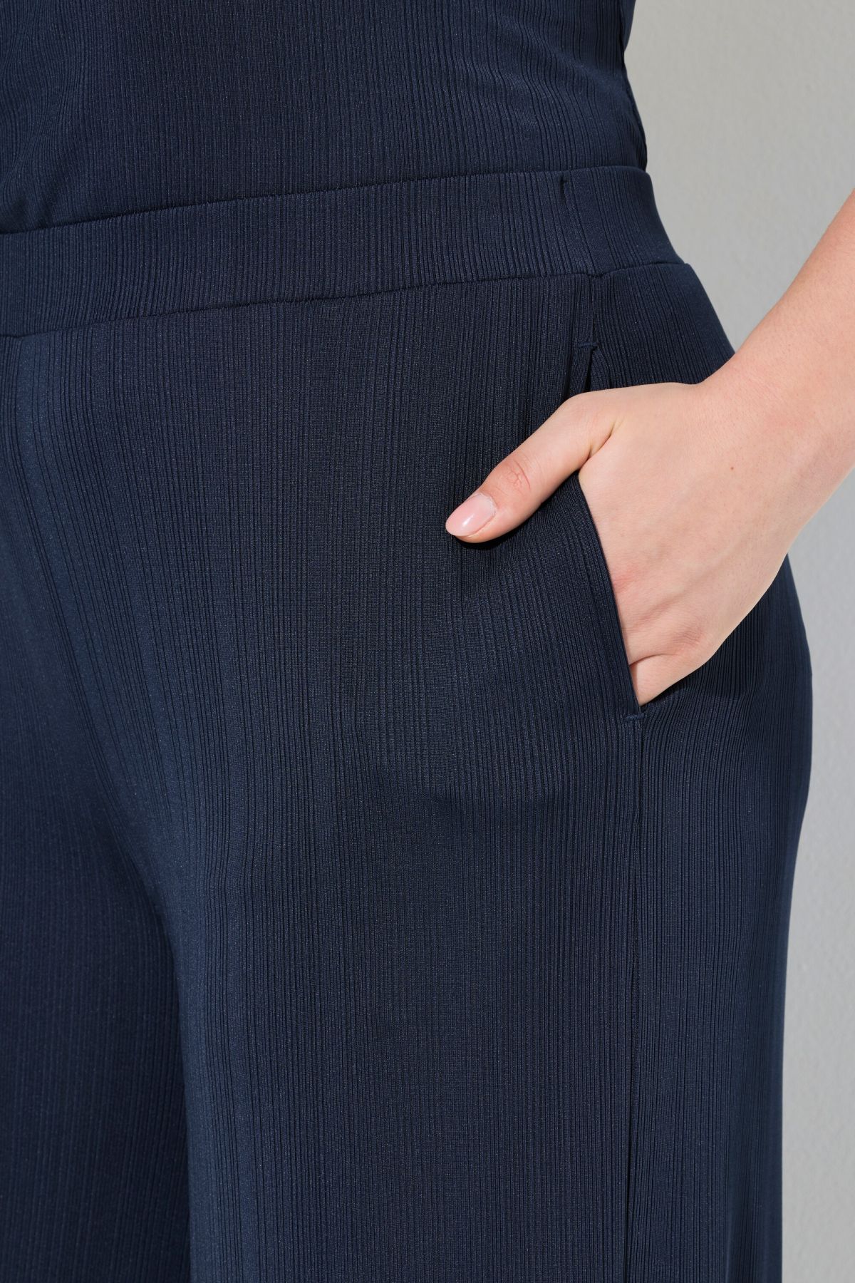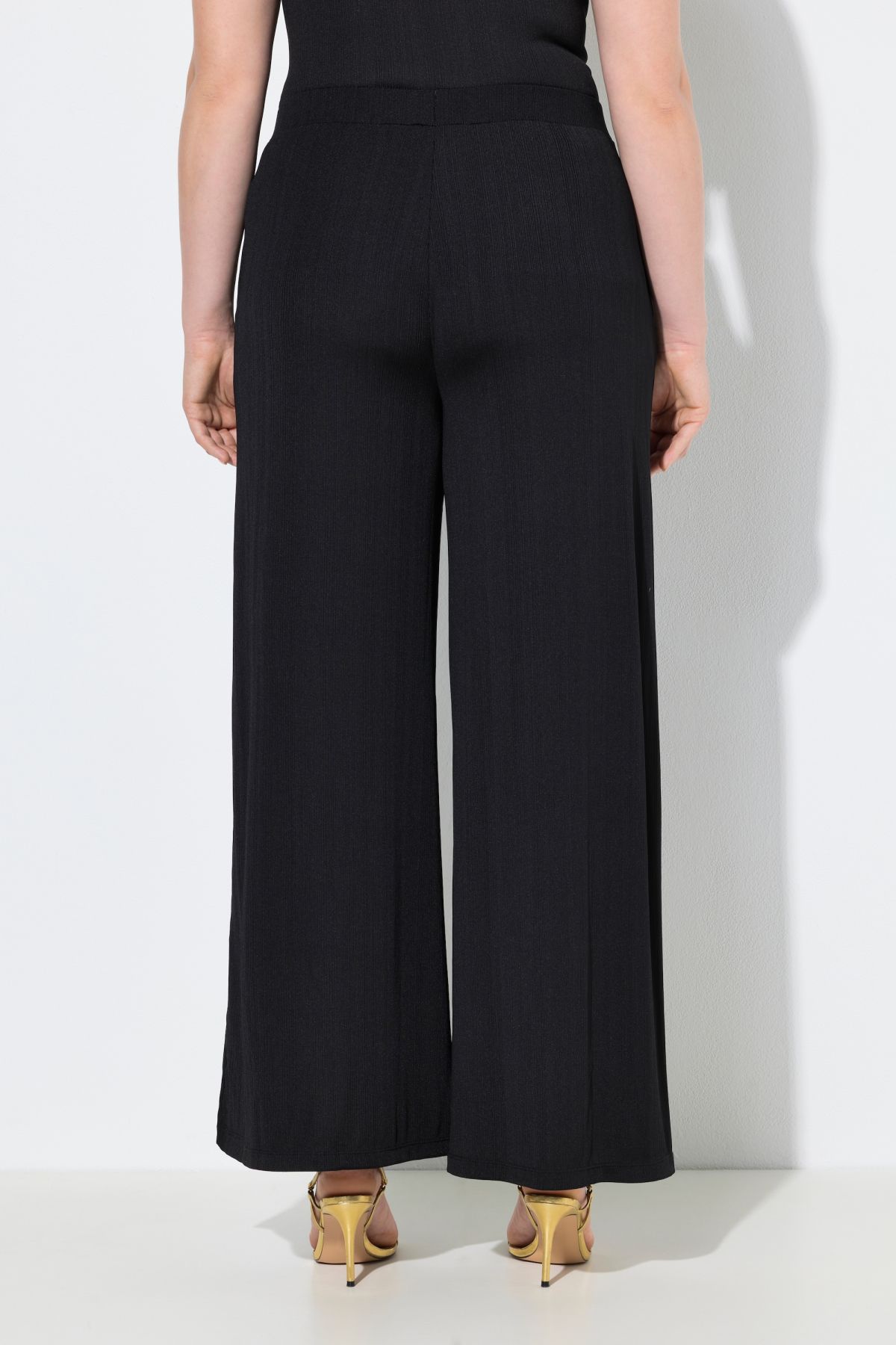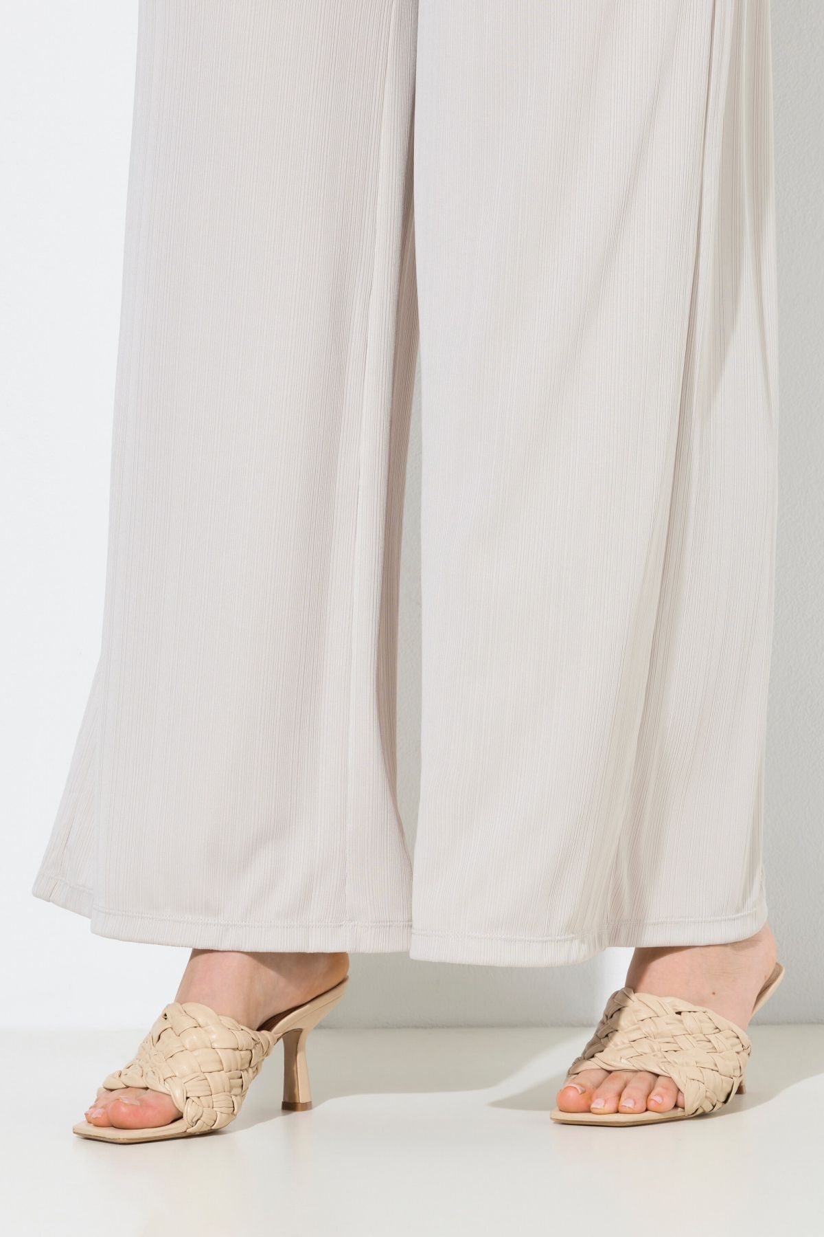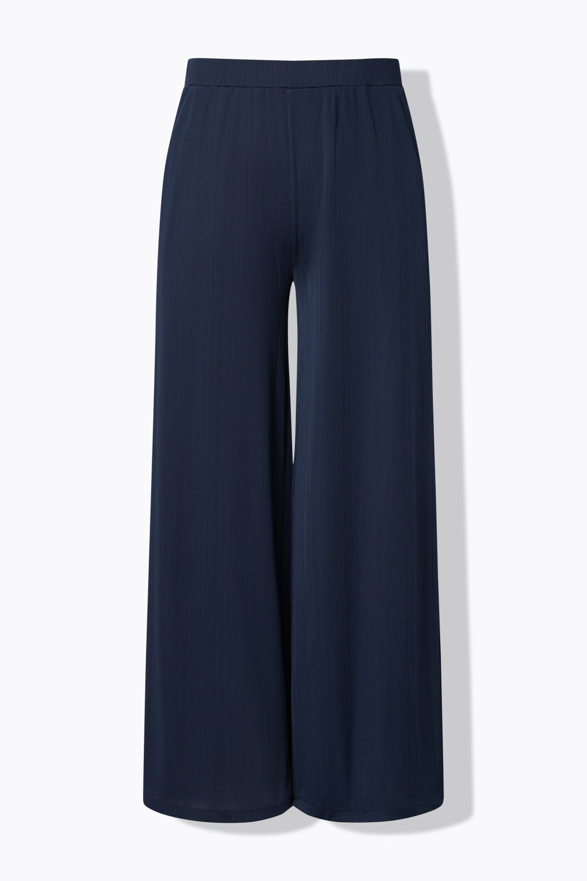 Трикотажен панталон тип Marlene от еластична материя с широки крачоли, който не се глади. С еластична талия и широки, прави крачоли