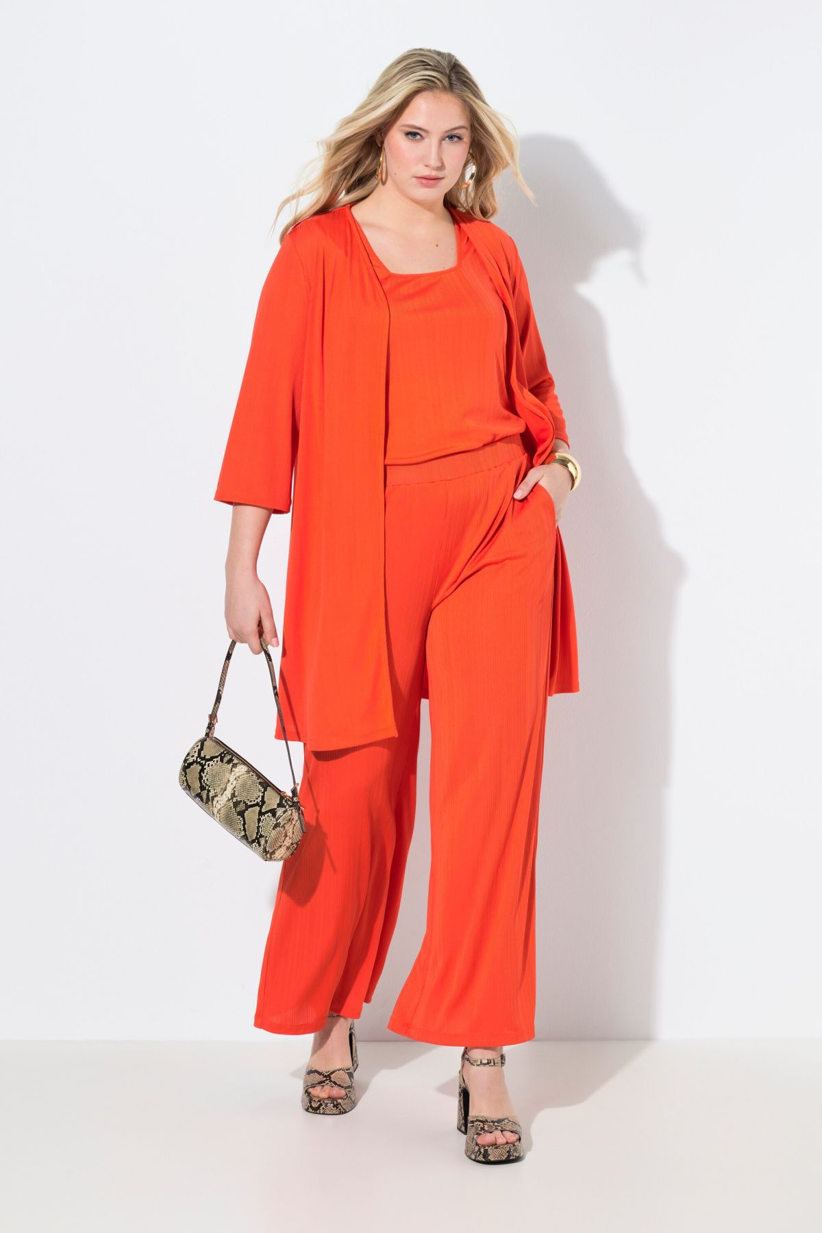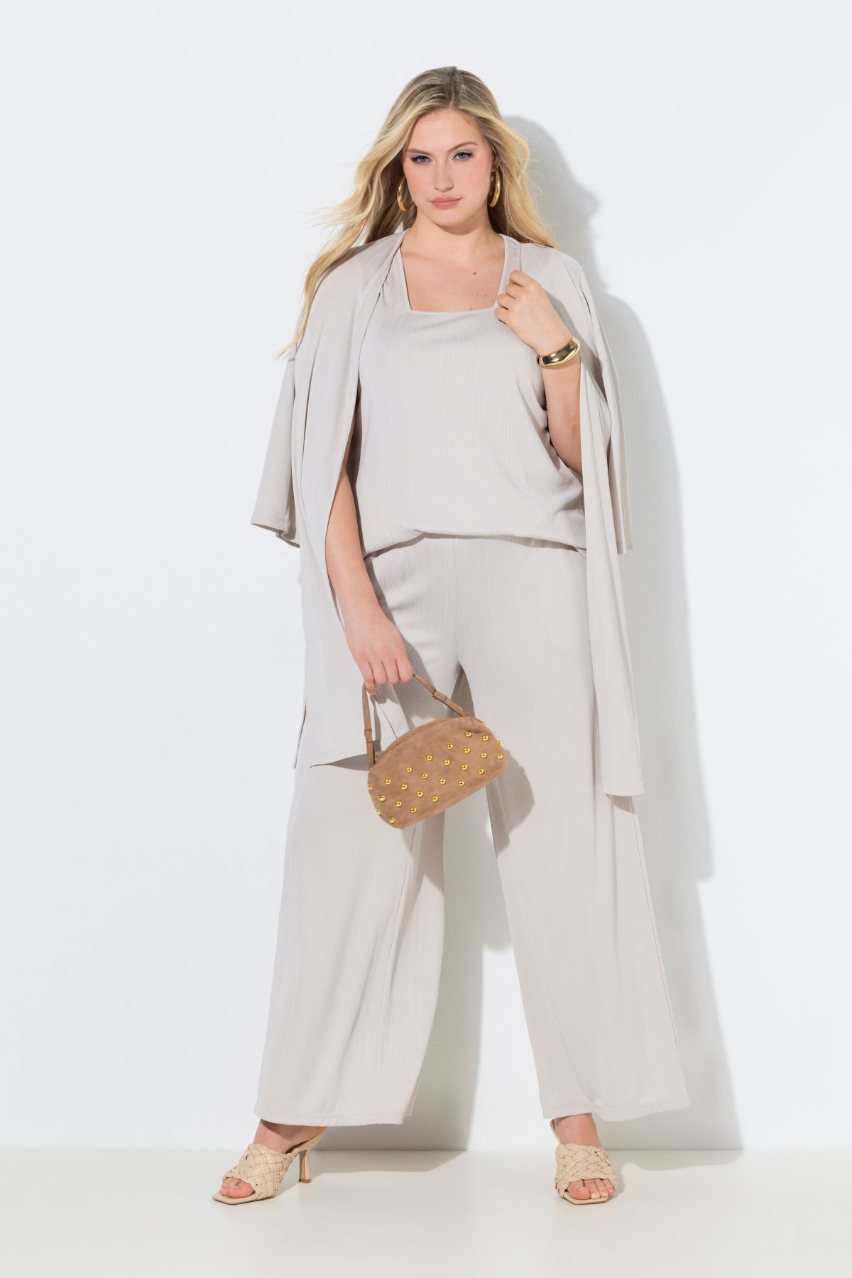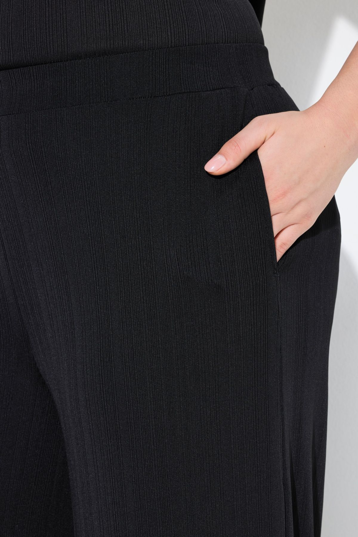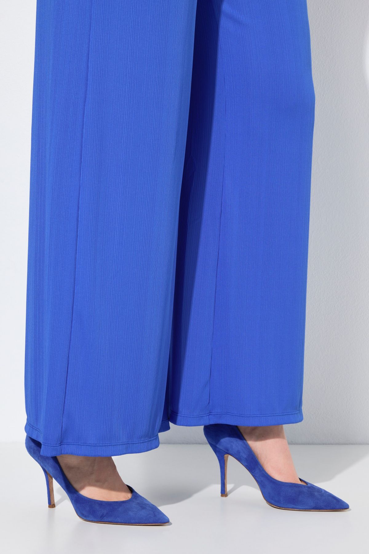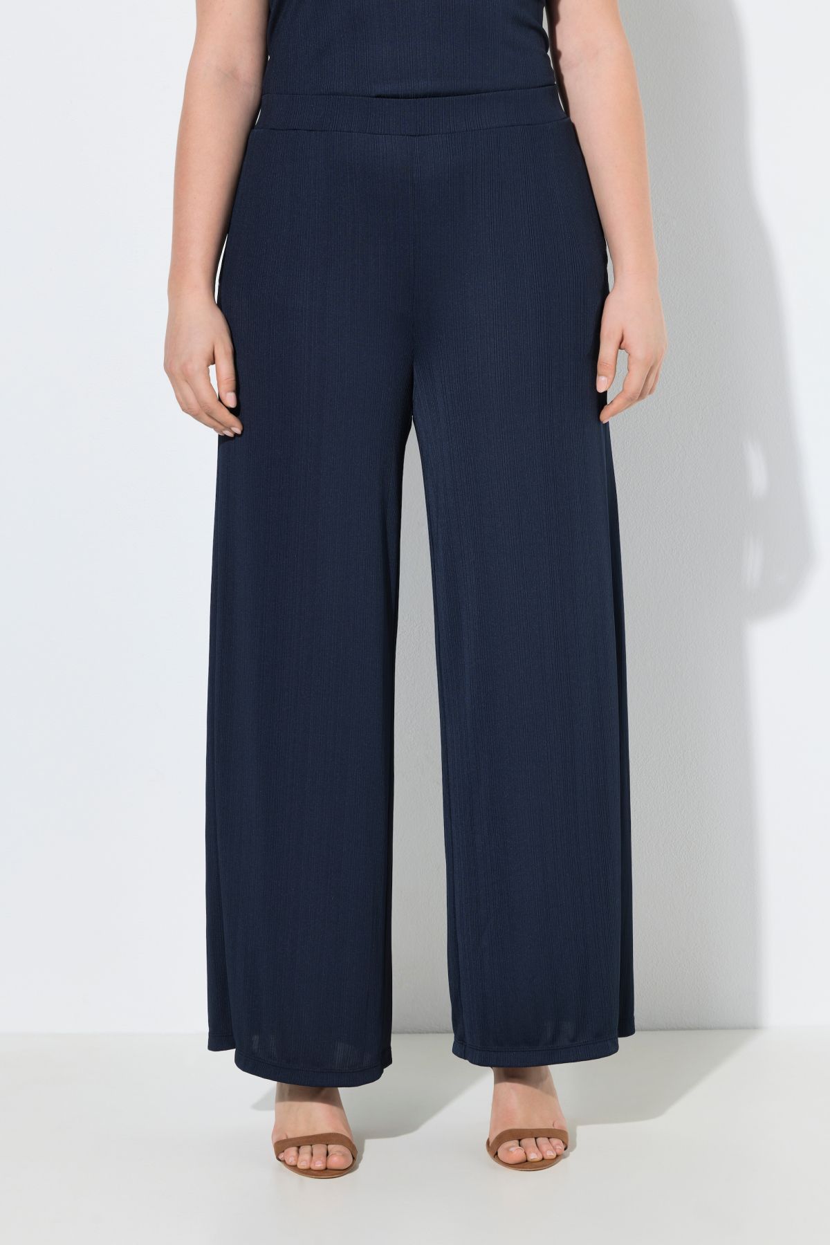 Трикотажен панталон тип Marlene от еластична материя с широки крачоли, който не се глади. С еластична талия и широки, прави крачоли