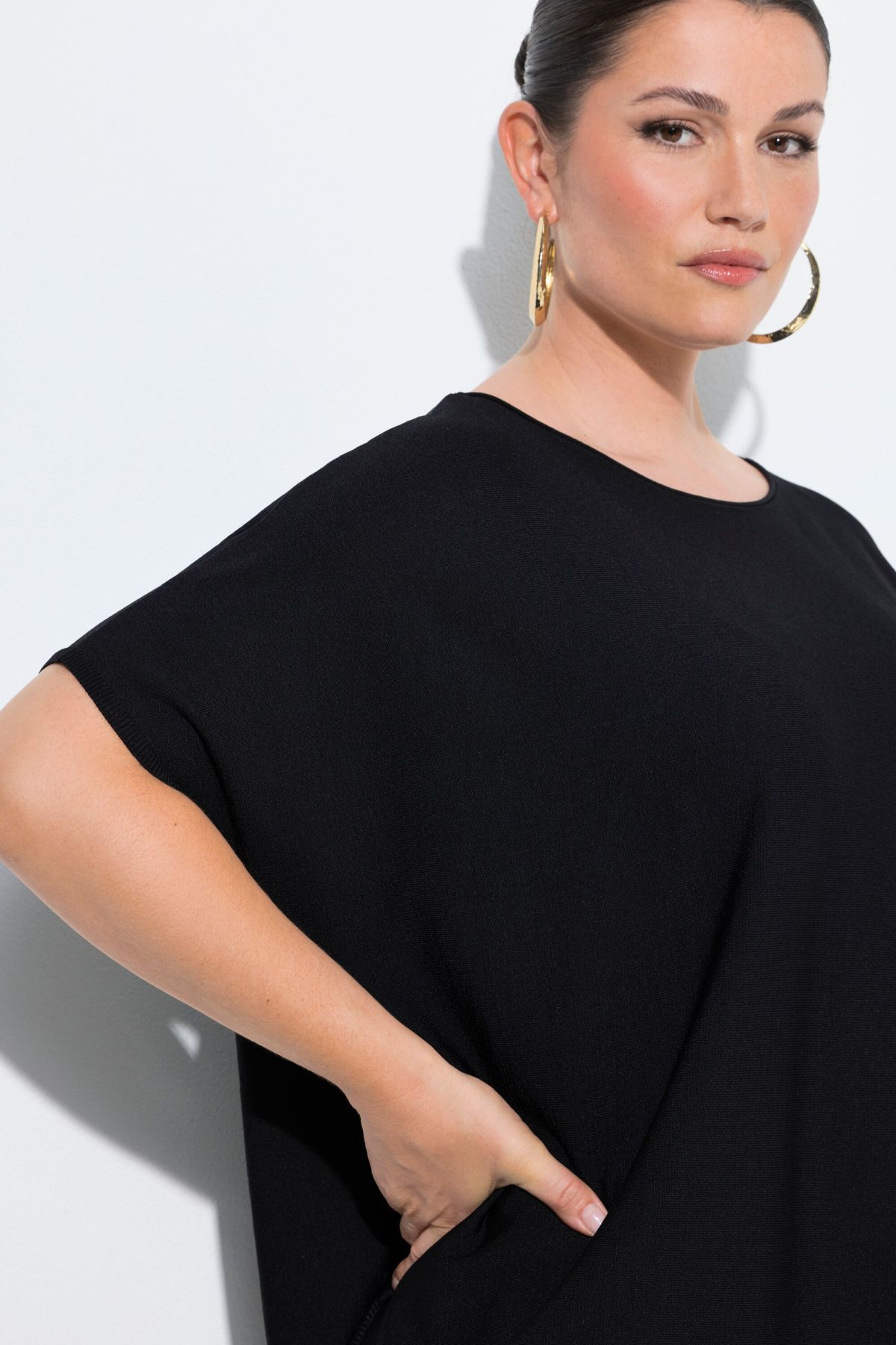 Пуловер с деколте тип лодка с ежедневен драпиран силует. С 3/4 ръкави и фина плетка.