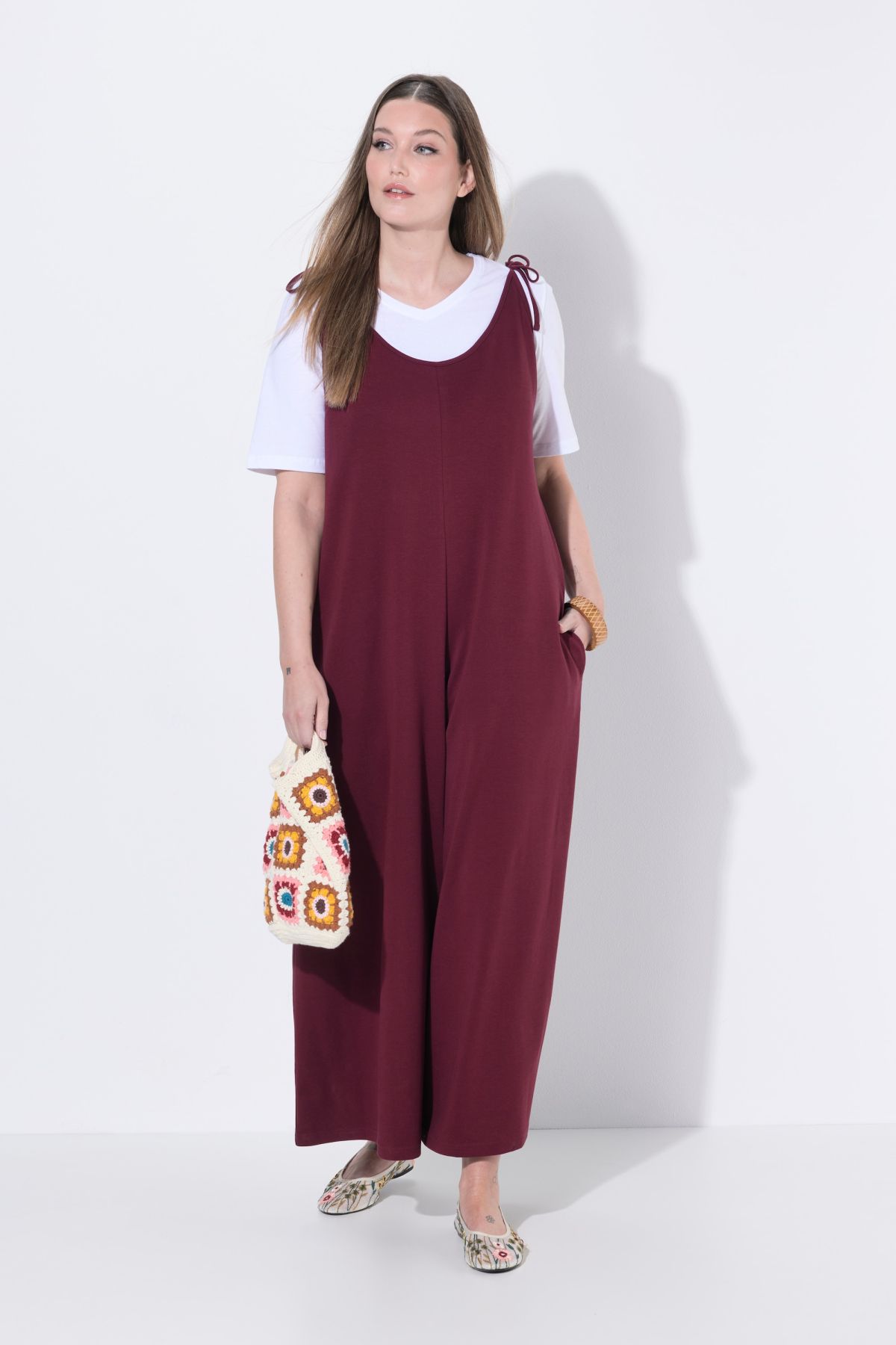 Памучен гащеризон с комфортни широки крачоли и тънки презрамки. Със странични джобове придаващи комфорт.