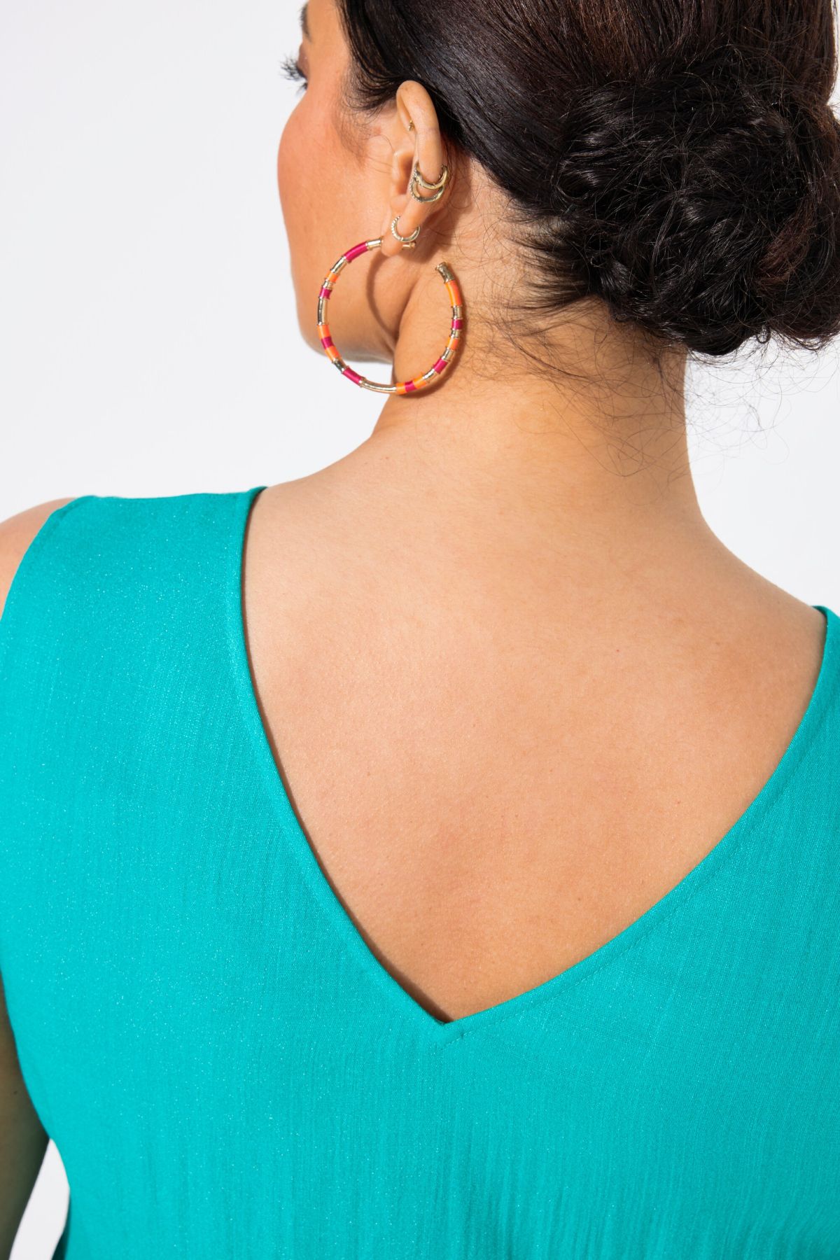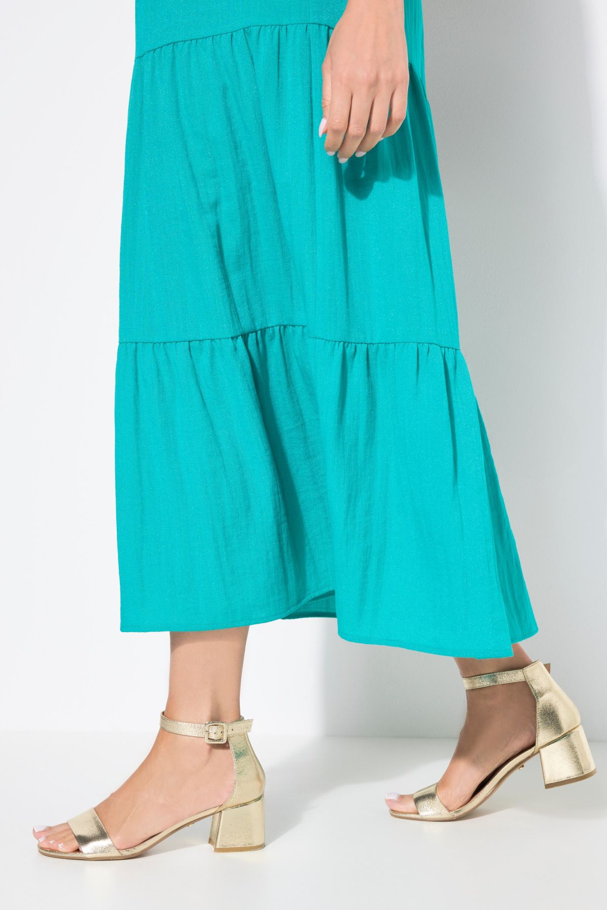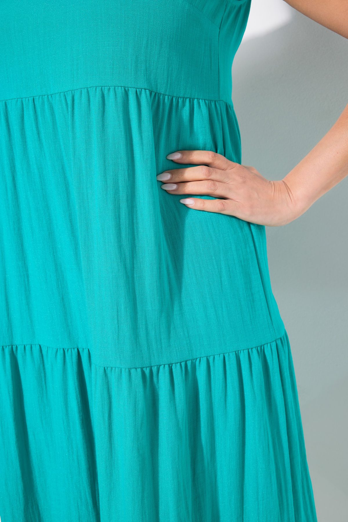 Рокля с разкроени акценти на полата. С V - образно деколте, широки, комфортни презрамки и перфектна дължина. Мека и комфортна за лятото.