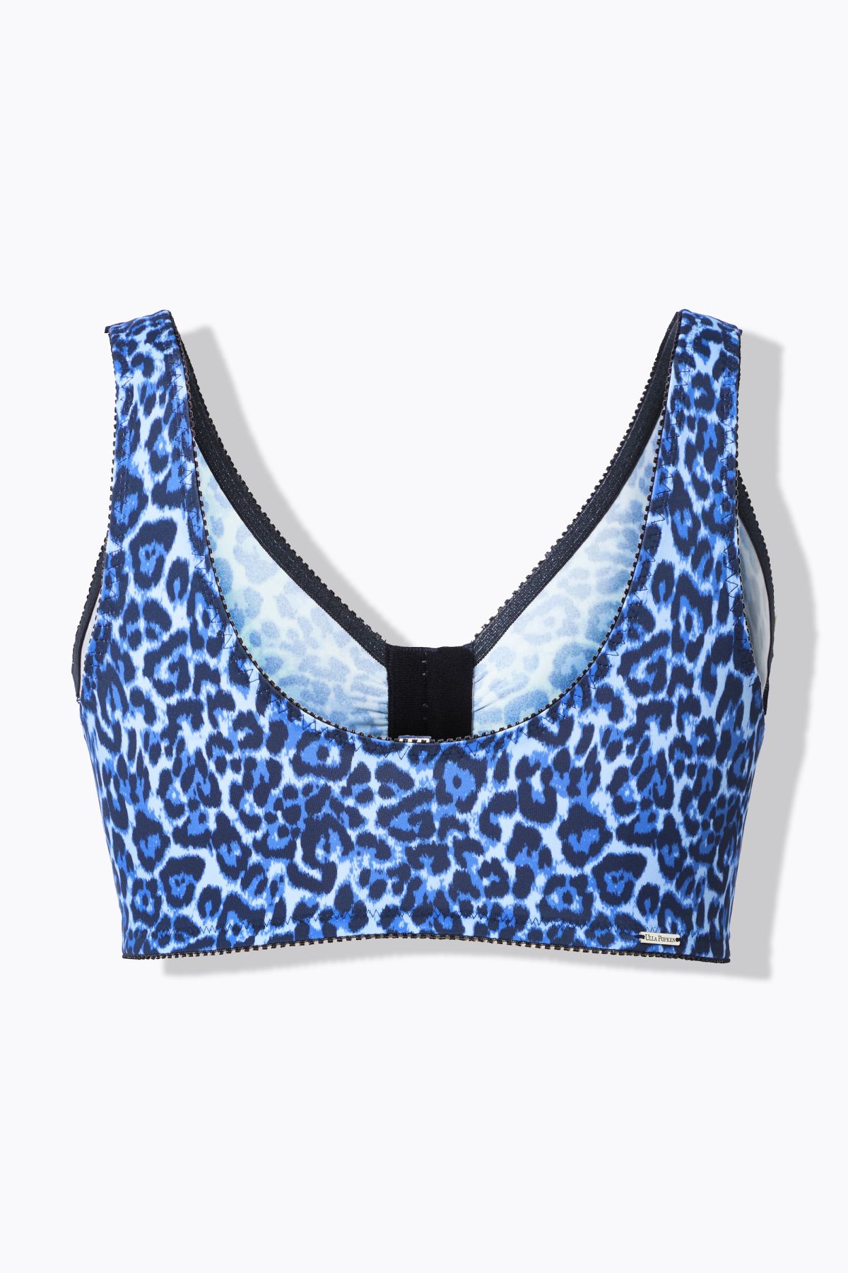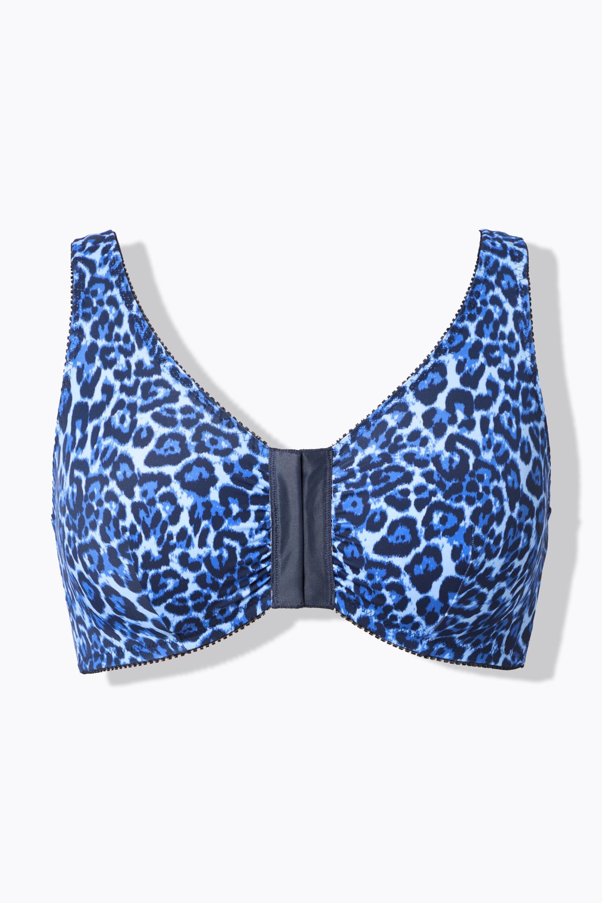 Сутиен с предно закопчаване с леопардов принт. От лека, еластична материя с минимален брой шевове. Без оформени чашки. Комфорт, усещащ се като втора кожа.