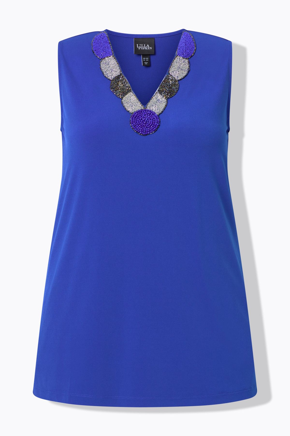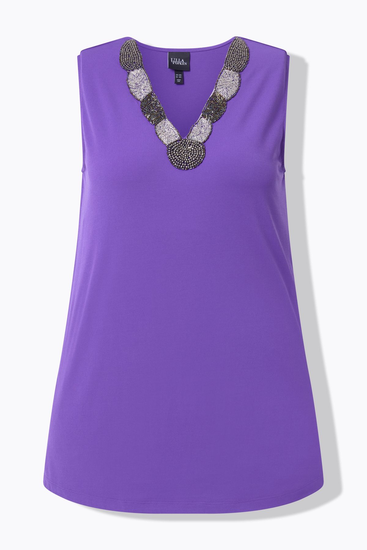 Потник широки, комфортни презрамки. С V - образно деколте с мъниста. С комфортен свободен силует.