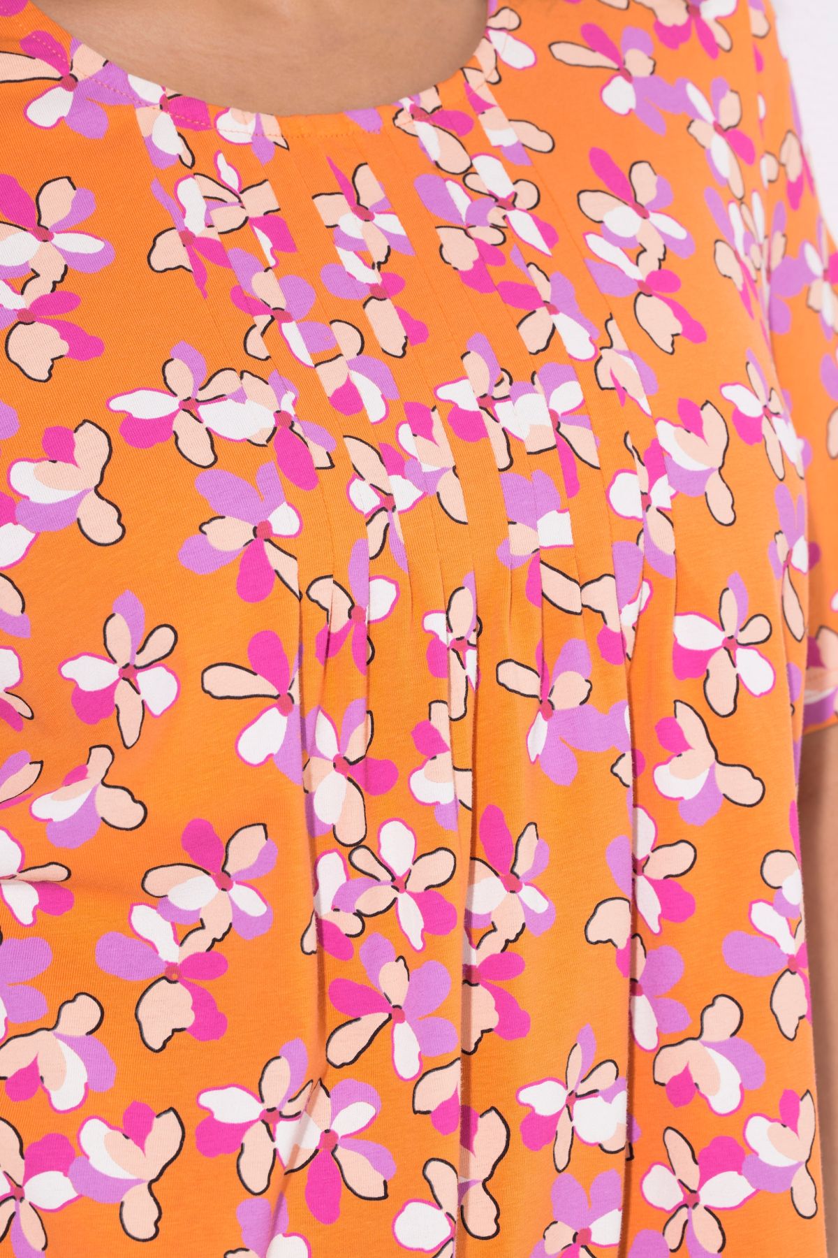 Туника със ситен флорален принт. С кръгло деколте, плисе на бюста и къси ръкави. С А - линия на силуета и странични цепки на подгъва. ОТ мека, памучна материя.