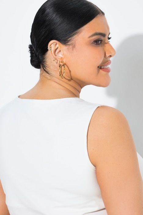 Блуза с яка STHUGE с копчета на деколтето. От мека, рипсена материя с къси ръкави. С овърсайз кройка.