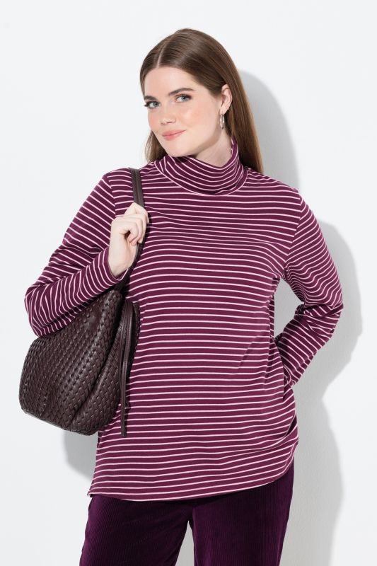 Eco Cotton Stripe Rib Knit Slim Fit Turtleneck