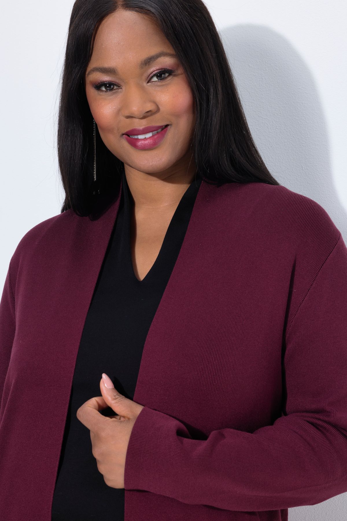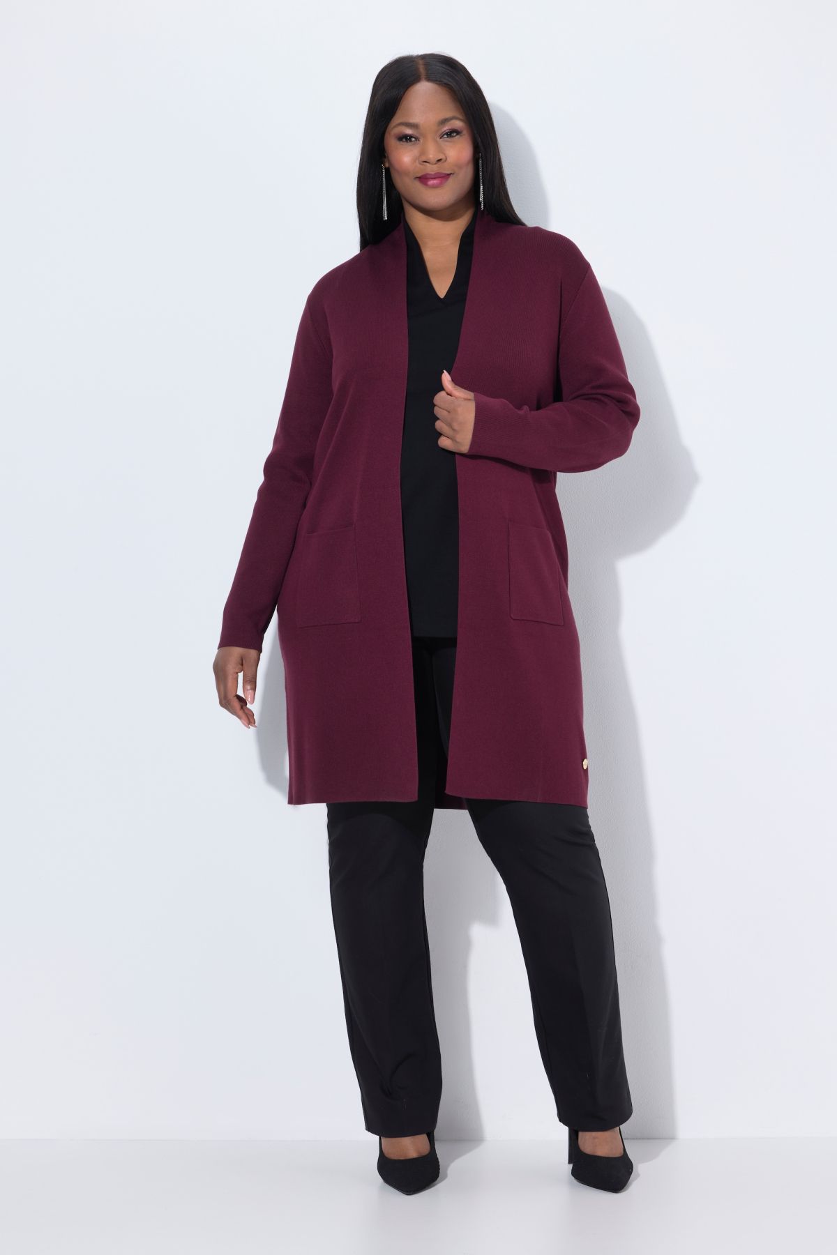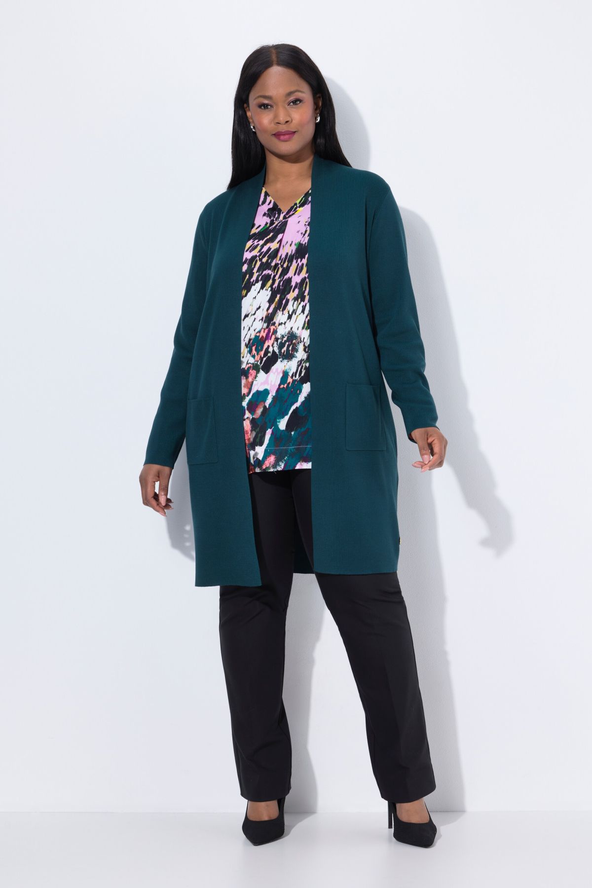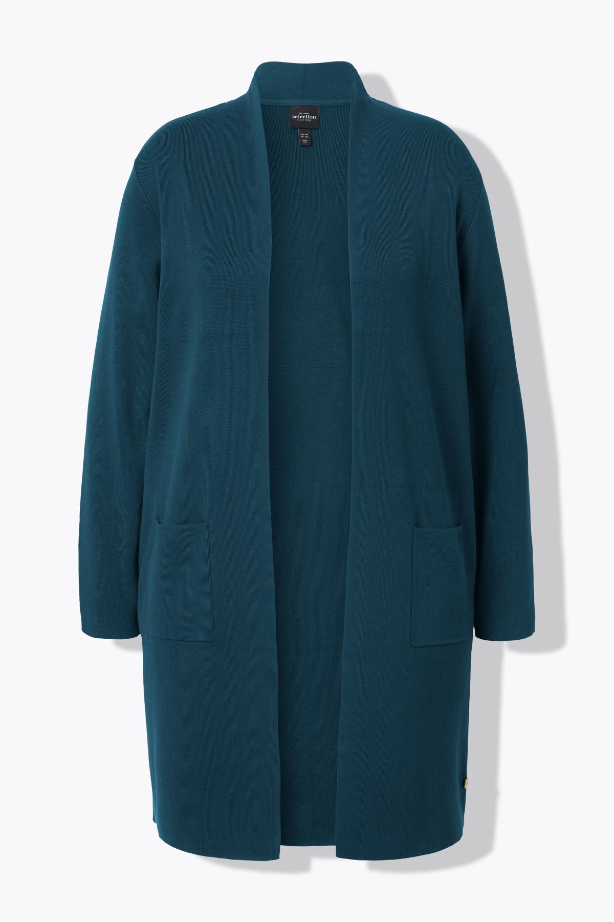 Long Pocket Cardigan Sweater - open front style made of soft flowing fine yarn with 2 pockets and long sleeves.