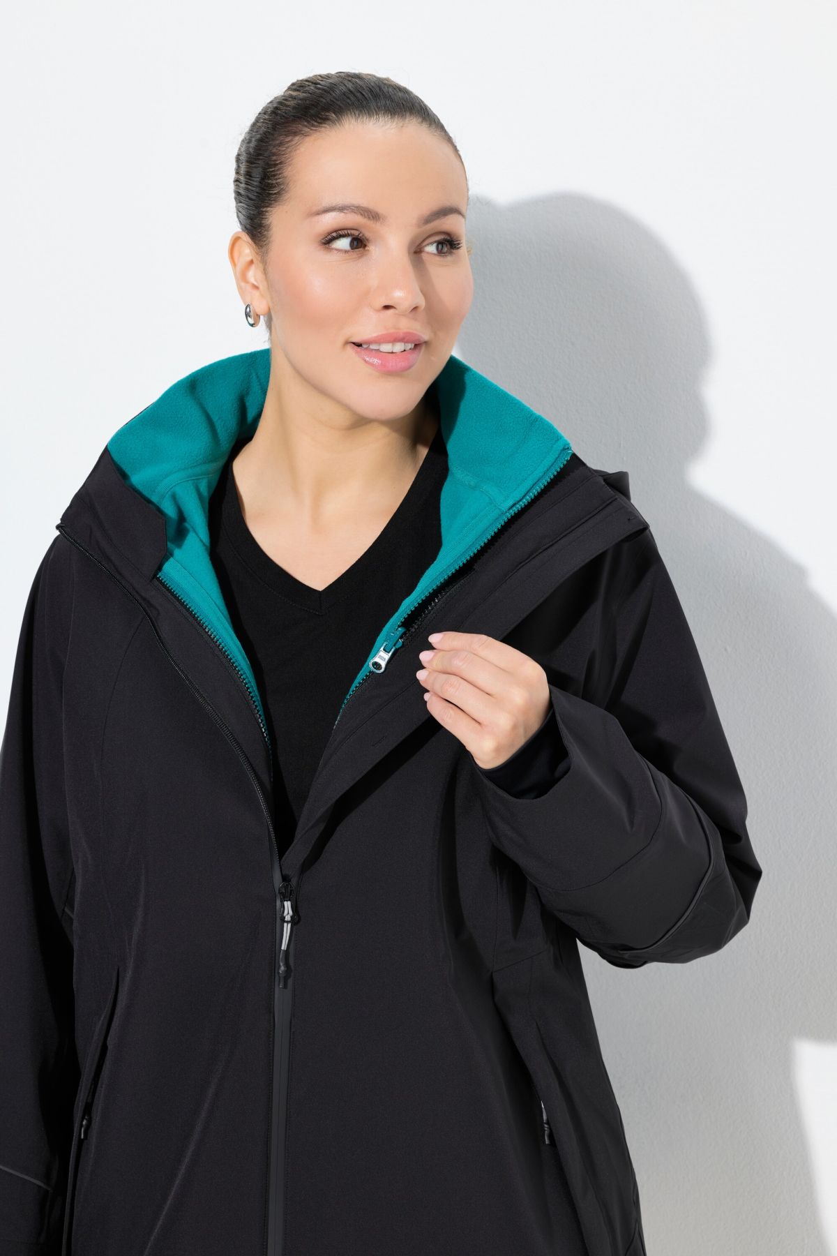 Modular Fleece Jacket# cozy fleece style to wear by itself or zip into one of our modular styles. Stand-up collar, front zipper, 2 pockets, front and back princess seams, and long sleeves with small loop to attach to shell jacket.