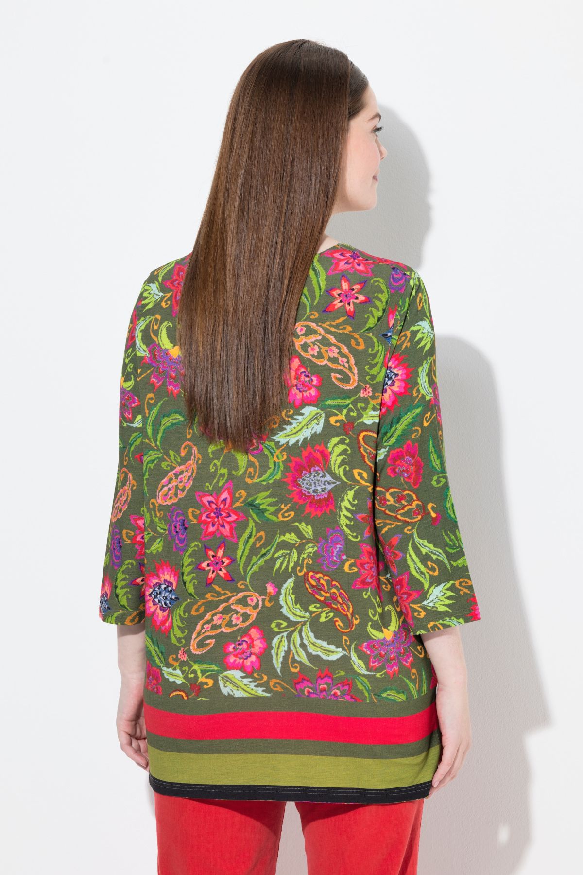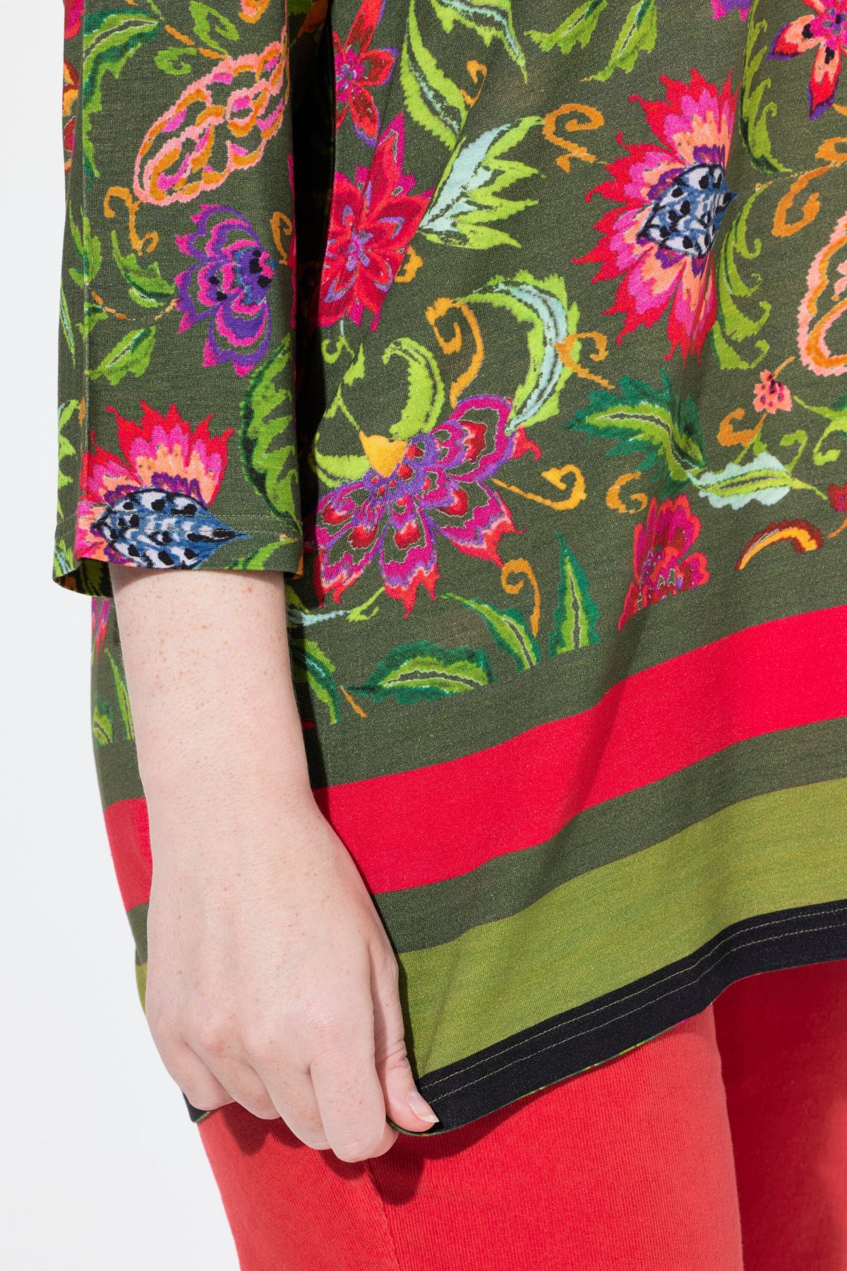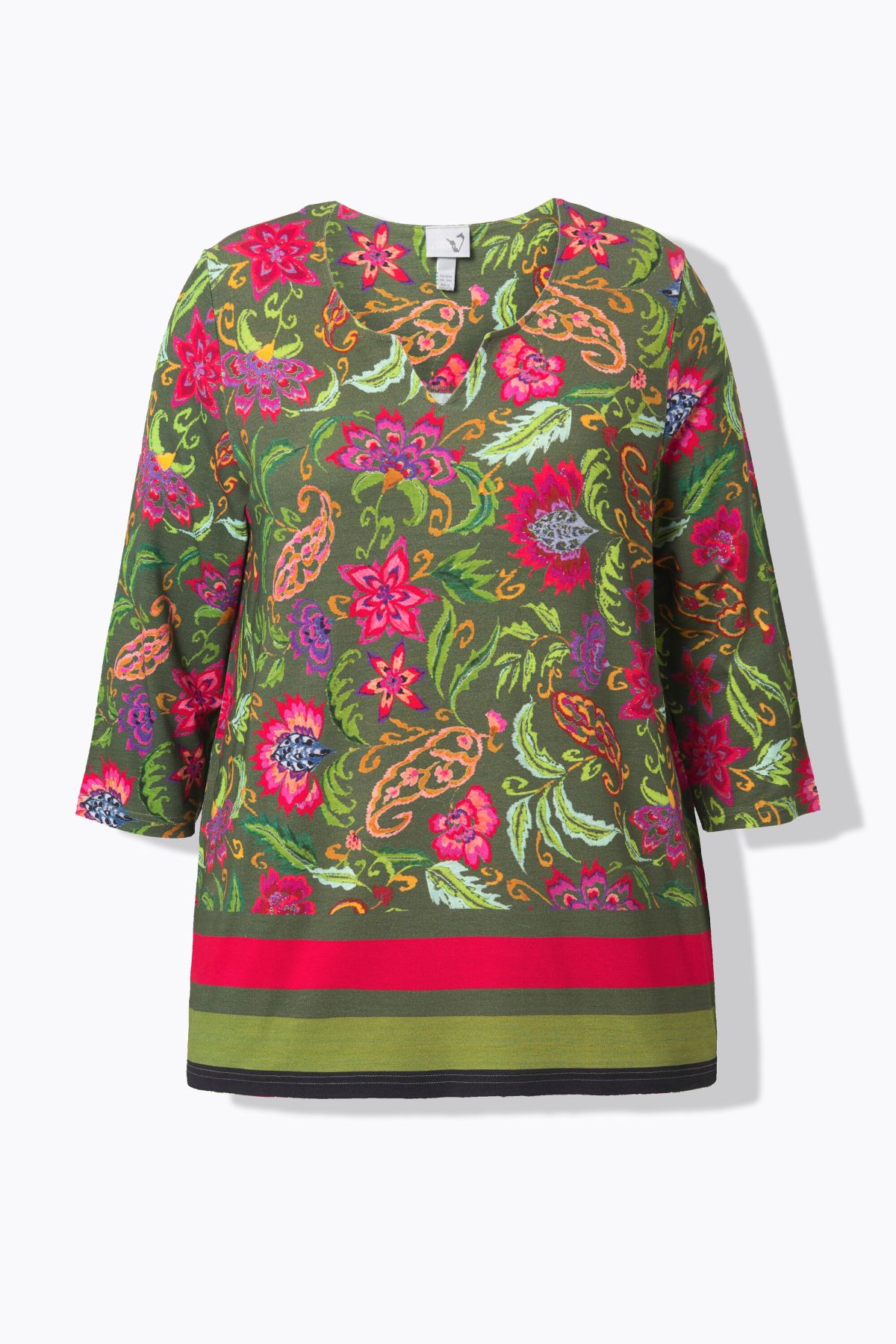 Country Floral Split Neck Tee - A country-style botanical print adds feminine flair to this flattering a-line silhouette.